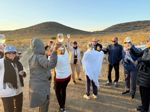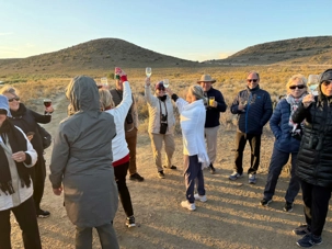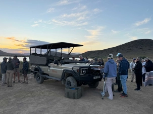 Trois jeeps, trois guides passionnés, et déjà le frisson de l’aventure. Le vent est frais ; nous nous enveloppons dans nos couvertures pendant les trajets, un peu fébriles, le cœur battant.