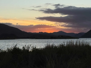 Nous nous arrêtons pour admirer le coucher de soleil : la savane s’embrase d’or et de pourpre, et le silence s’installe. Un moment suspendu, simplement parfait.