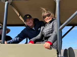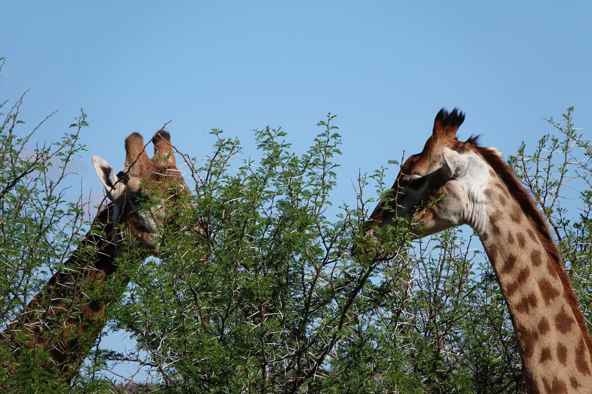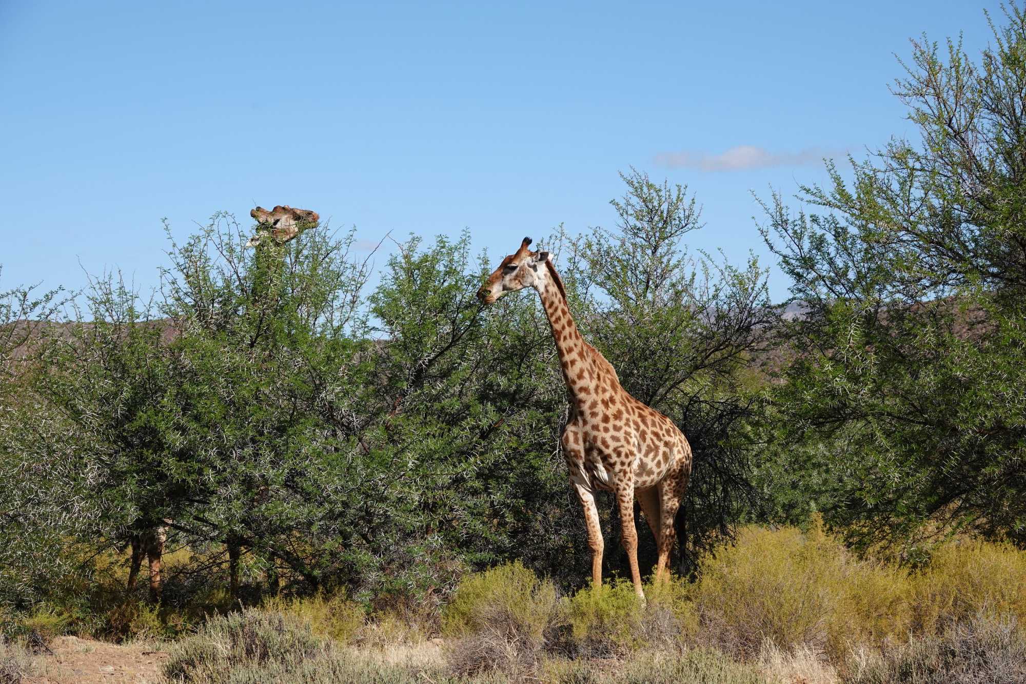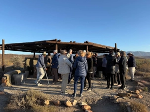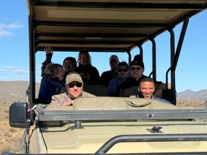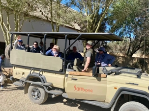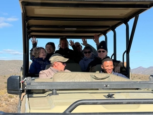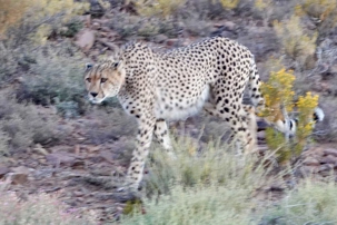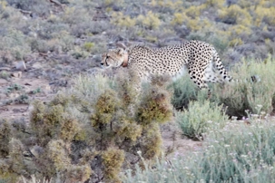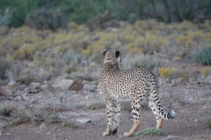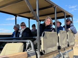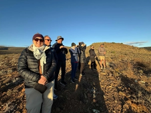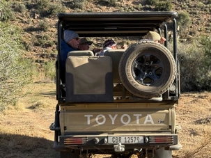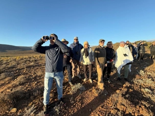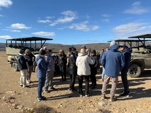 Dès les premières lueurs du jour, nous avons croisé quelques springboks et de petites gazelles qui broutaient paisiblement. Puis, notre guide a repéré au loin la présence de guépards — un moment d’une rare intensité. Ces félins majestueux vivent ici depuis plus de vingt ans et sont bien habitués à la présence humaine. Nous avons donc eu la chance extraordinaire de partir à pied, en petit groupe, à leur rencontre. Le premier groupe a pu s’en approcher de près, tandis que le second les a observés alors qu’ils se dirigeaient tranquillement vers un point d’eau pour boire. Même à distance, l’émotion était palpable : marcher sur les traces des guépards et apercevoir leurs petits fut une expérience exceptionnelle. 🐾
