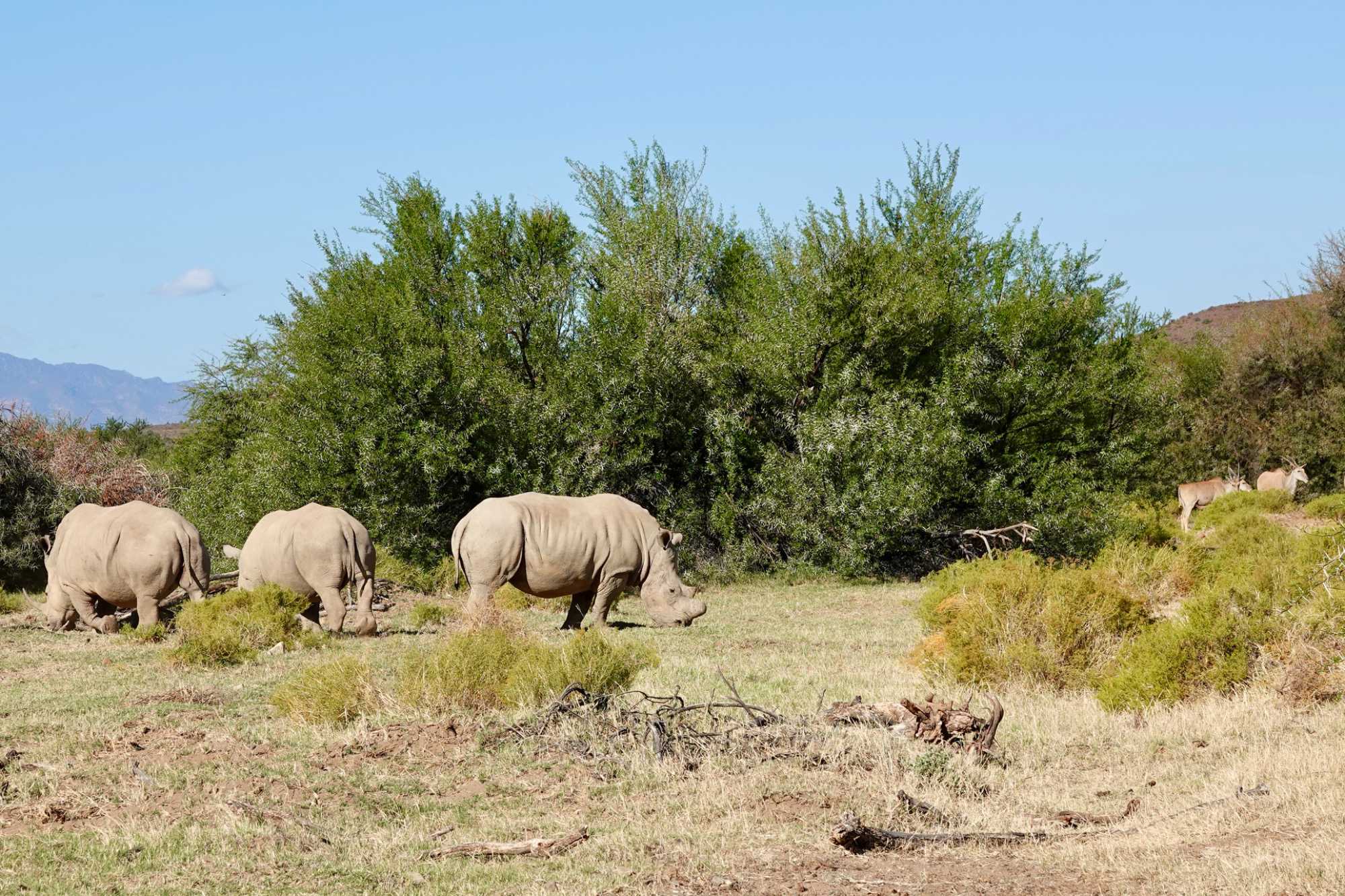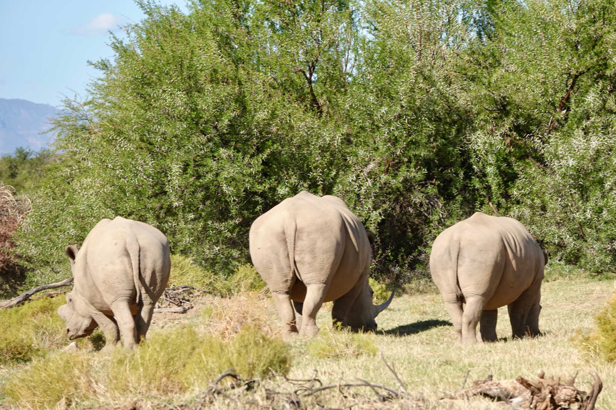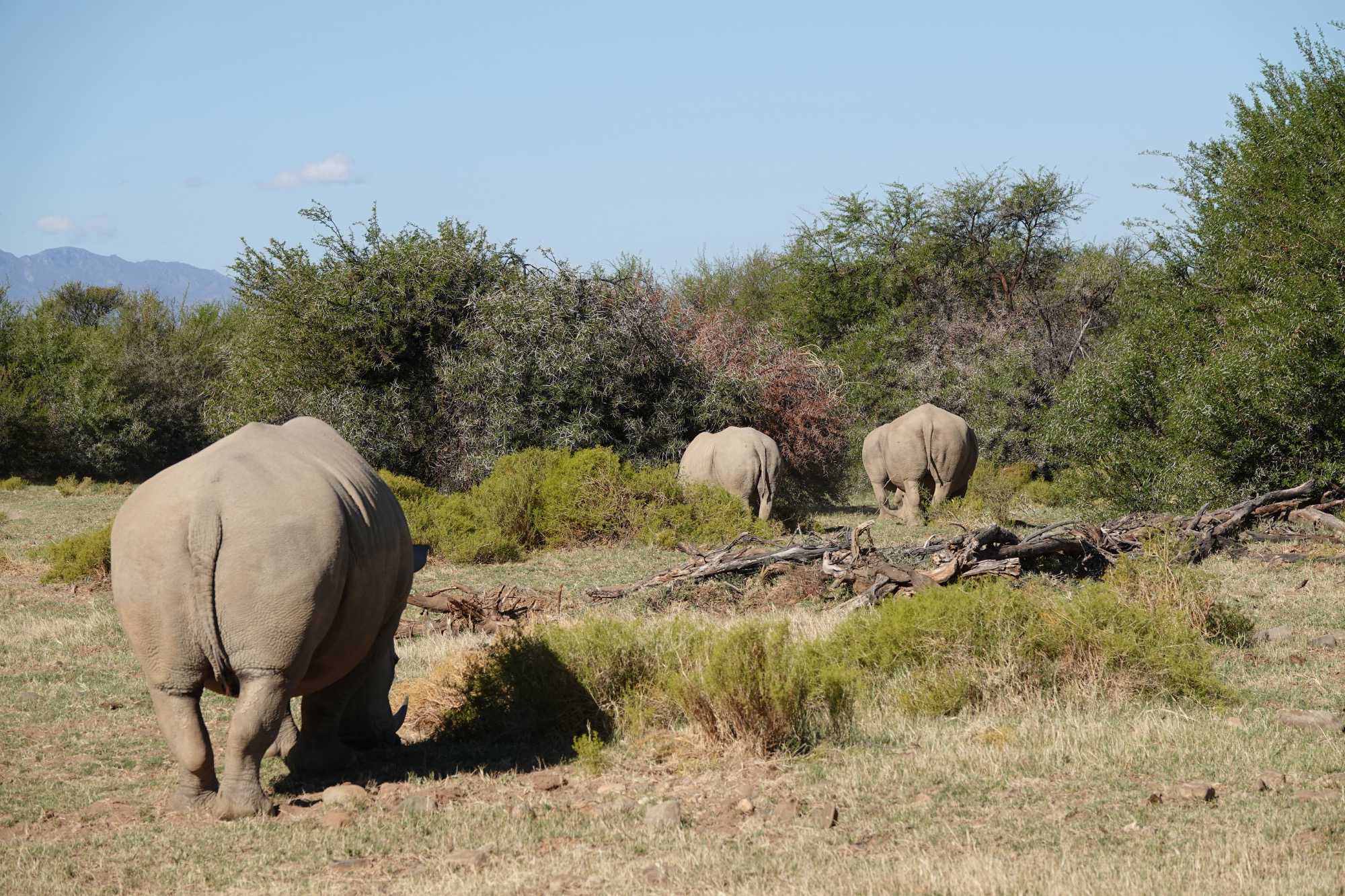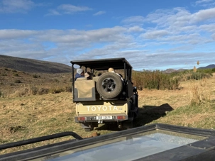 Une pause-café en pleine brousse a ponctué cette belle matinée avant de reprendre la route à travers différents paysages de la réserve. La suite de la journée fut tout aussi riche : nous avons retrouvé nos rhinocéros blancs, regroupés en famille, puis aperçu des tortues, des familles de babouins, des girafes, des gnous et même un petit animal sauteur dont le nom reste à confirmer. Sur le chemin du retour, un guépard s’est offert une dernière apparition, cette fois tout près de la route — une belle occasion pour de superbes photos ! 📸