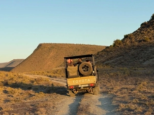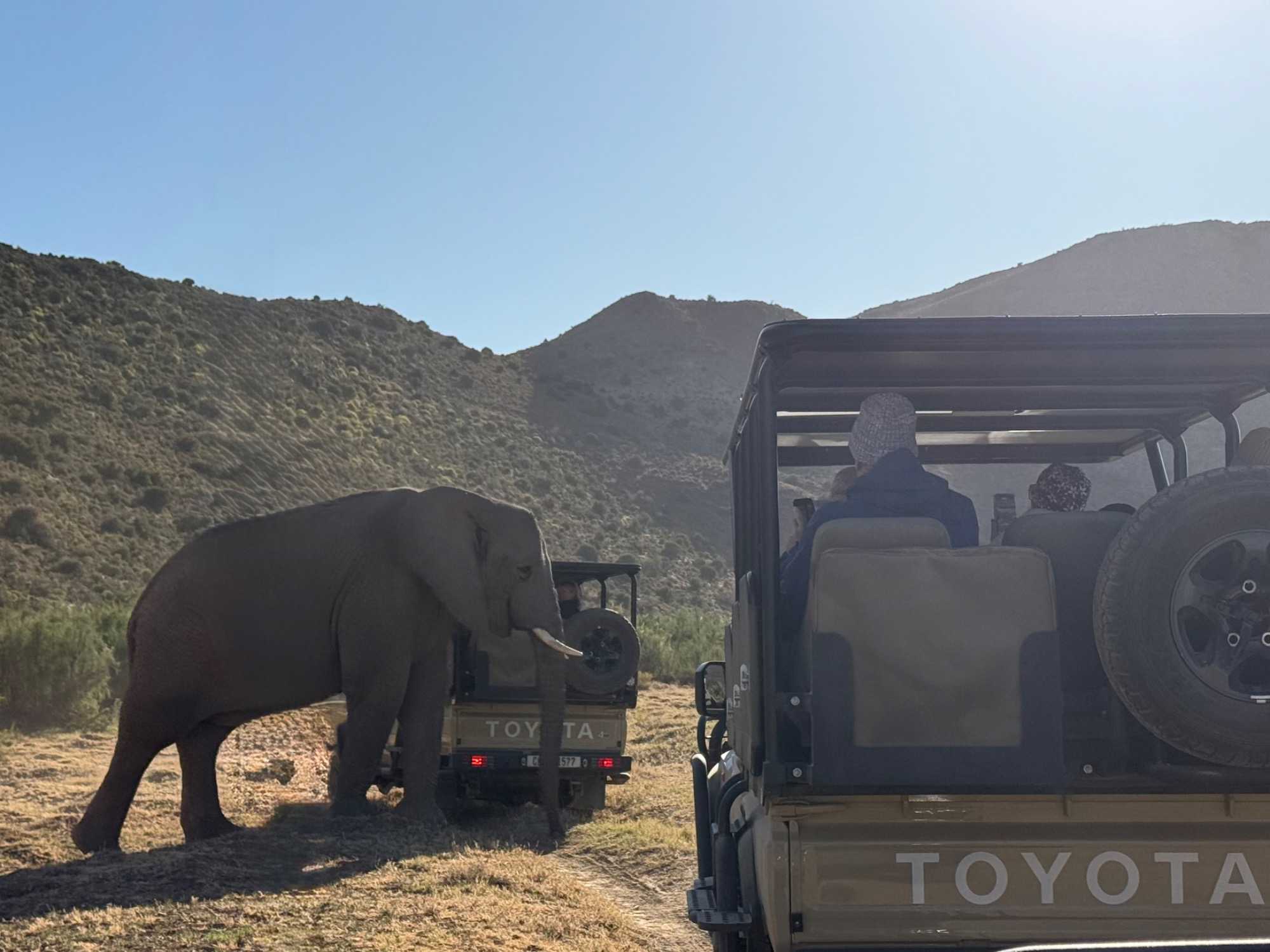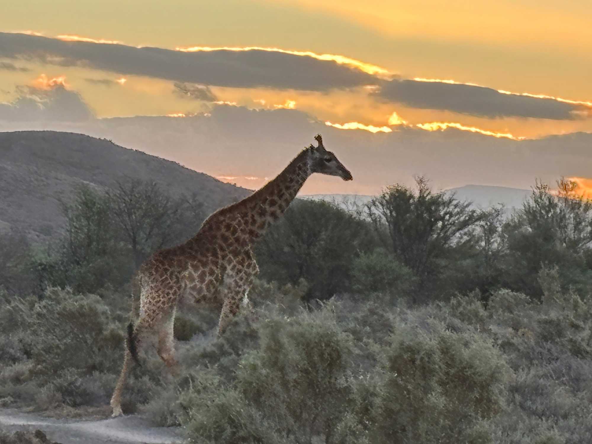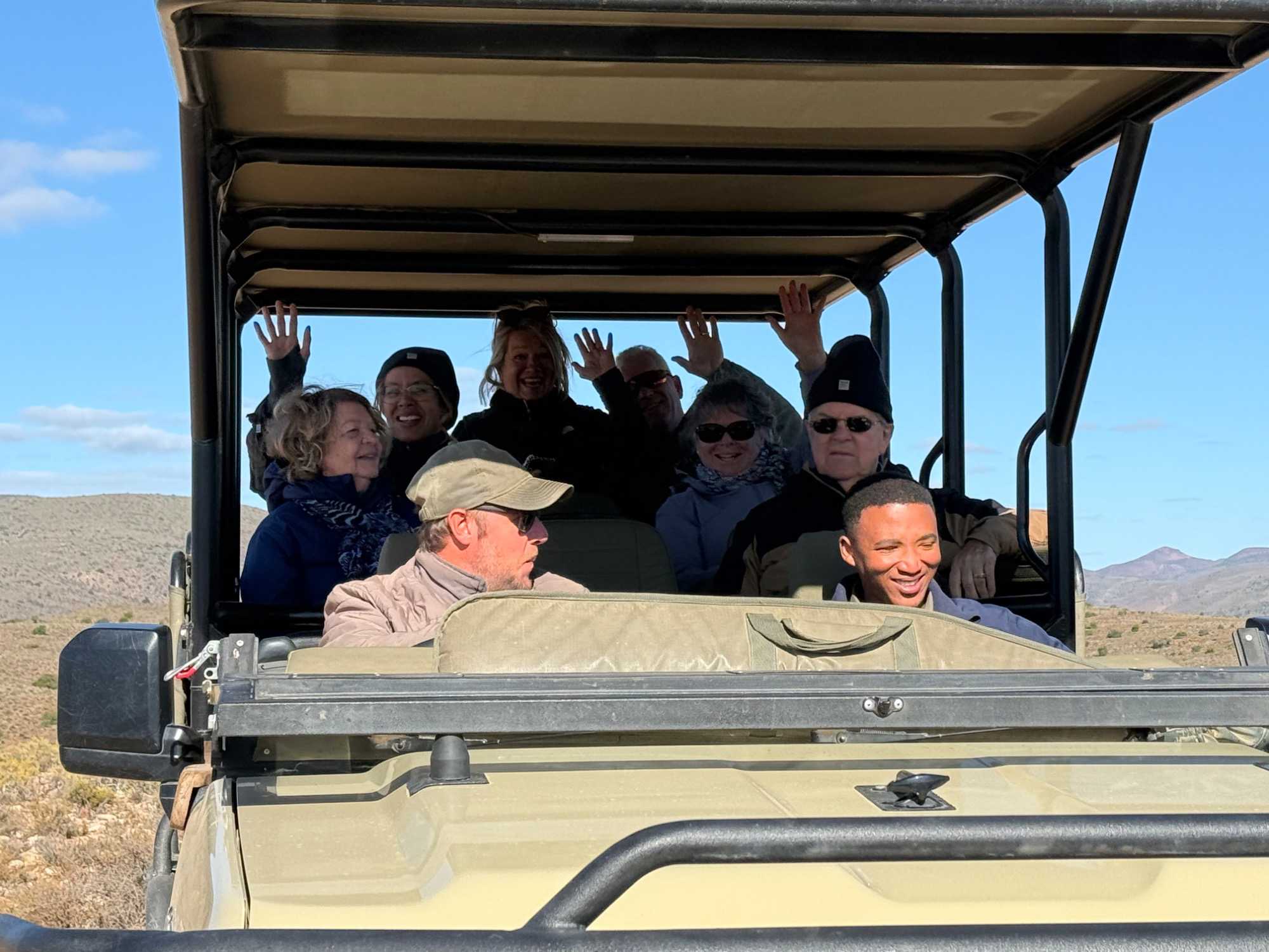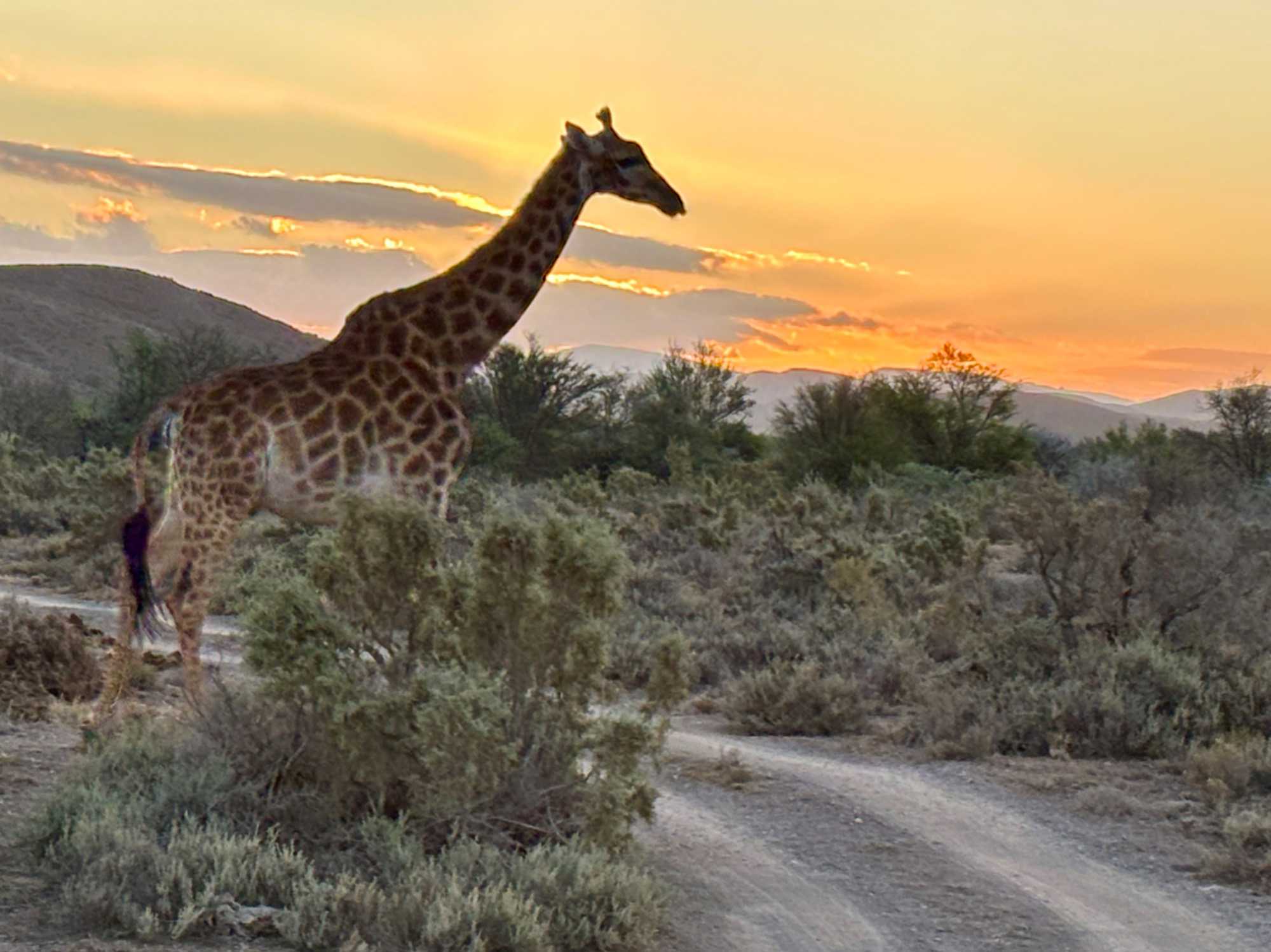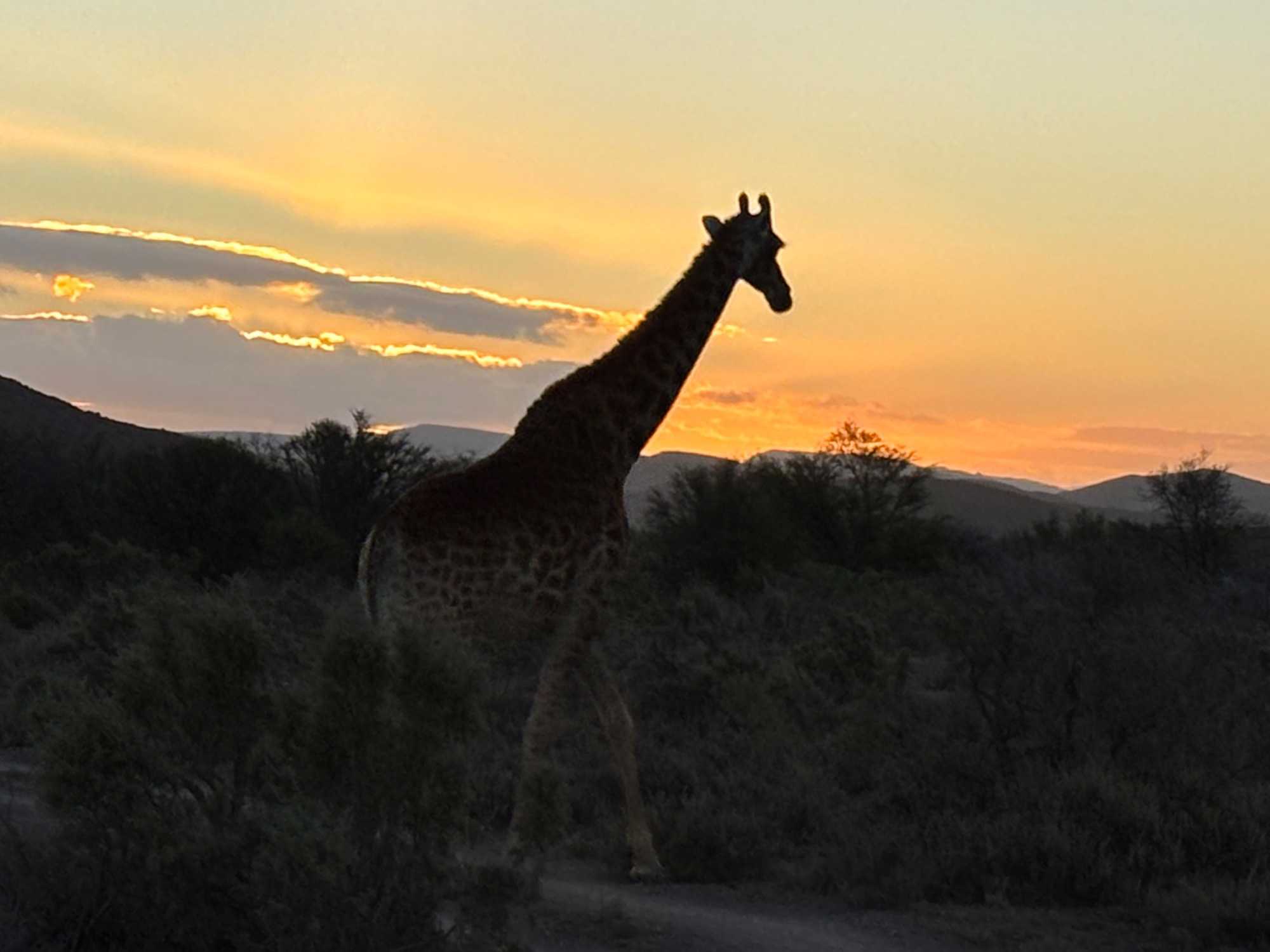 Très heureux de repartir à nouveau pour notre deuxième safari dans la splendide nature de la réserve de Sanbona, nous avons vécu une matinée tout aussi magique que la précédente. Le réveil fut matinal, sous une température fraîche mais déjà plus douce que la veille au soir. Bien emmitouflés, nous avons pris la route avant le lever du soleil pour vivre à nouveau ce moment privilégié où la nature s’éveille. 🌅
