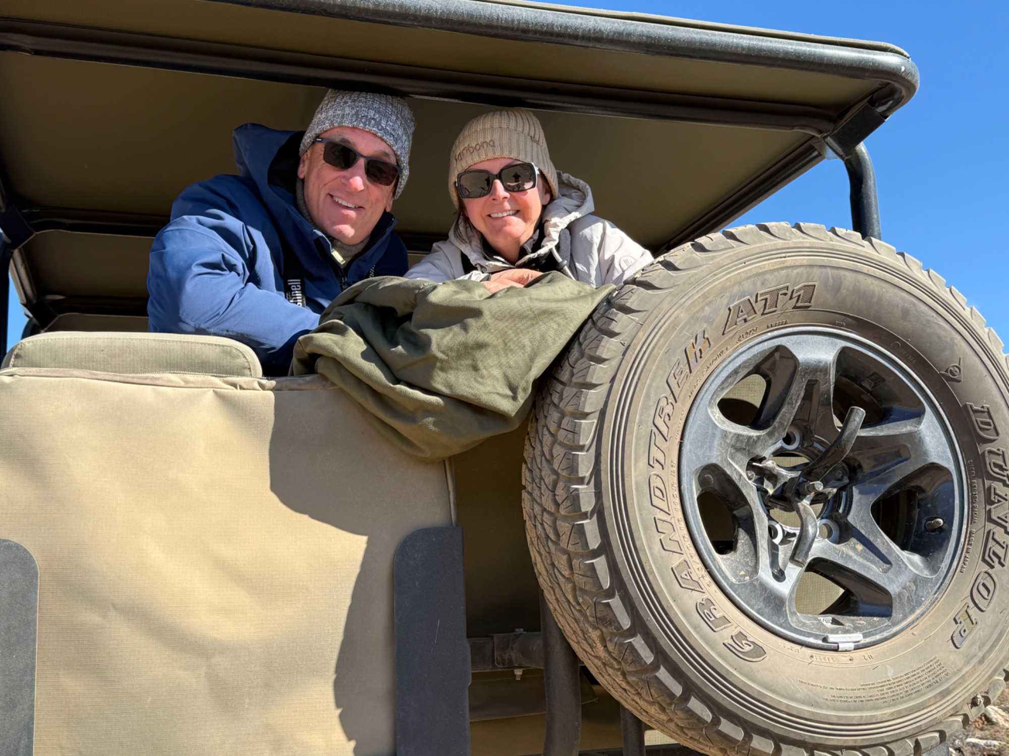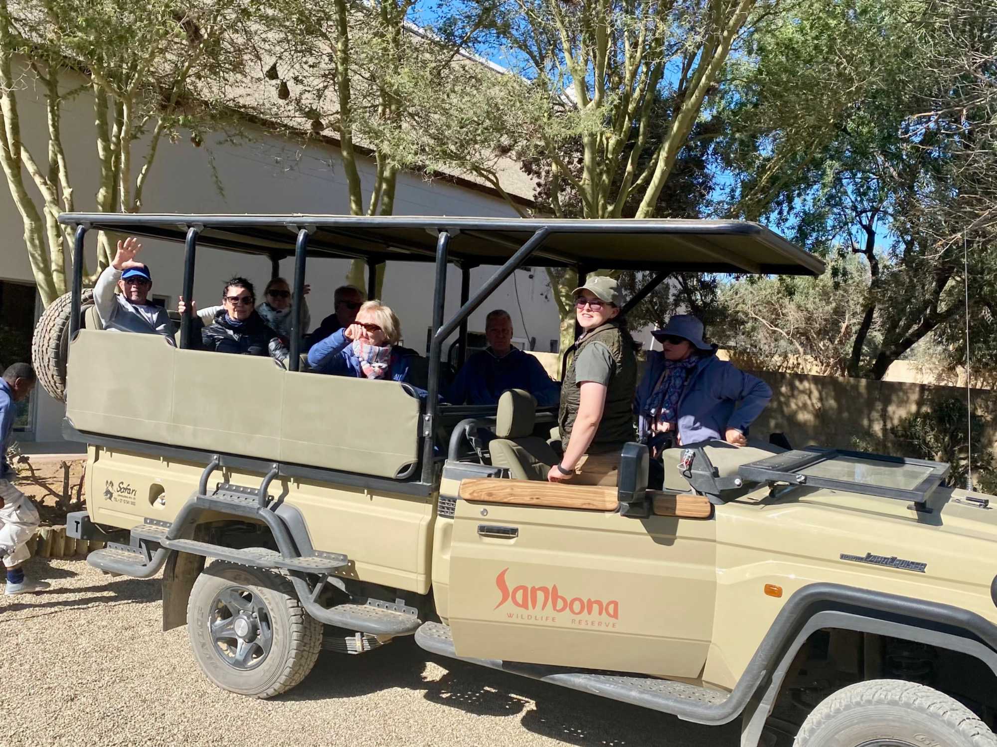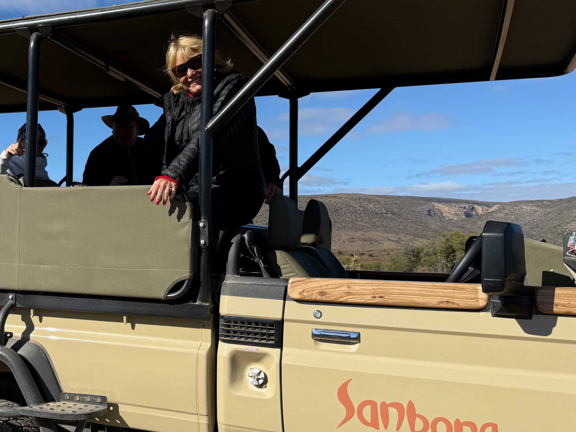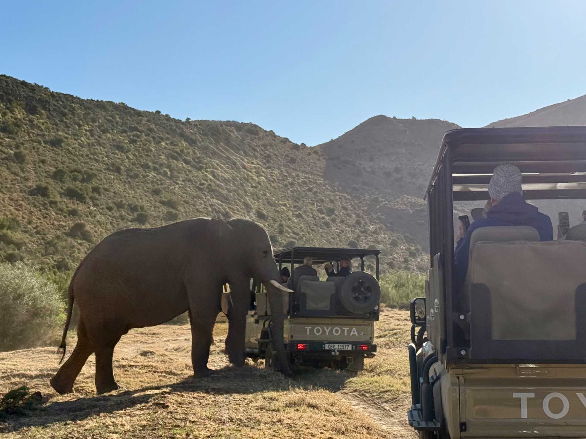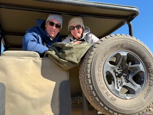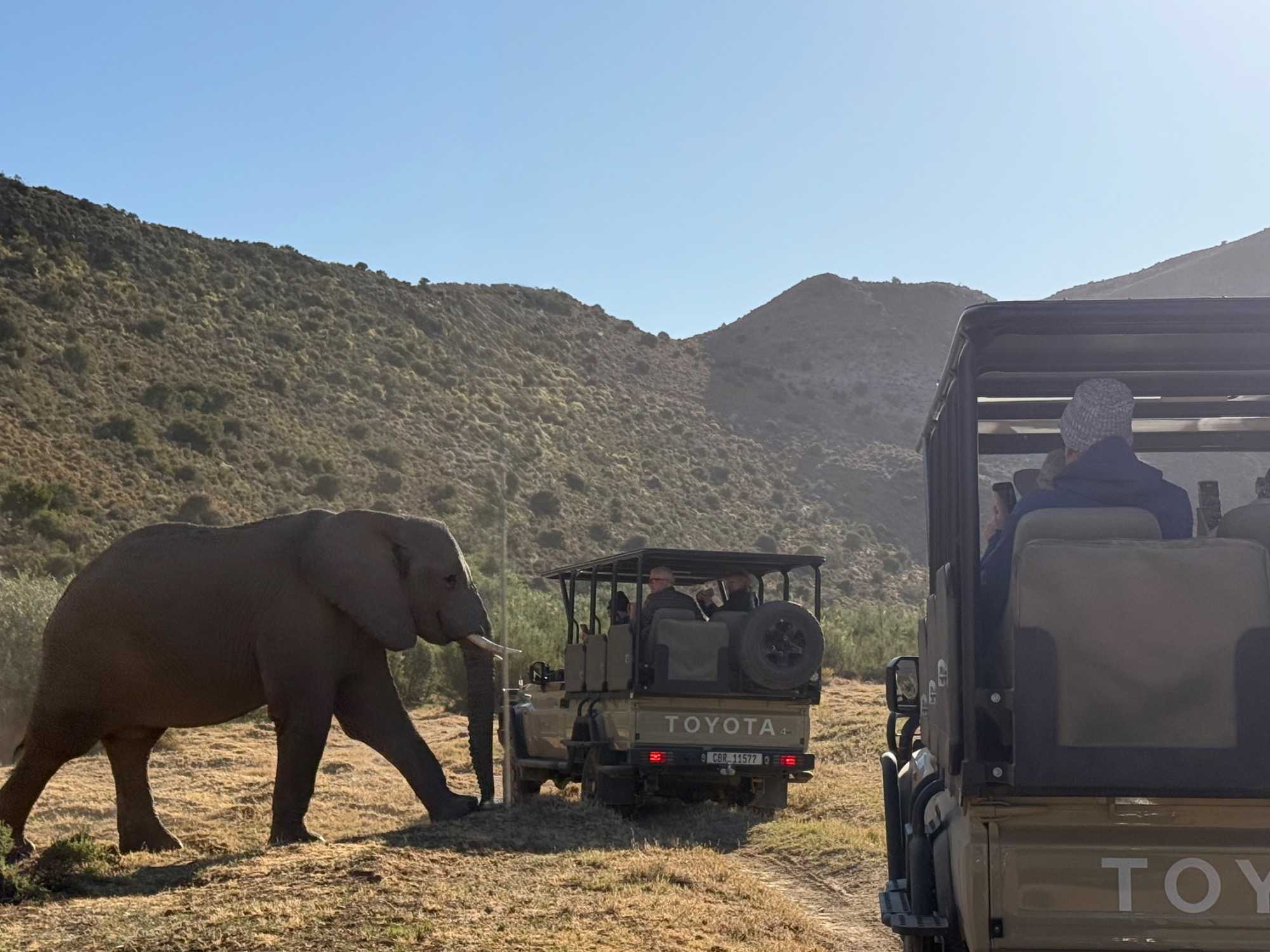 Très heureux de repartir à nouveau pour notre deuxième safari dans la splendide nature de la réserve de Sanbona, nous avons vécu une matinée tout aussi magique que la précédente. Le réveil fut matinal, sous une température fraîche mais déjà plus douce que la veille au soir. Bien emmitouflés, nous avons pris la route avant le lever du soleil pour vivre à nouveau ce moment privilégié où la nature s’éveille. 🌅