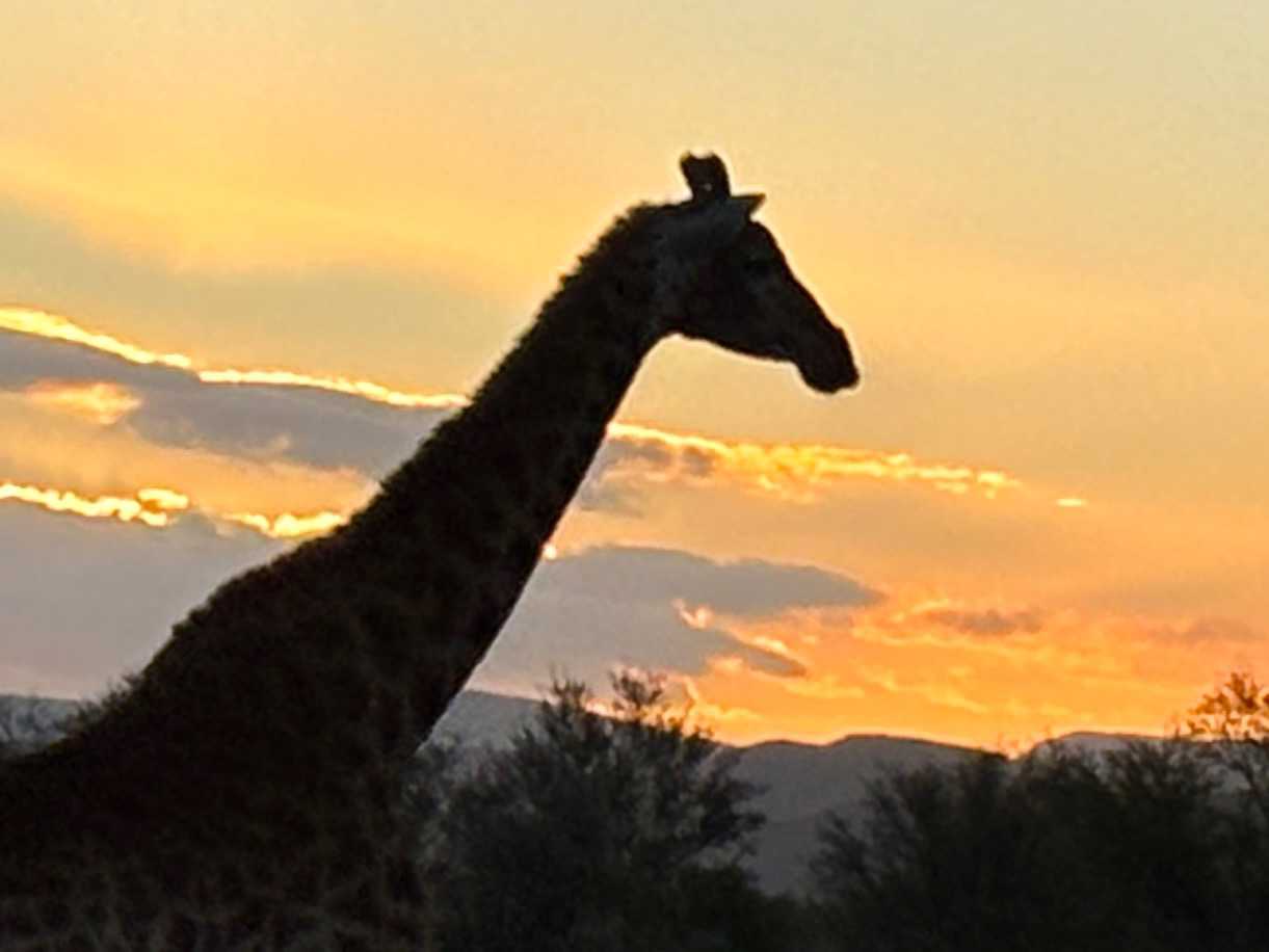En fin d’après-midi, nous sommes repartis pour un dernier safari au coucher du soleil. Là encore, la nature nous a gâtés : de nouvelles girafes, des couleurs magnifiques sur la savane, et un dernier guépard venu clôturer en beauté cette journée déjà bien remplie. 🌇