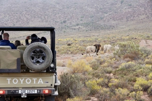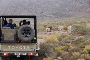 Départ matinal de notre lodge pour un dernier safari avant de quitter la réserve de Sanbona. Ce matin, le temps est un peu gris et humide, une légère bruine tombait, mais notre guide nous rassure aussitôt : « Cette température est souvent parfaite pour observer les animaux. » Et, en effet, quelques touches de bleu dans le ciel laissent présager une belle matinée. 🌤️