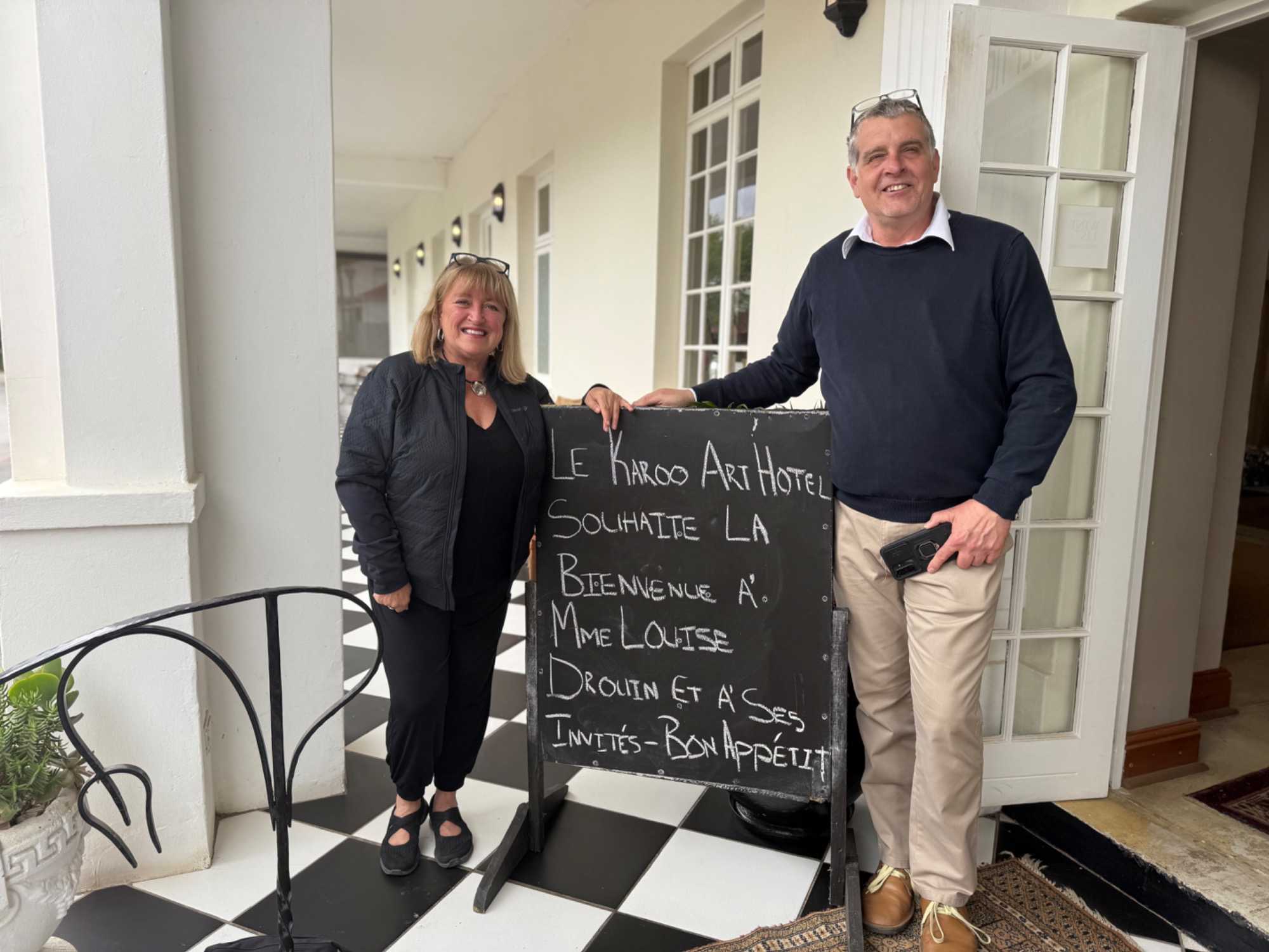 Nous quittons ensuite la réserve pour prendre la route vers Oudtshoorn. Sur le chemin, nous faisons un arrêt à Barrydale, charmant village du Petit Karoo, où nous sommes reçus au Karoo Art Hotel, un endroit plein de caractère et d’authenticité. 🍽️