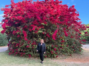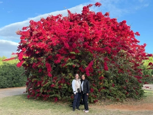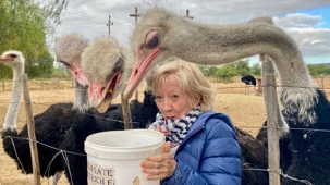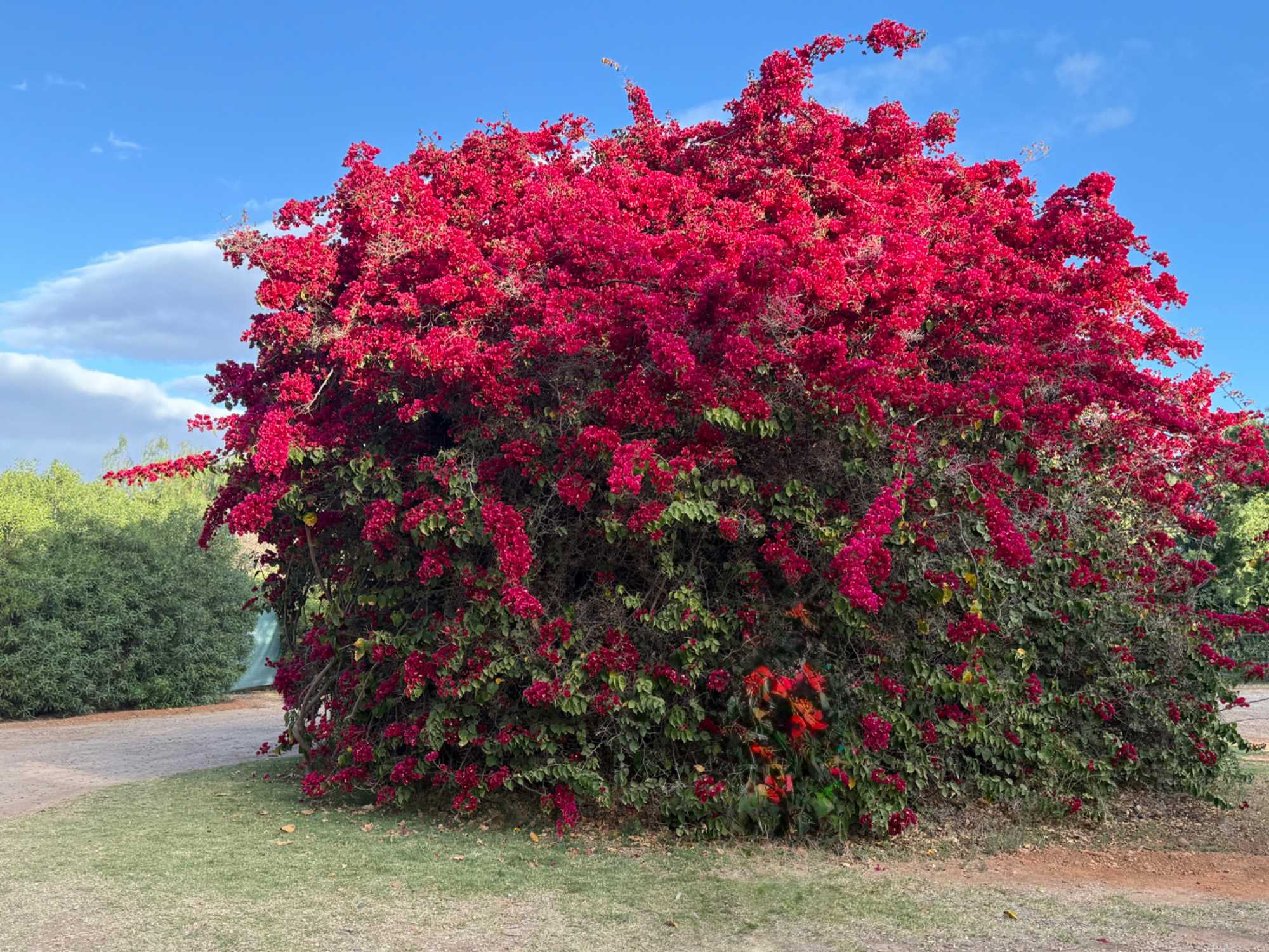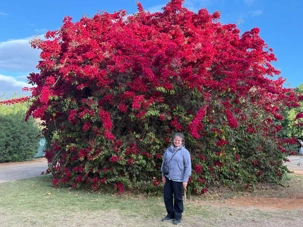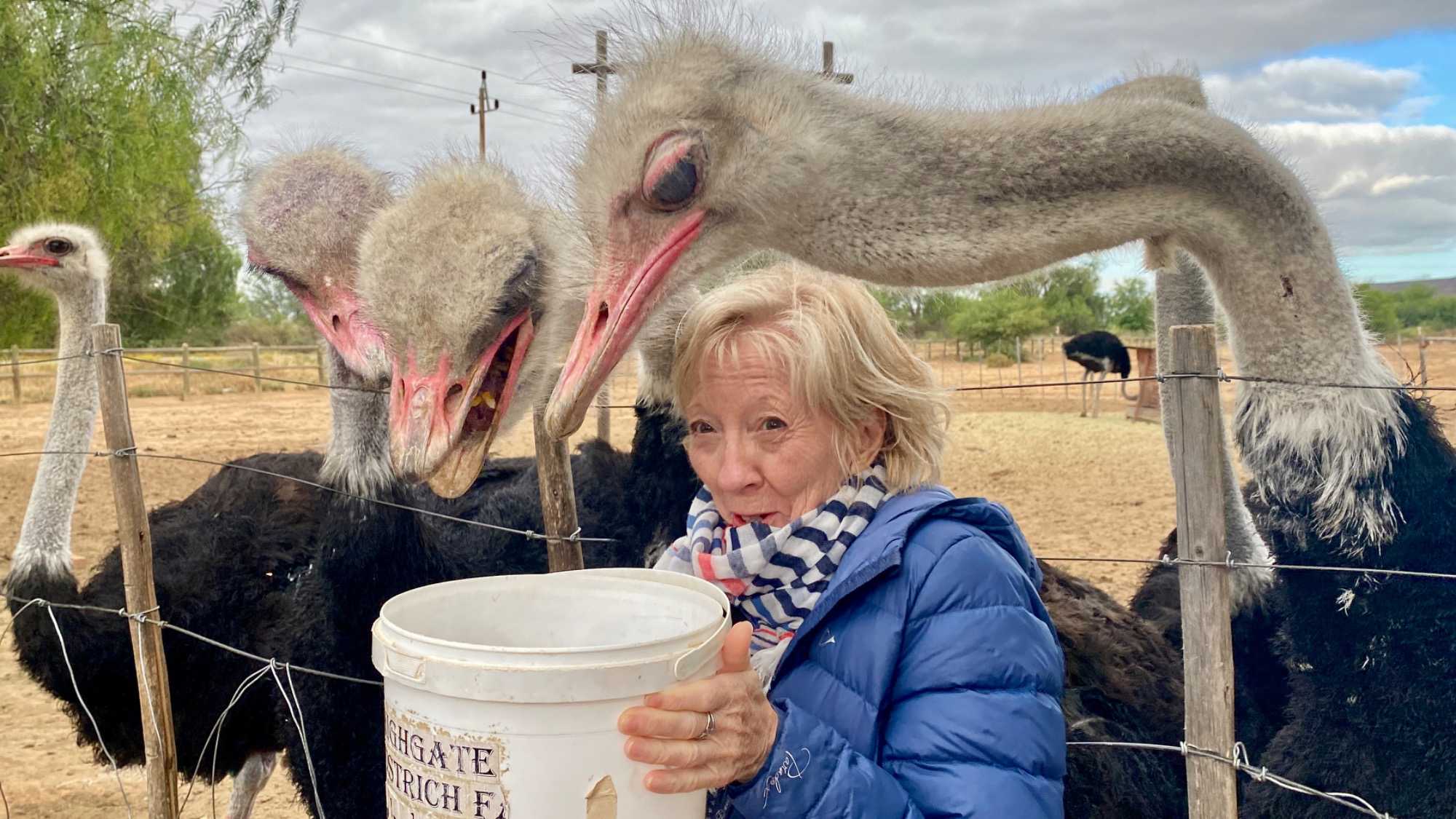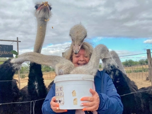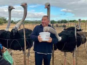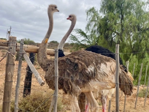 L’après-midi fut consacré à la visite d’une ferme d’élevage d’autruches, emblématique de la région. Nous y découvrons ces oiseaux majestueux, des poussins fragiles et des œufs incroyablement solides sur lesquels on peut même se tenir debout ! 🥚 Ce fut une visite à la fois amusante et fascinante, ponctuée d’explications sur la reproduction, l’incubation et les soins apportés aux jeunes oiseaux. Et comment oublier ce splendide bougainvillier rouge, immense et éclatant, qui ornait l’entrée de la ferme ? 🌺 Un véritable tableau vivant qui nous a tous charmés. Certains voyageurs en ont profité pour faire quelques achats souvenirs — plumes, objets décoratifs, ou articles en cuir d’autruche — avant de reprendre la route.