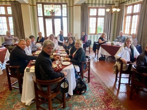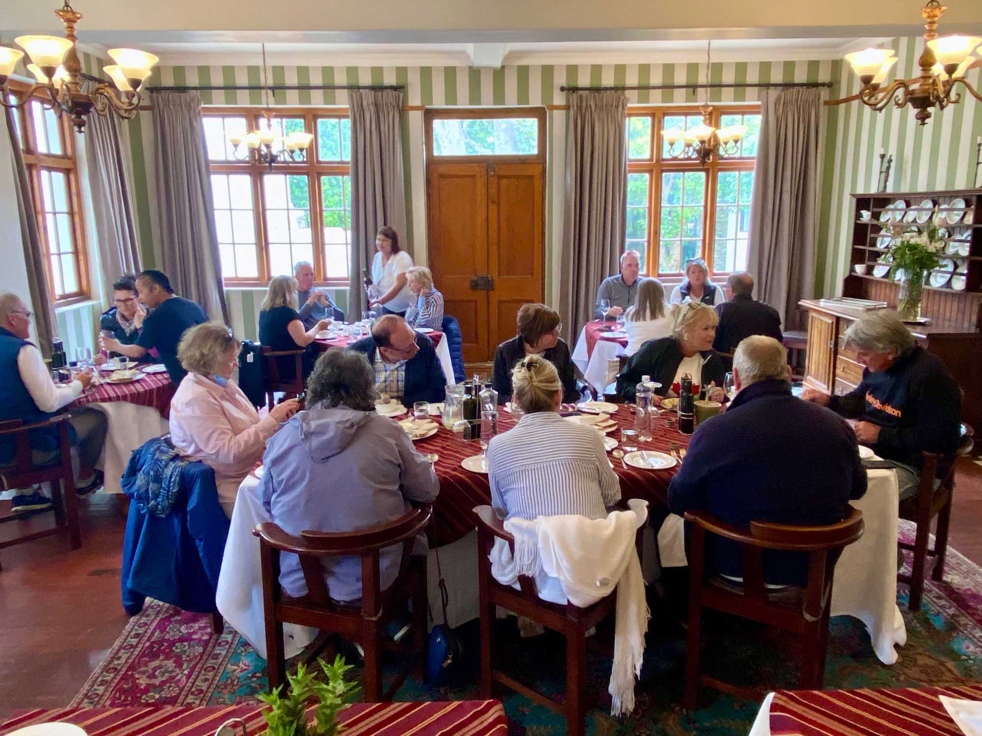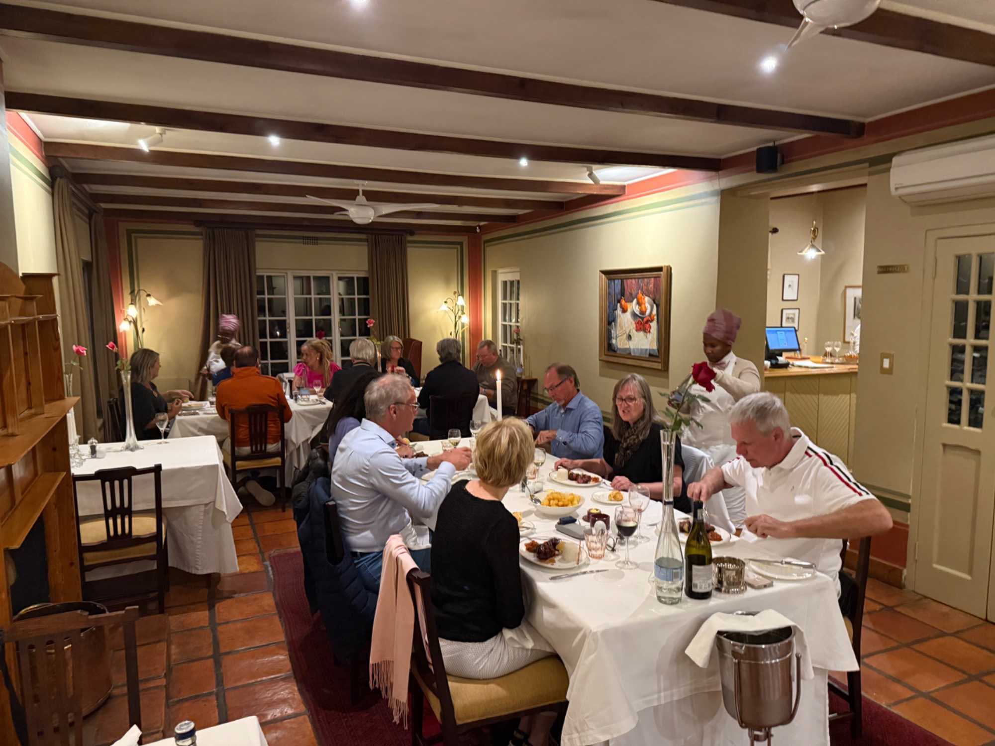 En fin d’après-midi, installation dans notre superbe Rosenhof Boutique Hotel 5★, véritable havre de paix entouré d’une roseraie magnifique. L’accueil y fut exceptionnel, empreint de gentillesse et de bonne humeur. Le personnel, tout sourire, nous a même offert quelques chansons et danses locales, partageant leurs chapeaux traditionnels avec les voyageuses — un moment de pur bonheur et de rires partagés. 🎶💃 Le souper du soir fut délicieux, accompagné d’un excellent vin local et servi dans une ambiance élégante et chaleureuse. Le service, la beauté des lieux et la convivialité de l’équipe ont fait de cette étape une expérience mémorable — une journée remplie de découvertes, d’émotions et de sourires. 🌄✨