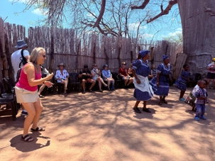 La visite de l’école fut particulièrement touchante. Voir les enfants, si fiers de nous accueillir dans leur salle de classe, fut un moment d’émotion pure 💕. Dans le dernier village, une troupe folklorique nous attendait 🎶 : tambours, chants et danses au rythme du cœur africain. Un jeune garçon de 4 ou 5 ans, prodigieux danseur, nous a impressionnés, tout comme les jeunes filles du village, élégantes et pleines d’énergie. Cette matinée restera gravée comme une rencontre humaine sincère et lumineuse, empreinte de respect et de partage.