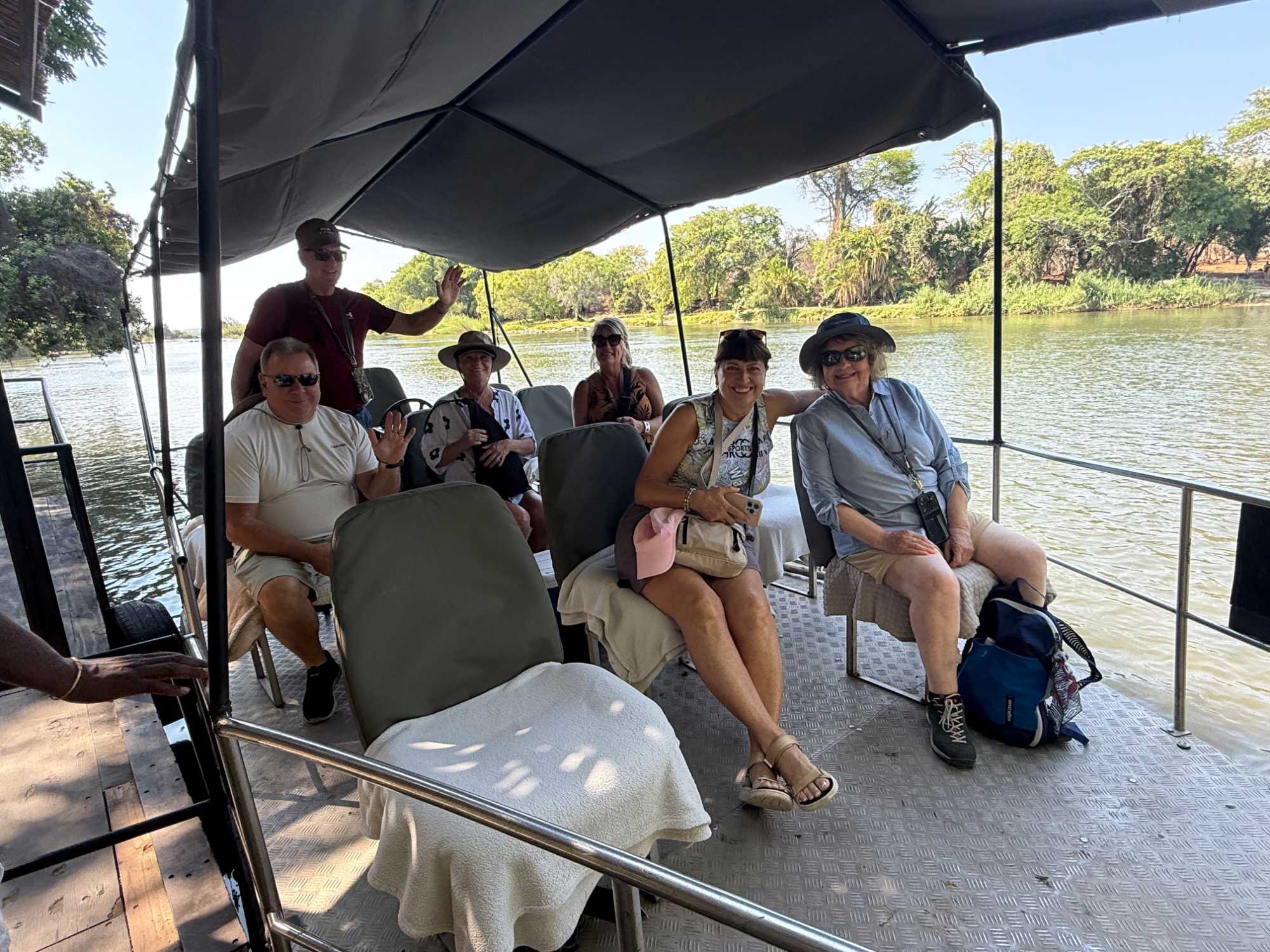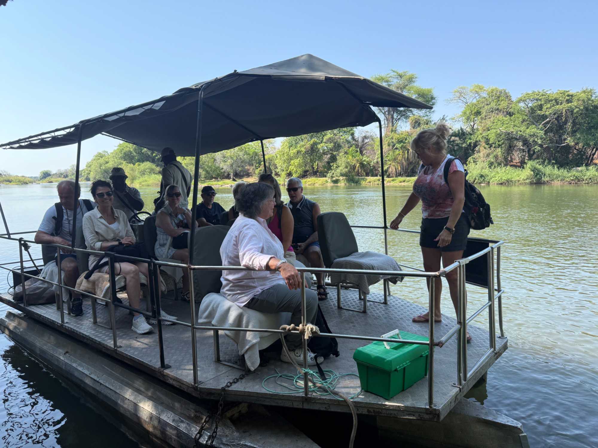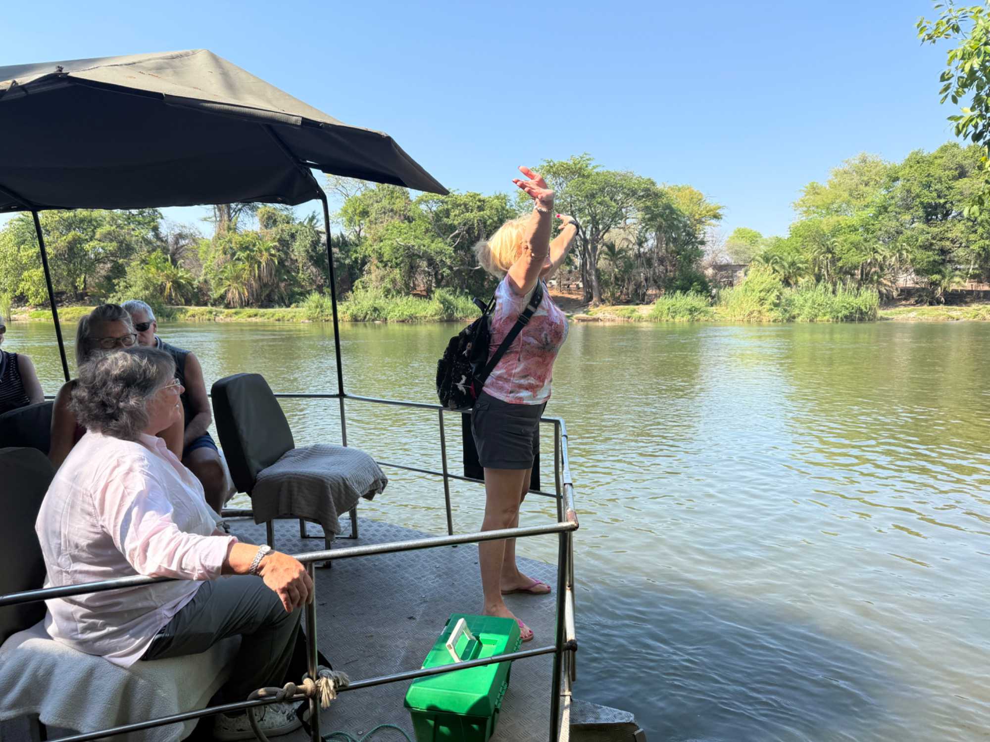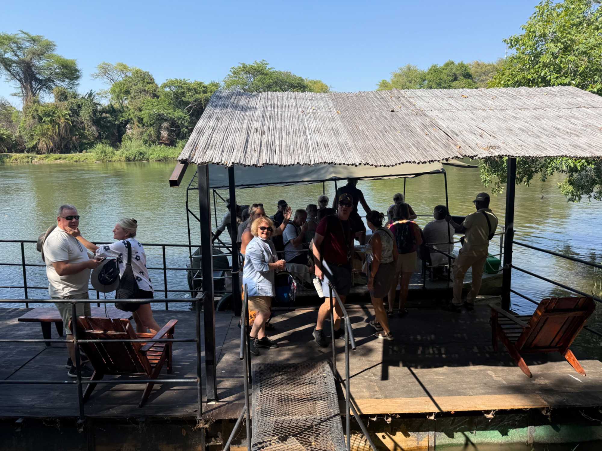 À bord, la magie du fleuve Zambèze a opéré. Nous avons croisé quelques hippopotames 🦛 paisiblement installés près des berges, parfaits modèles pour nos photographes passionnés 📸. En glissant sur l’eau, nous avons longé de petits villages de pêcheurs nomades, témoins silencieux de la vie sur le fleuve.
