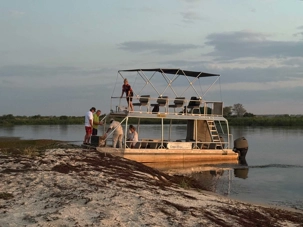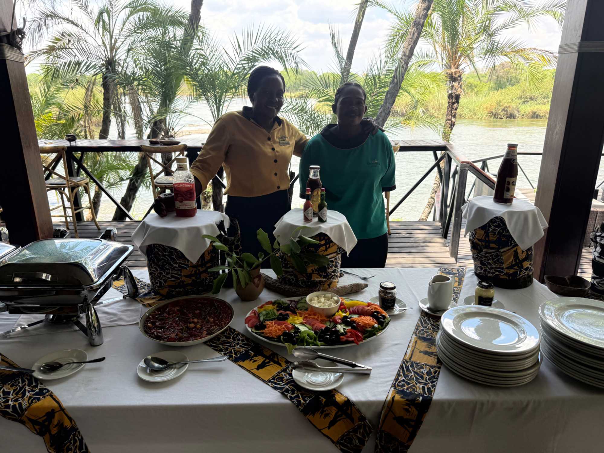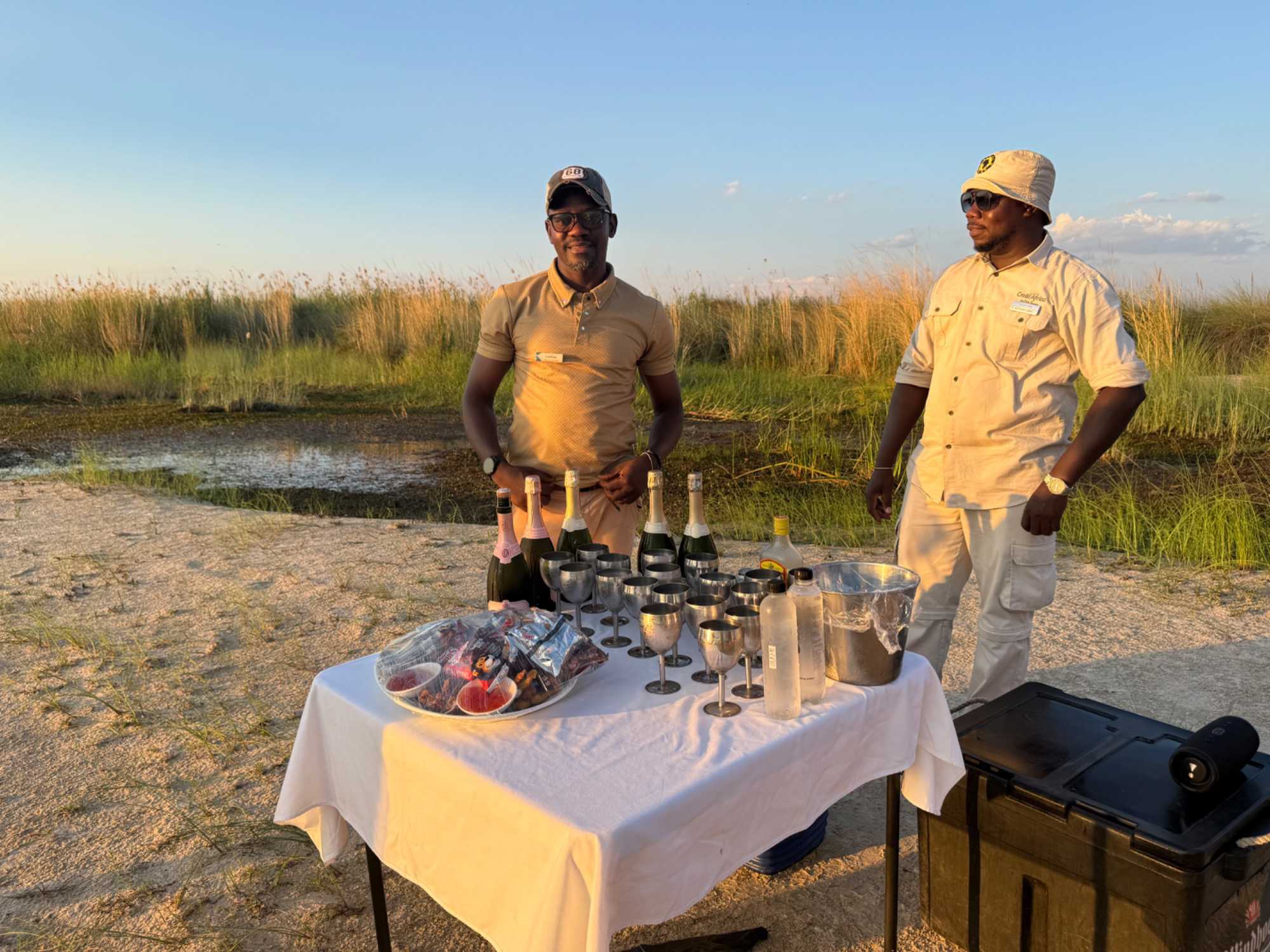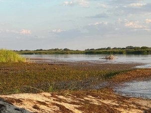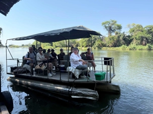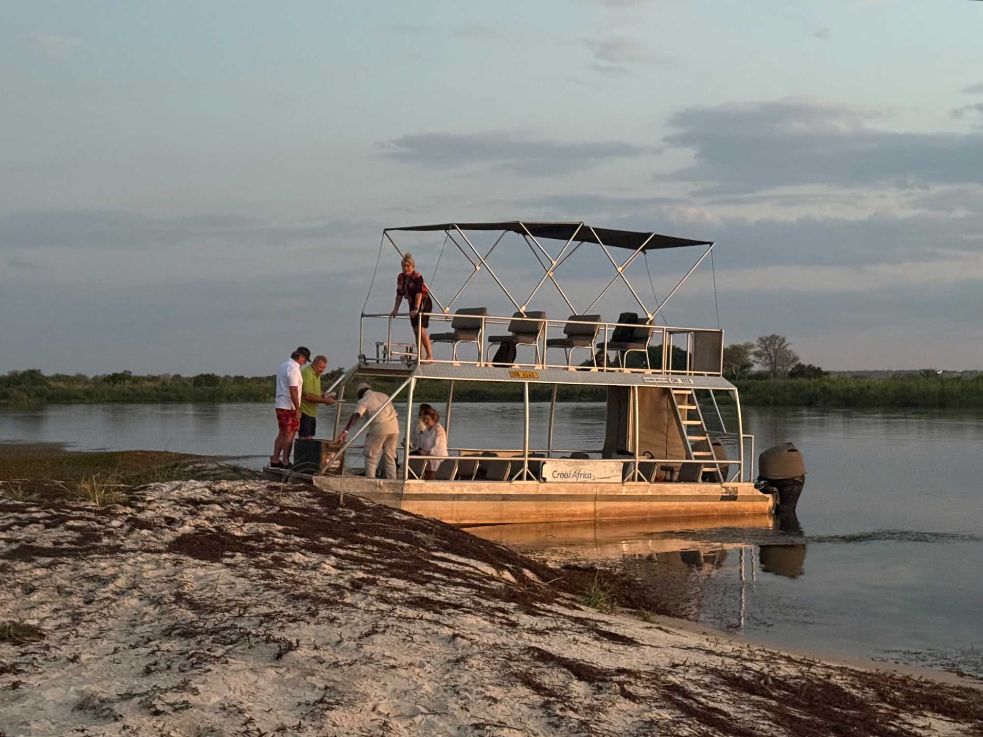 À bord, la magie du fleuve Zambèze a opéré. Nous avons croisé quelques hippopotames 🦛 paisiblement installés près des berges, parfaits modèles pour nos photographes passionnés 📸. En glissant sur l’eau, nous avons longé de petits villages de pêcheurs nomades, témoins silencieux de la vie sur le fleuve.
