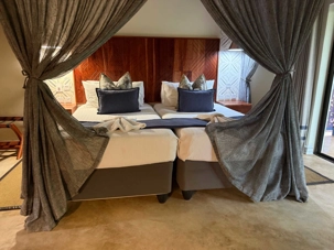 Nous rejoignons ensuite l’aéroport pour un vol privé vers Victoria Falls. Depuis le ciel, le Zambèze apparaît comme un long ruban d’argent serpentant à travers la savane 🪶. À l’arrivée, transfert vers notre hôtel-boutique Shongwe Oasis 5*, un établissement réservé aux adultes, à l’ambiance intime et verdoyante 🌺. Membre d’Africa’s Eden, le lodge soutient les initiatives locales et les projets de conservation, en harmonie avec l’esprit responsable de notre voyage 💚.