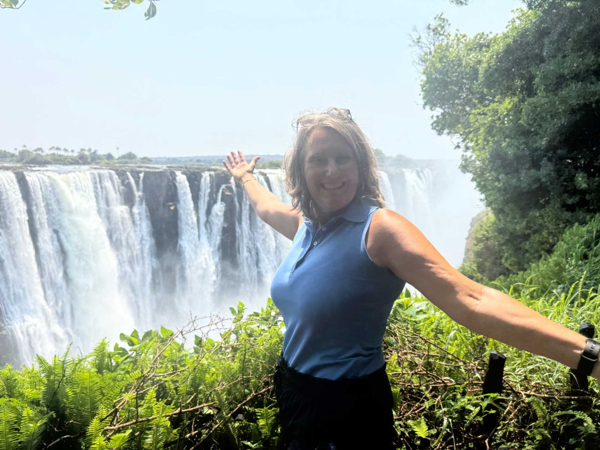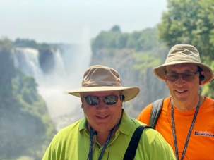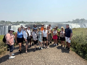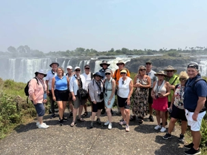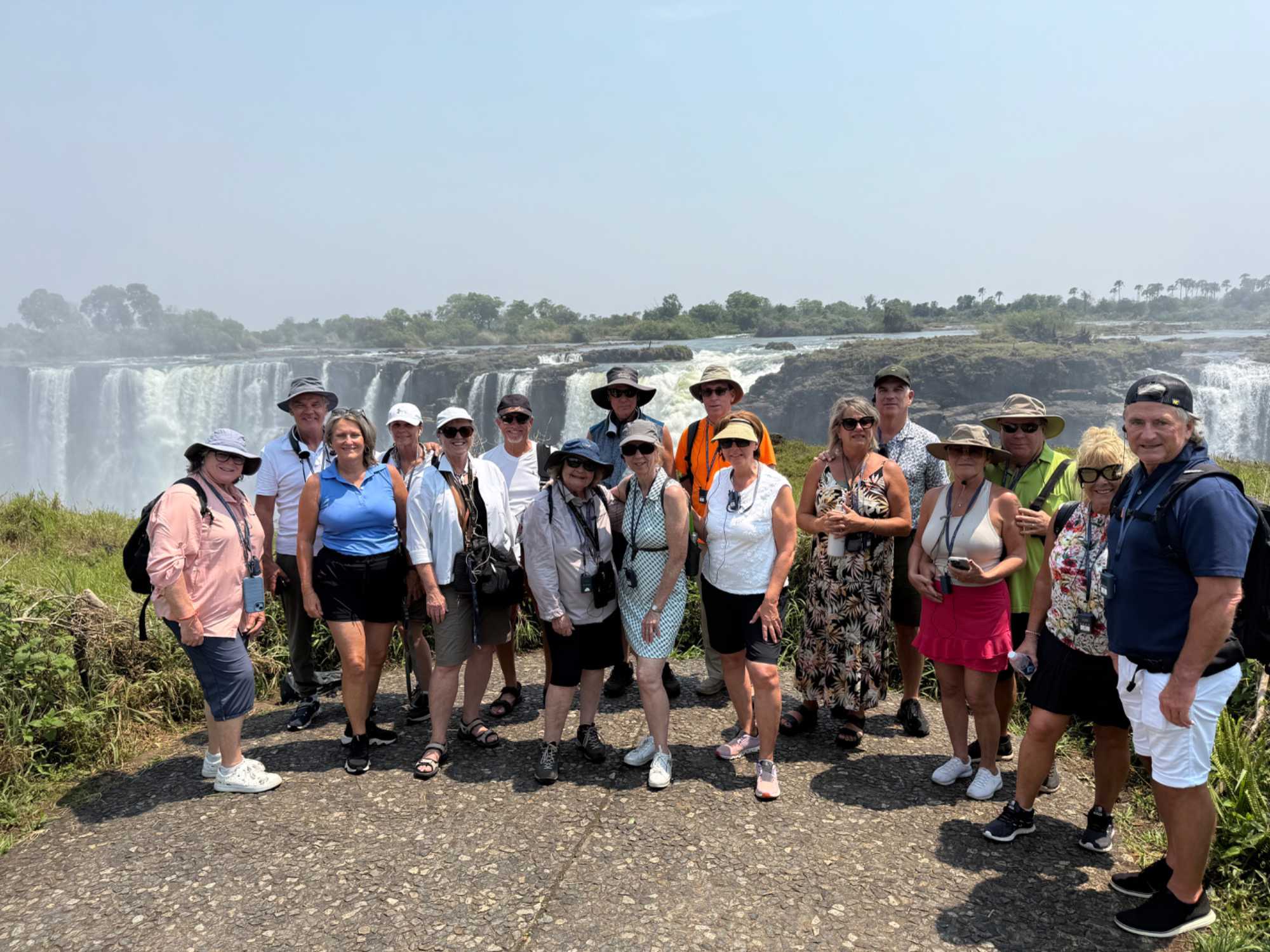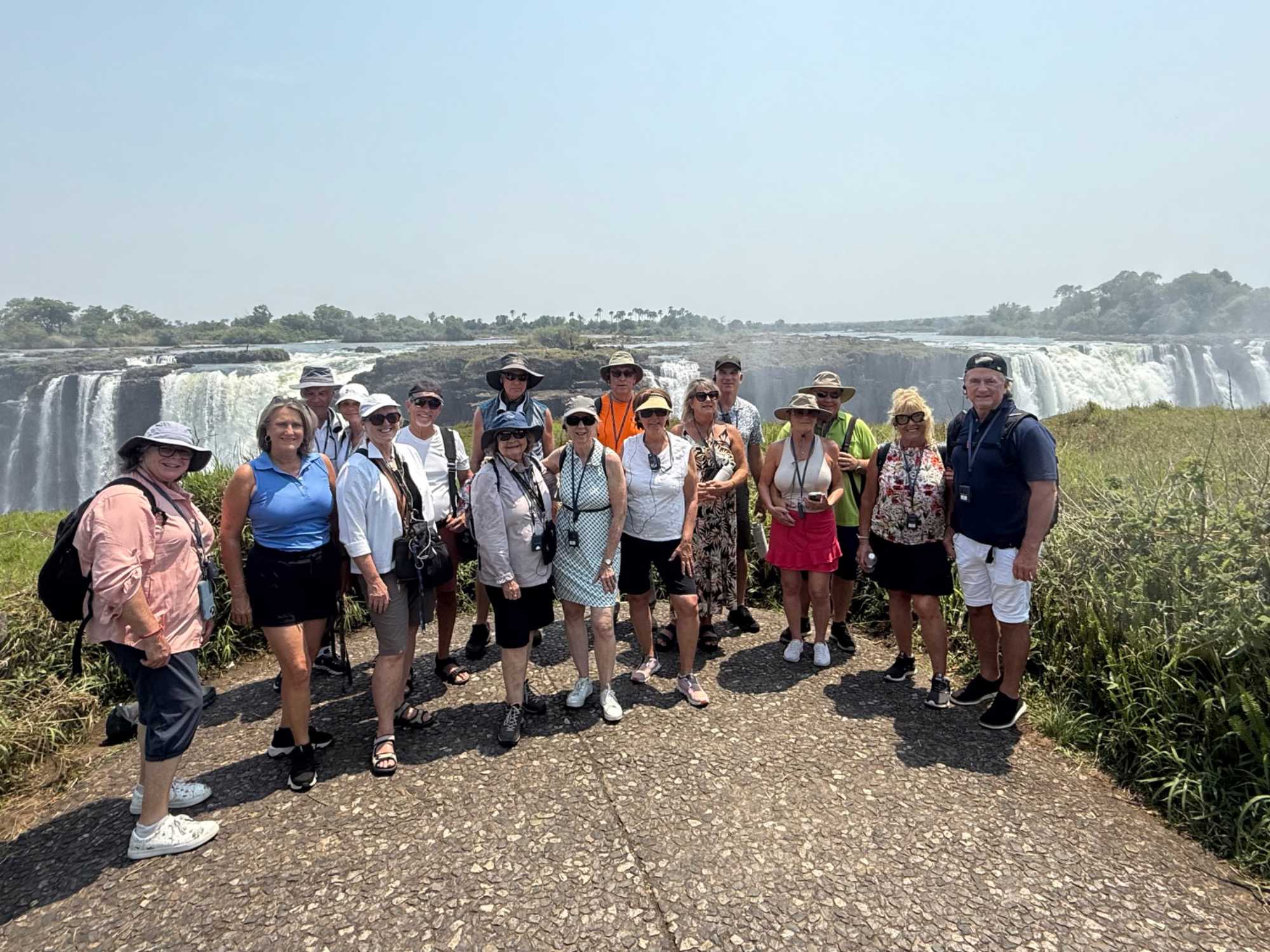 Pendant que le groupe se préparait pour la promenade à pied, Caroline et Raymond ont choisi de découvrir les chutes depuis le ciel 🚁. Leur survol en hélicoptère leur a permis d’admirer la faille géologique, les gorges du Zambèze et les jeux de brume et de lumière sous un angle absolument spectaculaire 🌍✨. Ils sont revenus éblouis par cette expérience unique, le sourire aux lèvres et les yeux pleins d’images inoubliables 💙.