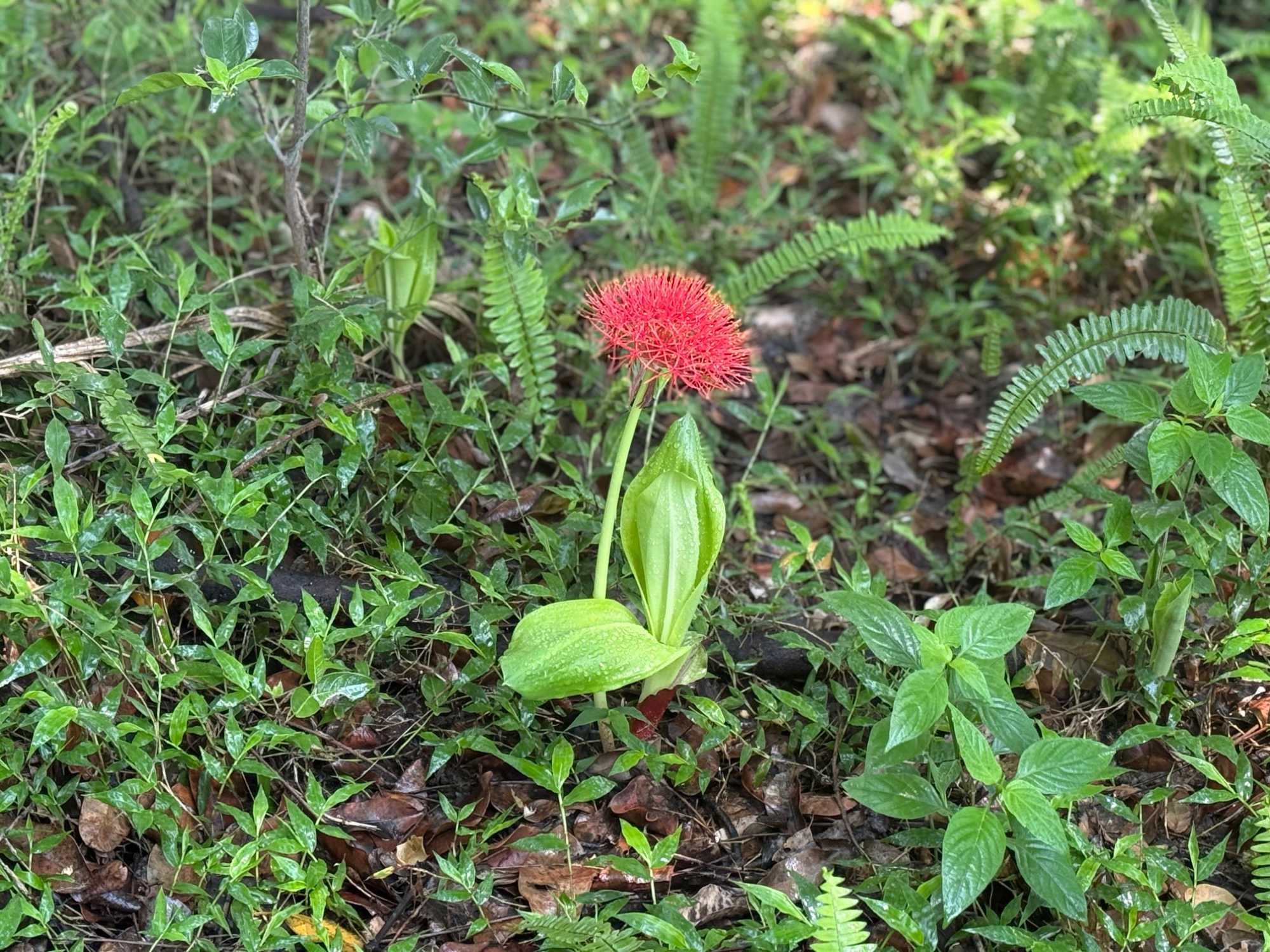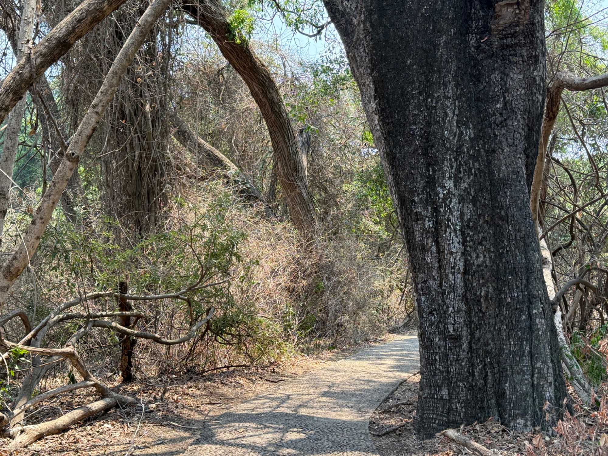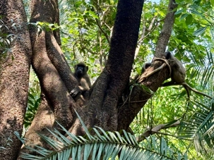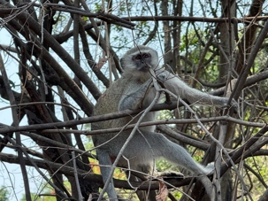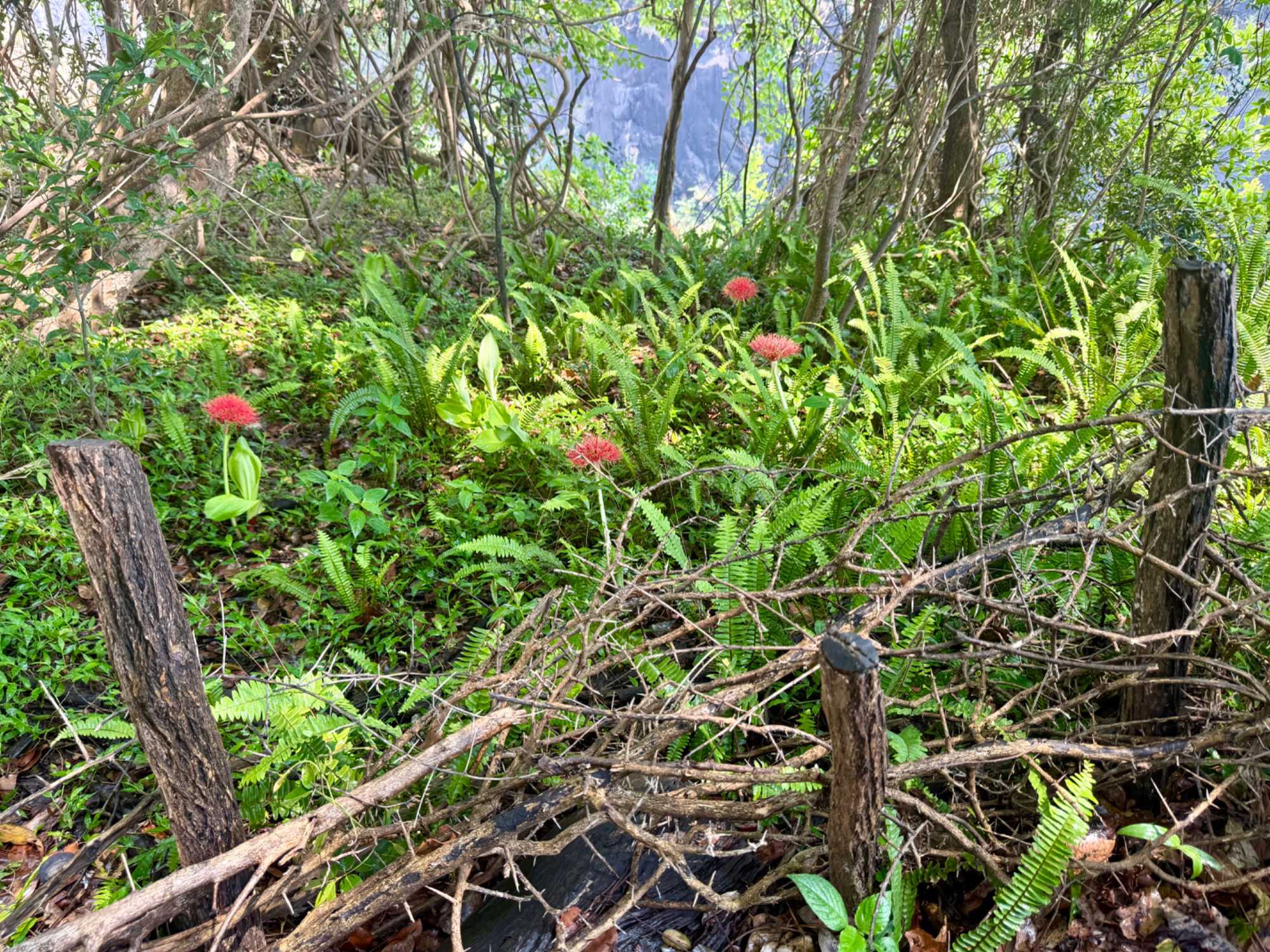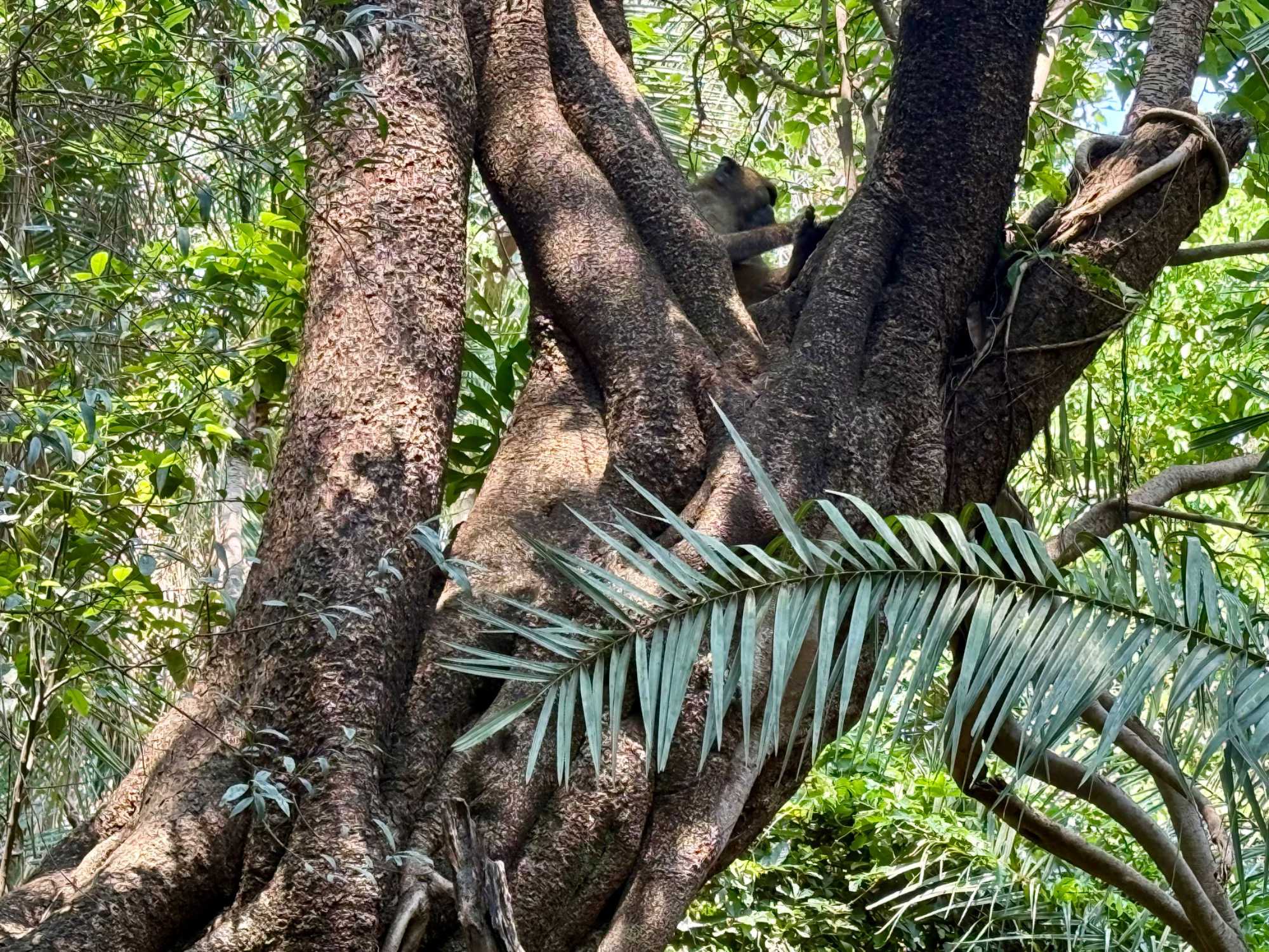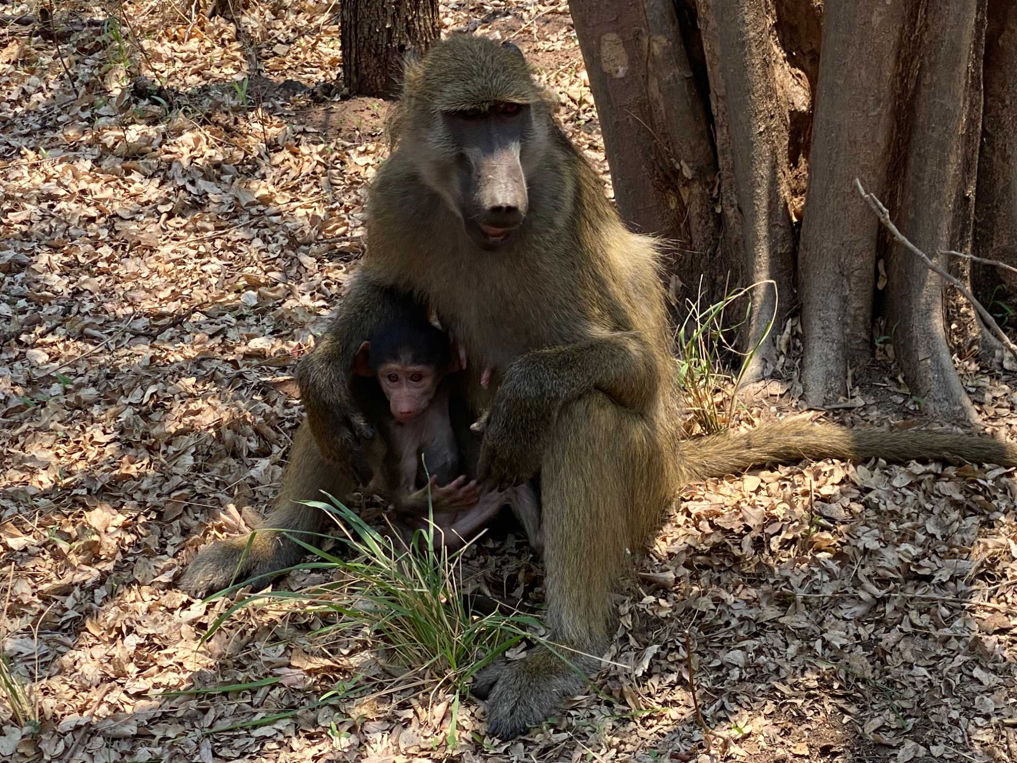 Notre guide Melo, toujours enthousiaste, a su rendre cette balade passionnante, en nous parlant de la géologie, de la flore et de la faune locale. La végétation tropicale était d’une beauté incroyable, notamment cette splendide fleur rouge appelée “Flame des bois” (Spathodea campanulata) 🌺 qui illuminait le paysage. En chemin, nous avons eu la belle surprise de croiser une grande famille de babouins 🐒👀 ! Une scène adorable et amusante : les adultes surveillaient les petits qui sautaient et grimpaient un peu partout. Un moment de nature pure, comme seuls les parcs africains savent en offrir 💛. Même sans arcs-en-ciel ce jour-là 🌤️, la température douce et la brume légère rendaient la marche des plus agréables.