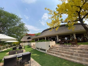 Nous avons ensuite savouré un excellent repas du midi dans un restaurant au cadre enchanteur, entouré de jardins verdoyants et d’arbres en fleurs, notamment les magnifiques acacias jaunes 🌳🌼. Un repas délicieux, accompagné d’une bonne bière bien méritée 🍺 — parfait après une matinée aussi riche !