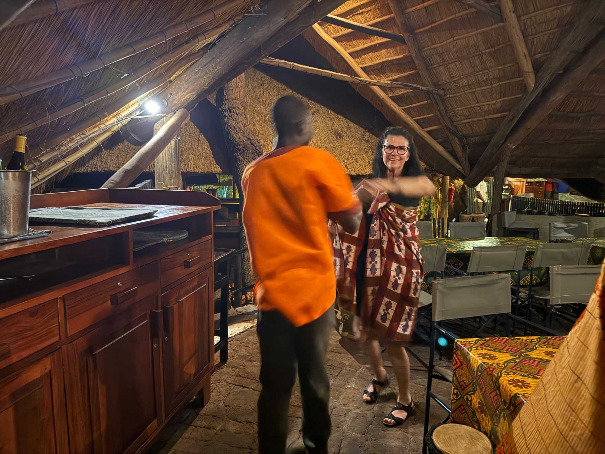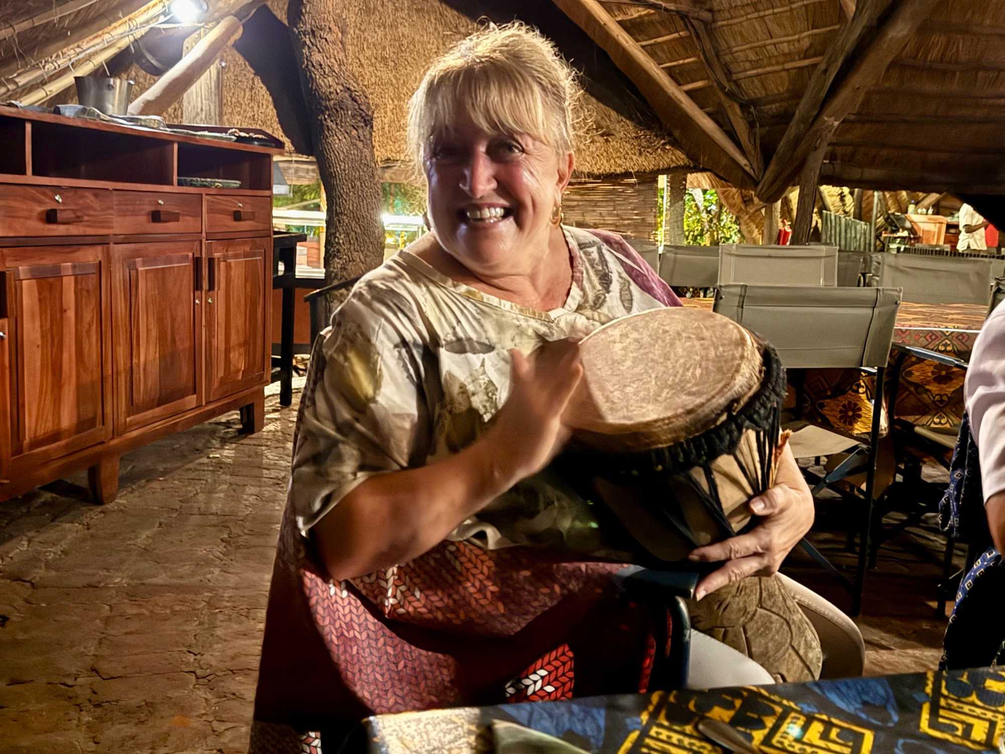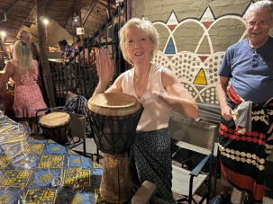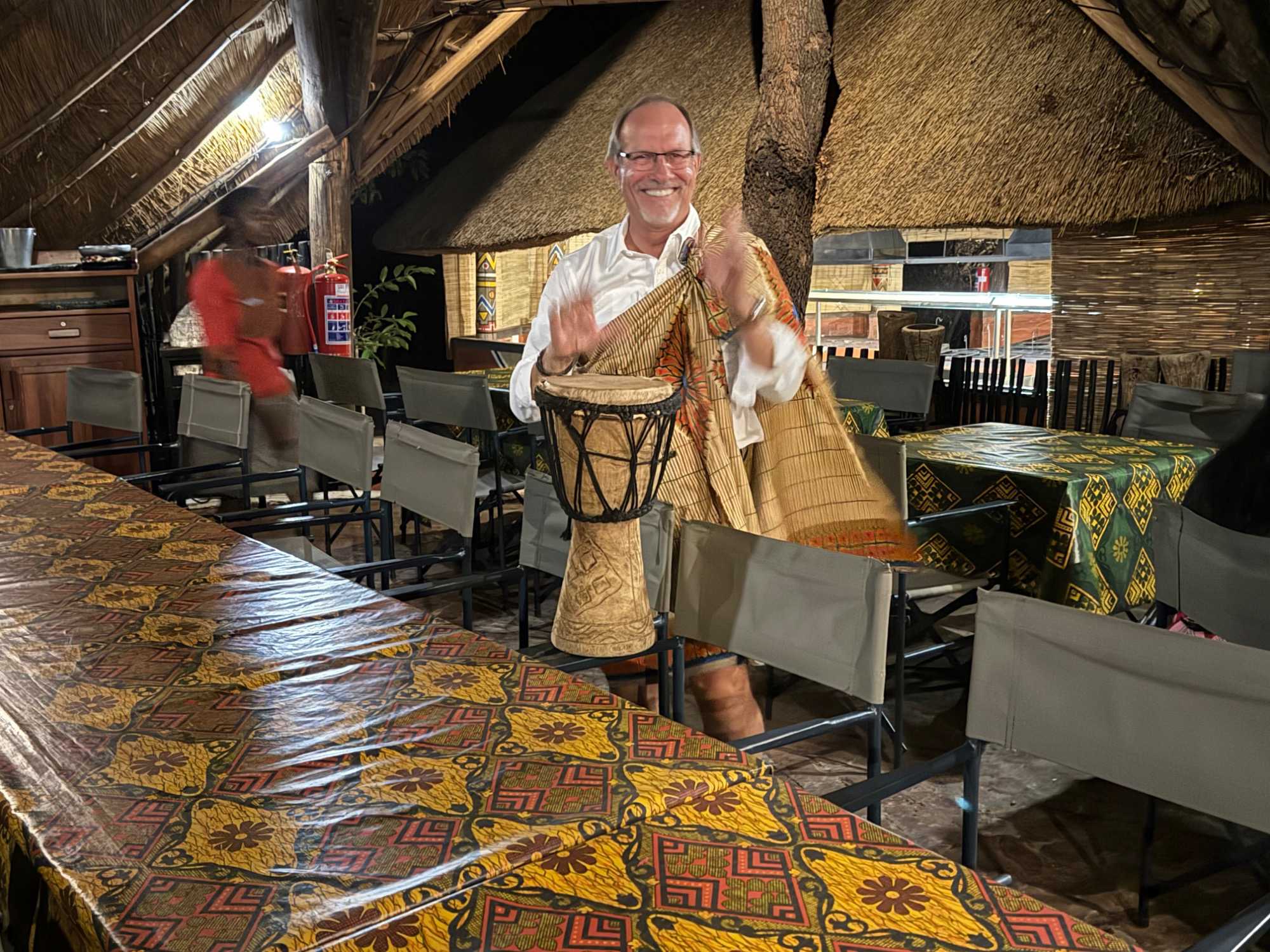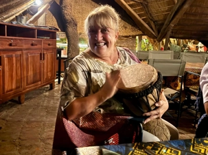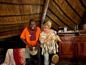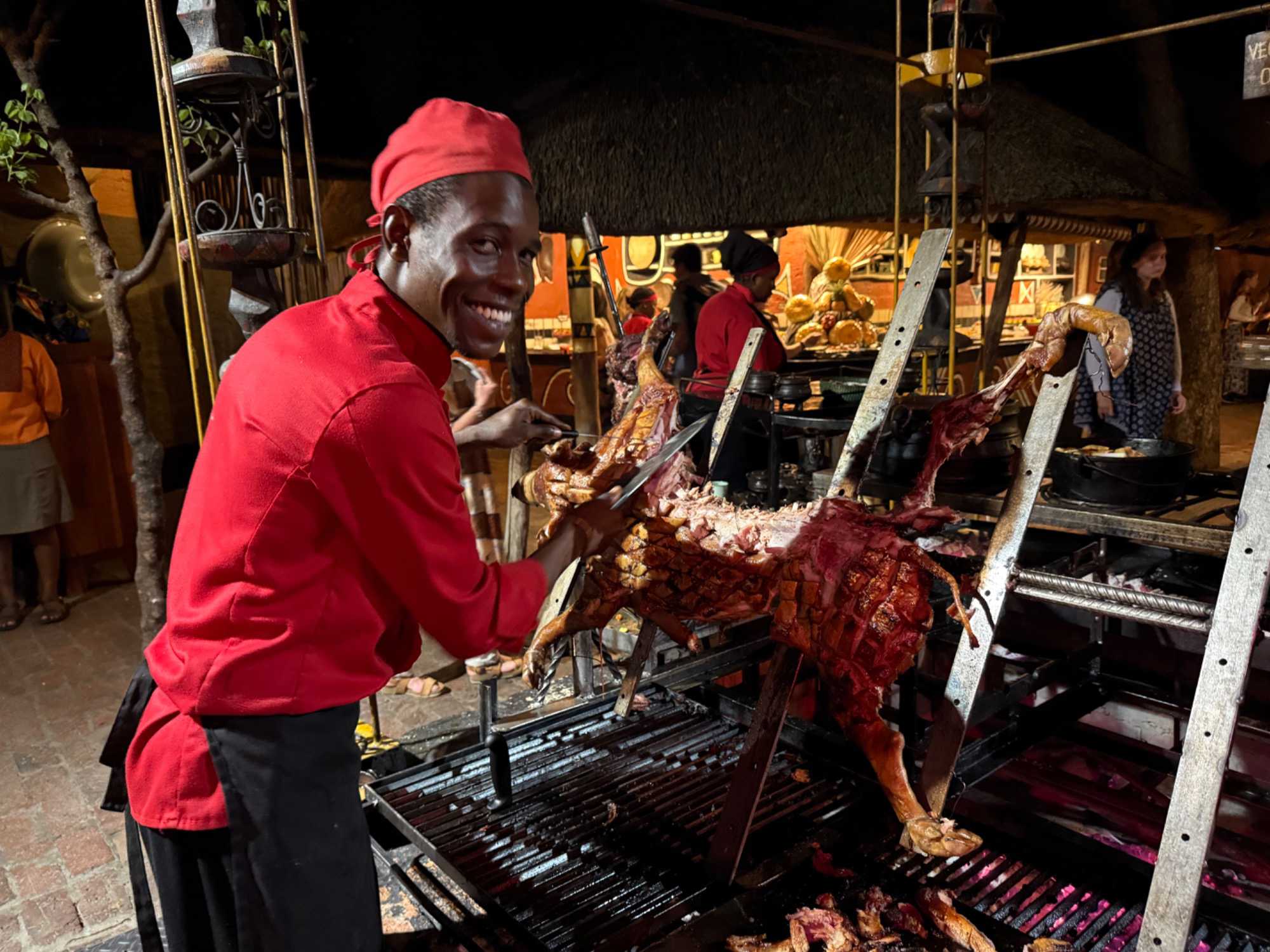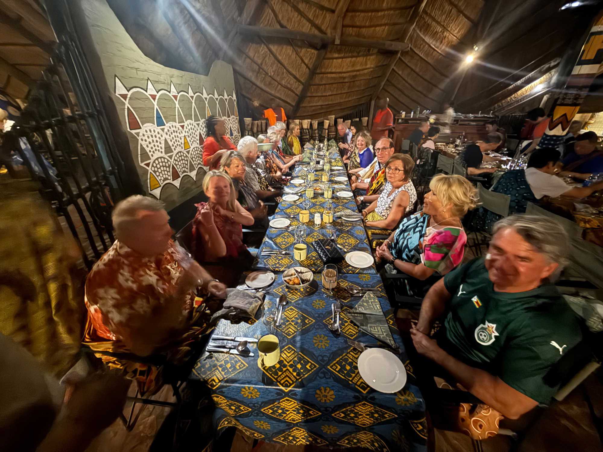Les saveurs, les odeurs et l’ambiance rendaient le moment magique. Mon moment préféré fût celui ou tout mon groupe ont reçu un tam-tam et ont eu droit à un cours en direct. Comme nous nous sommes amusés. Notre serveur, Hendrick, jeune, souriant et plein d’entrain, a ajouté une belle dose de bonne humeur à la soirée 😄. Tout le monde l’a adoré ! 💕C’était un souper festif, typiquement africain, qui a parfaitement clôturé cette journée mémorable sous les étoiles du Zimbabwe 🌙✨.