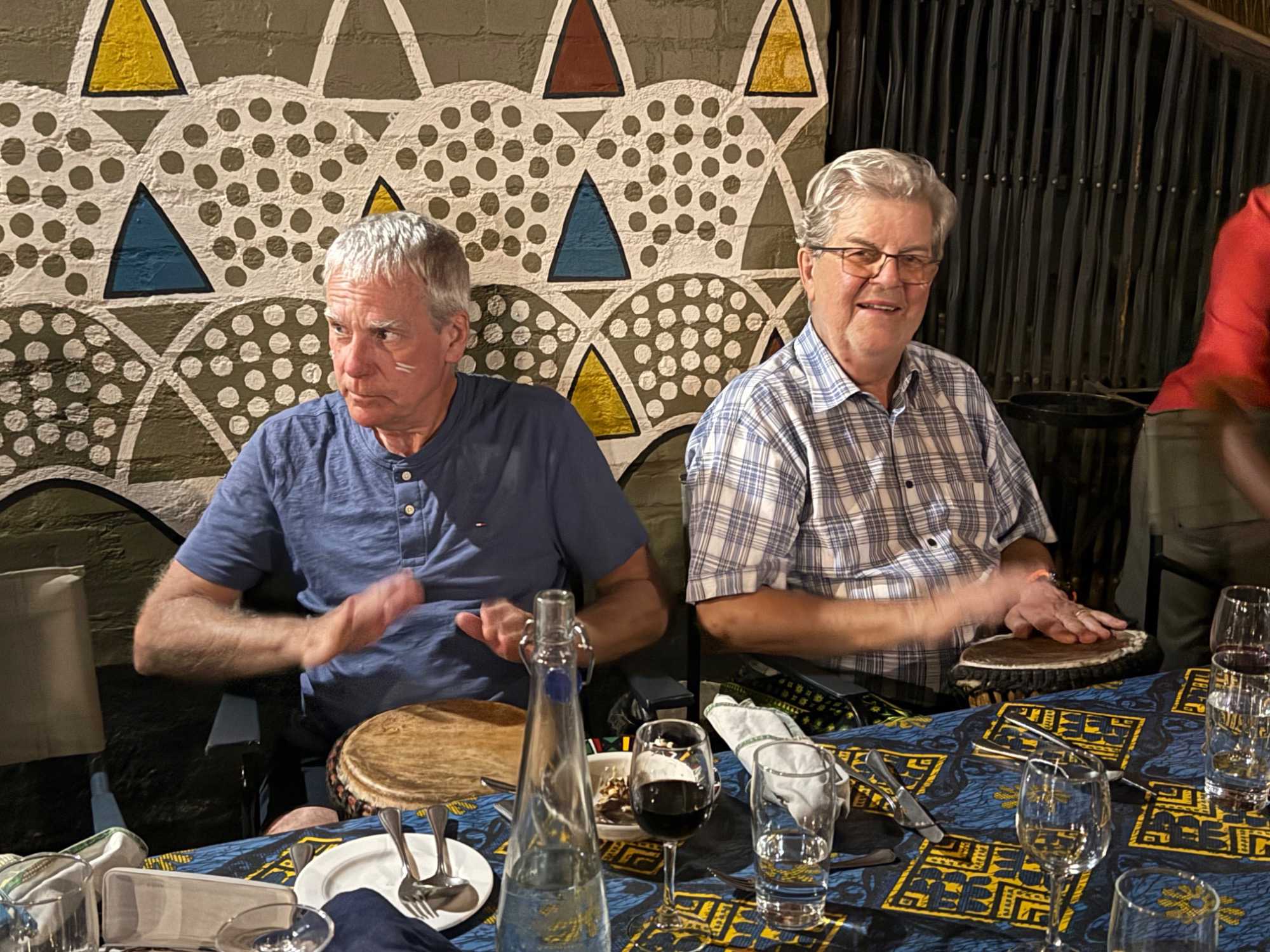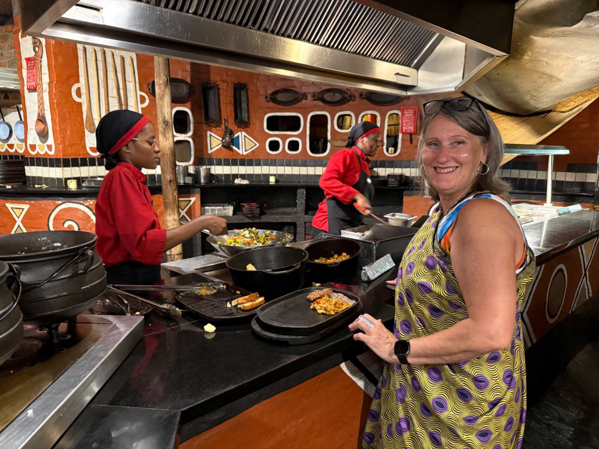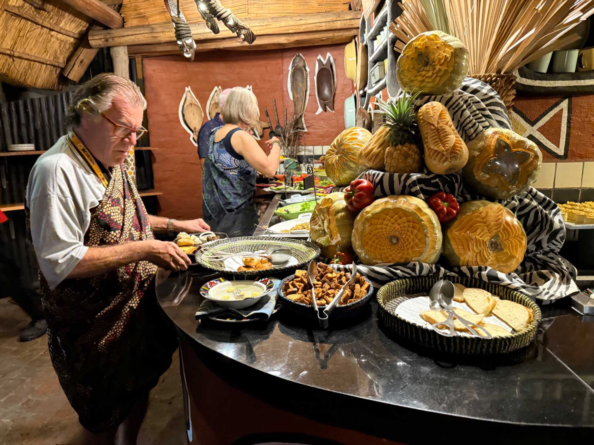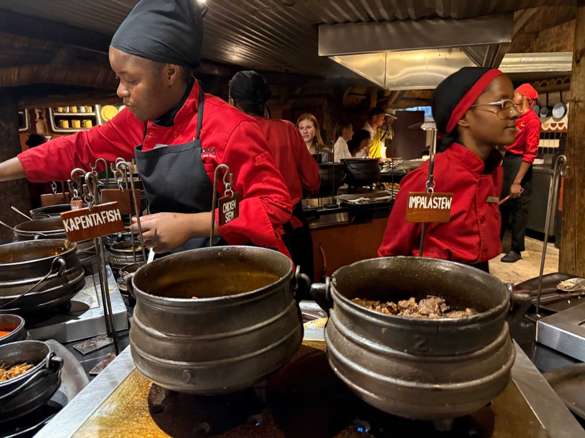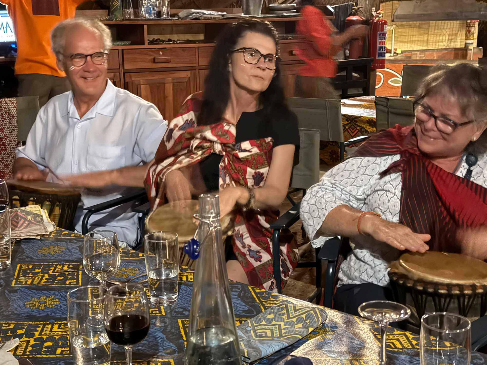 Les saveurs, les odeurs et l’ambiance rendaient le moment magique. Mon moment préféré fût celui ou tout mon groupe ont reçu un tam-tam et ont eu droit à un cours en direct. Comme nous nous sommes amusés. Notre serveur, Hendrick, jeune, souriant et plein d’entrain, a ajouté une belle dose de bonne humeur à la soirée 😄. Tout le monde l’a adoré ! 💕C’était un souper festif, typiquement africain, qui a parfaitement clôturé cette journée mémorable sous les étoiles du Zimbabwe 🌙✨.