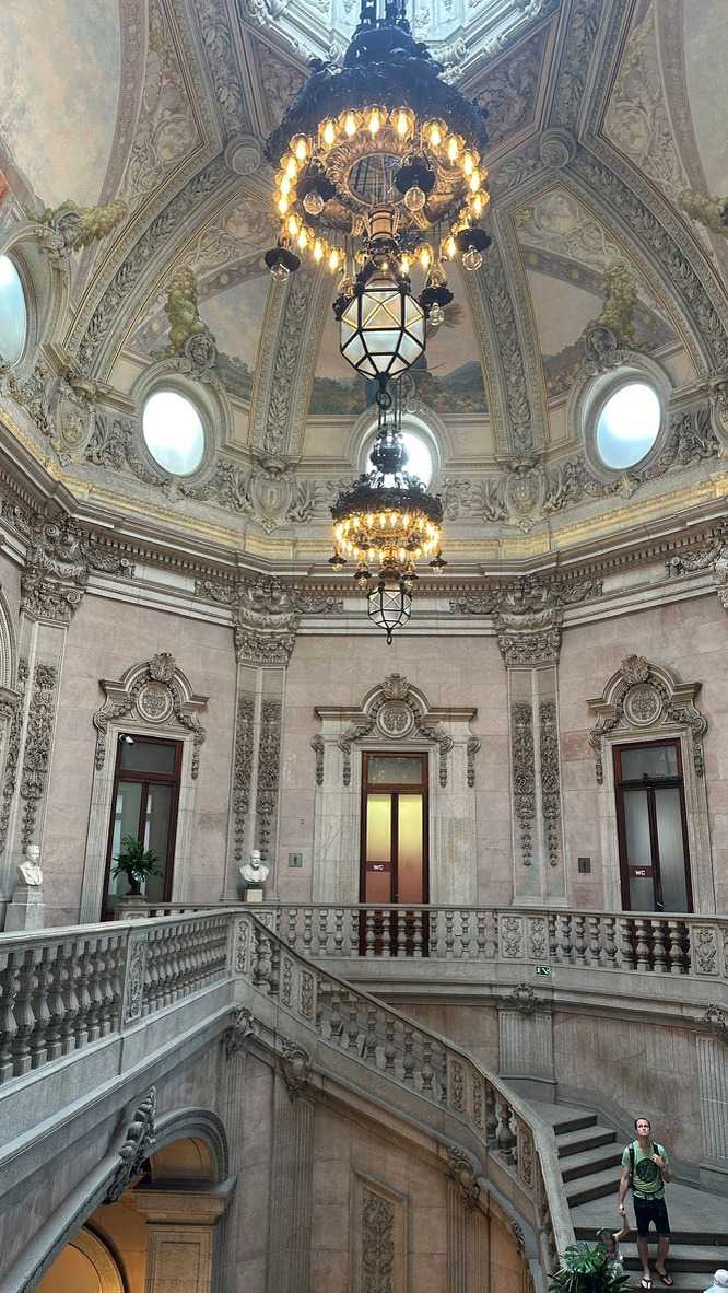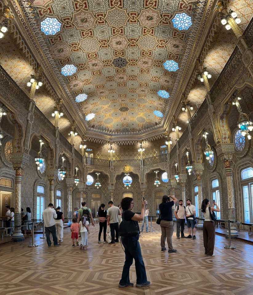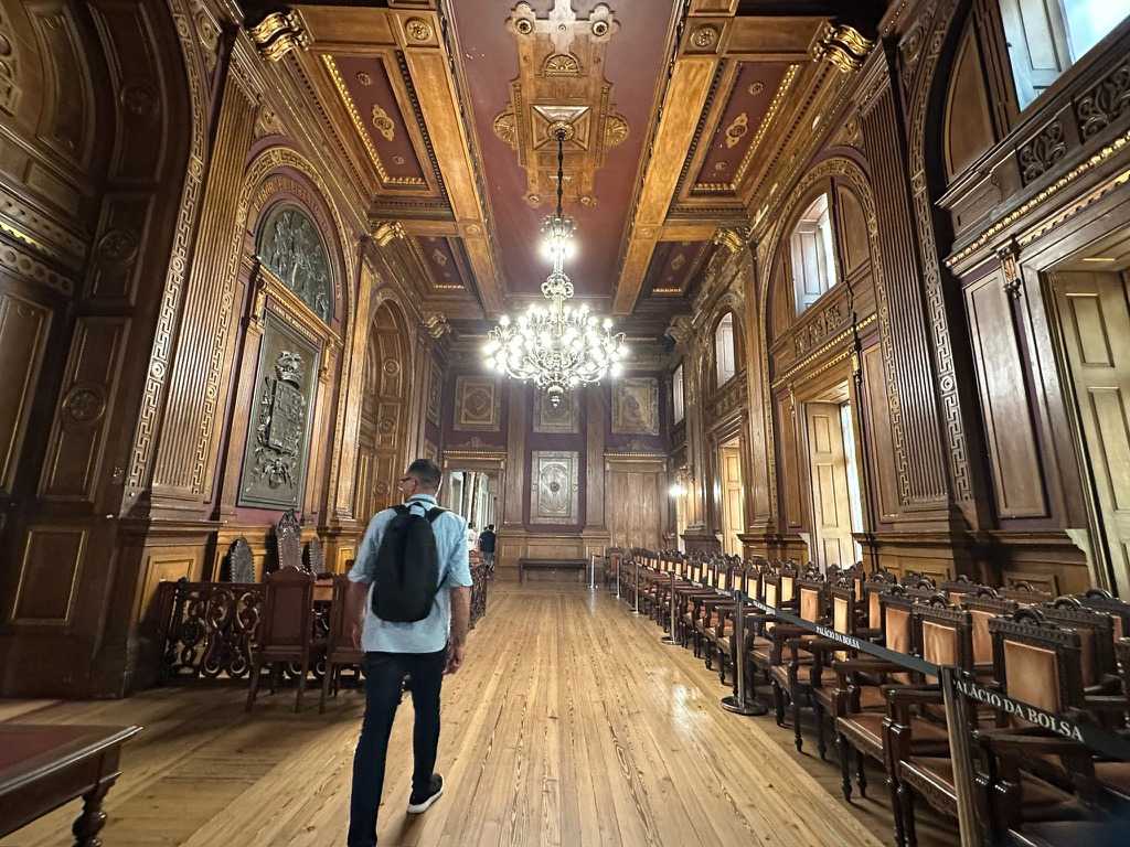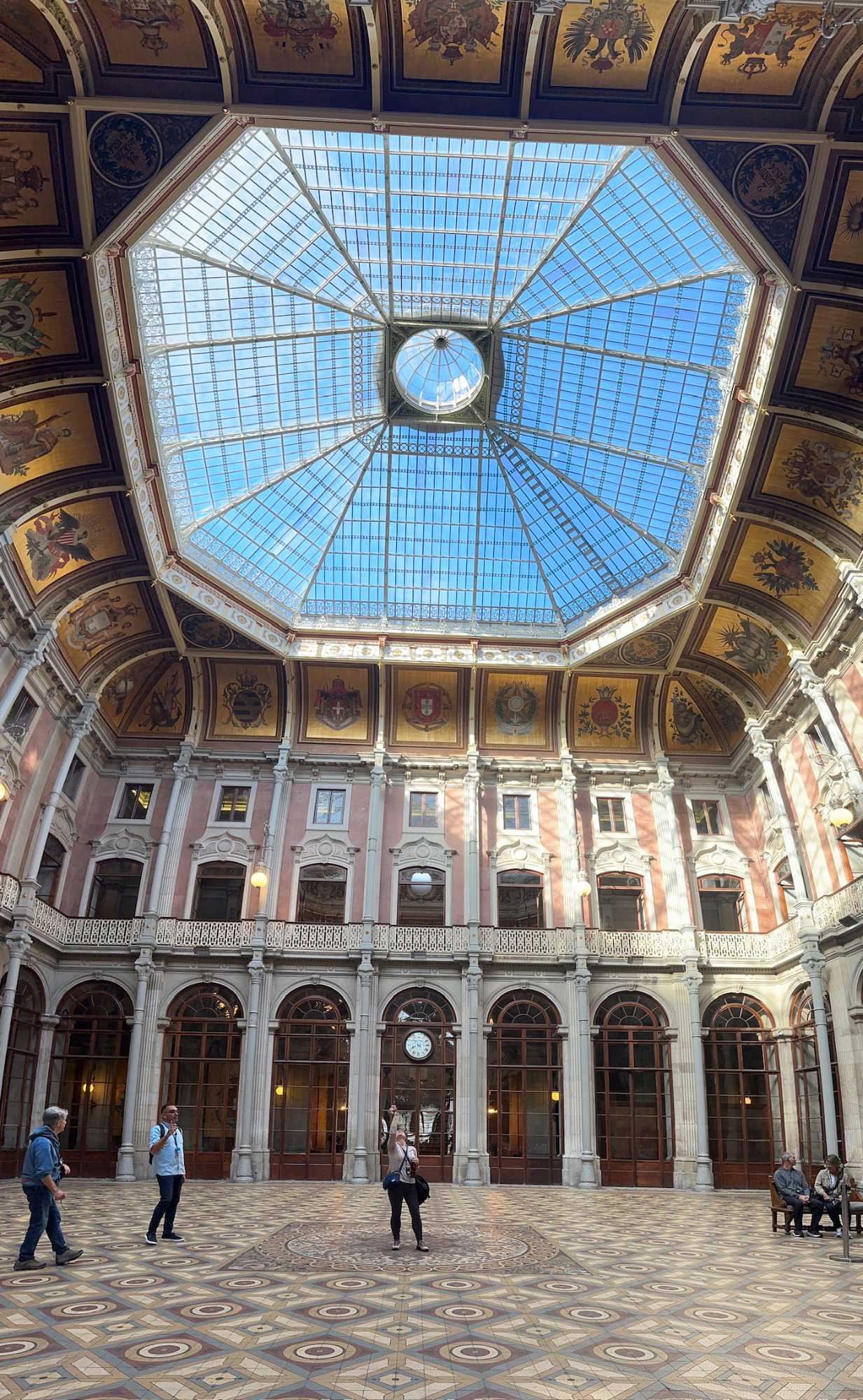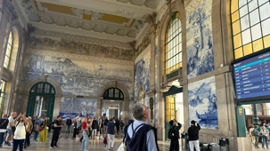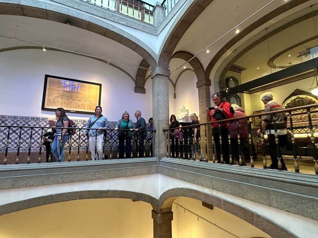 Dans le centre historique qu’on nomme le quartier Ribeira, nous avons fait une agréable balade à pied qui nous a fait le plus grand bien et nous a permis de nous dégourdir; nous avons pu y admirer la tour des Clercs, l'extérieur les églises du Carmo et Carmélites, l'Avenue des Alliés, ainsi que la Station de train São Bento aux magnifiques "azulejos", ces carreaux de faïences bleu et blanc qui ornent tant de façades à Porto. Nous avons même pu faire la visite du Palais de la Bourse, Ce Palais à l’escalier monumental, au cloître transformé en salle des nations donnant sur un dôme vitré est truffé de salles somptueusement décorées, de tapisseries imposantes et fréquenté par la noblesse de Porto. Le clou de la visite est le salon mauresque ou salon arabe dont la décoration laisse pantois. À voir dans les photos ci-dessous, vous comprendrez.