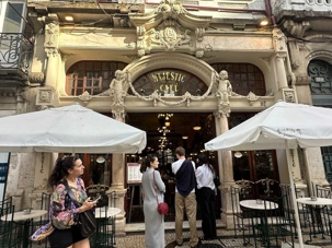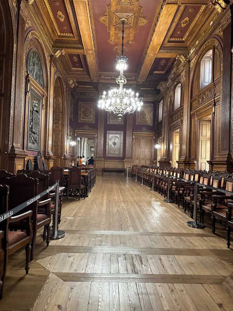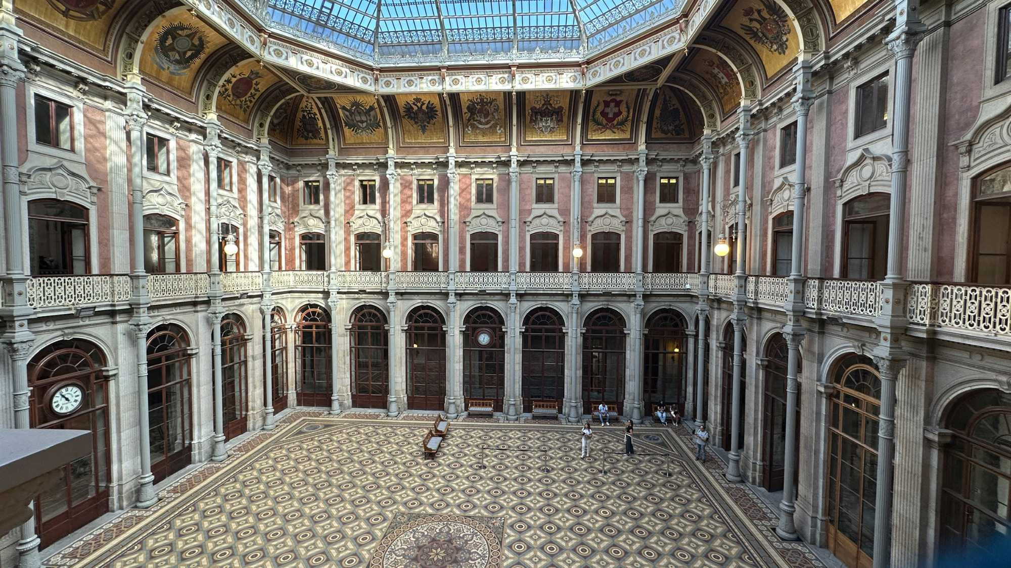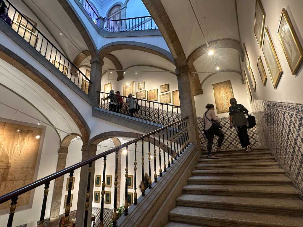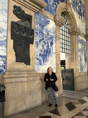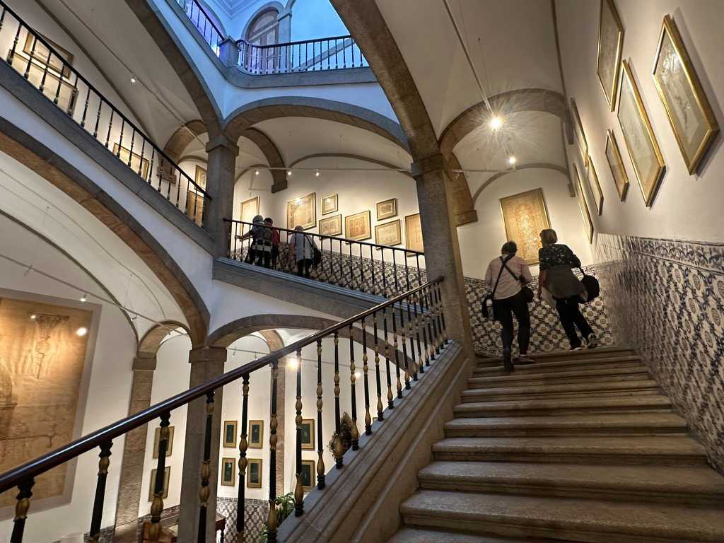 Dans le centre historique qu’on nomme le quartier Ribeira, nous avons fait une agréable balade à pied qui nous a fait le plus grand bien et nous a permis de nous dégourdir; nous avons pu y admirer la tour des Clercs, l'extérieur les églises du Carmo et Carmélites, l'Avenue des Alliés, ainsi que la Station de train São Bento aux magnifiques "azulejos", ces carreaux de faïences bleu et blanc qui ornent tant de façades à Porto. Nous avons même pu faire la visite du Palais de la Bourse, Ce Palais à l’escalier monumental, au cloître transformé en salle des nations donnant sur un dôme vitré est truffé de salles somptueusement décorées, de tapisseries imposantes et fréquenté par la noblesse de Porto. Le clou de la visite est le salon mauresque ou salon arabe dont la décoration laisse pantois. À voir dans les photos ci-dessous, vous comprendrez.