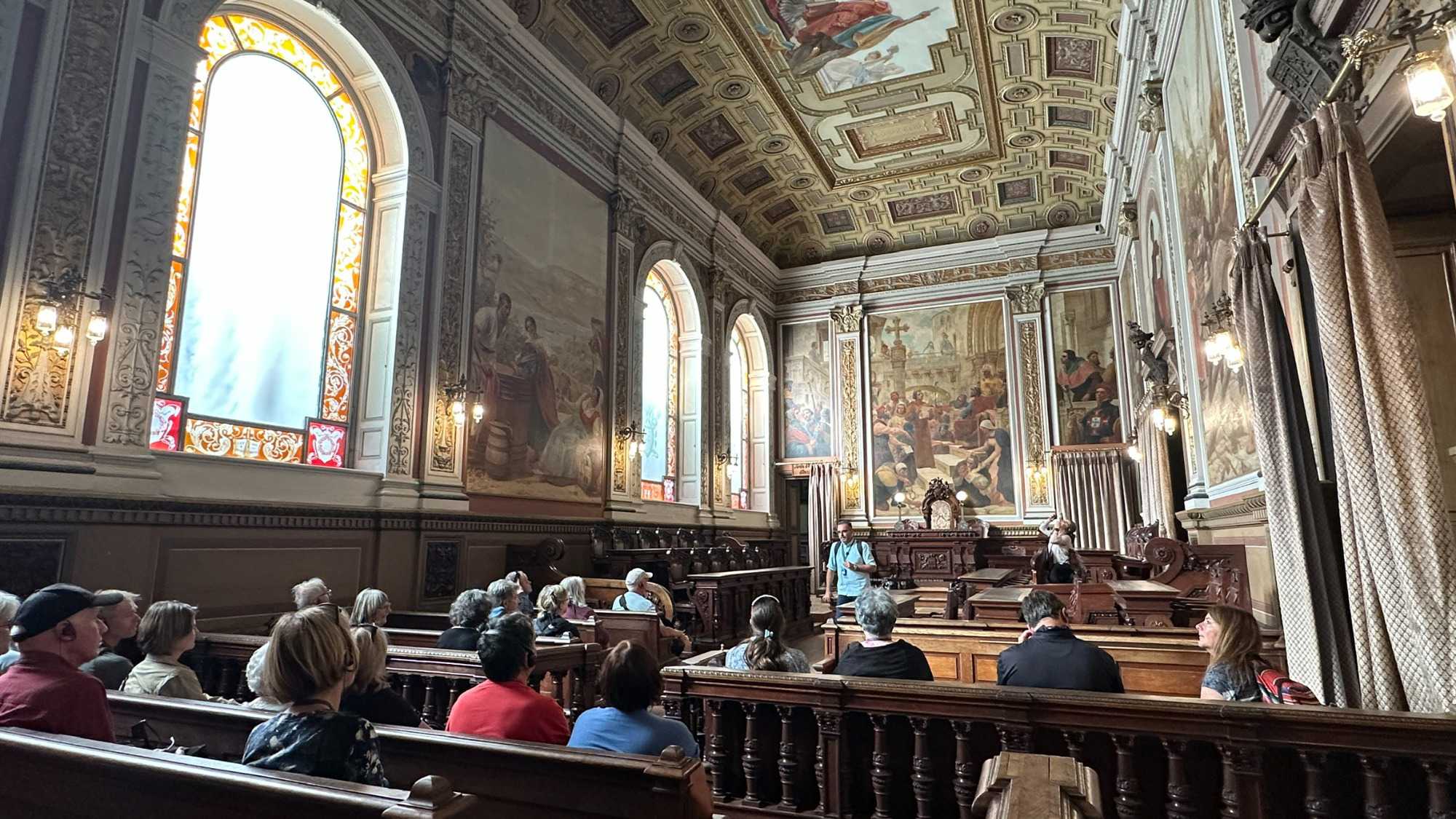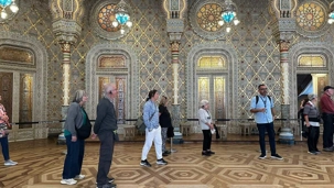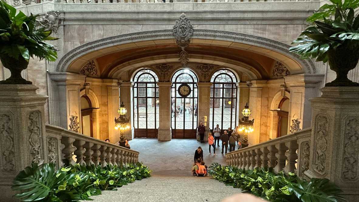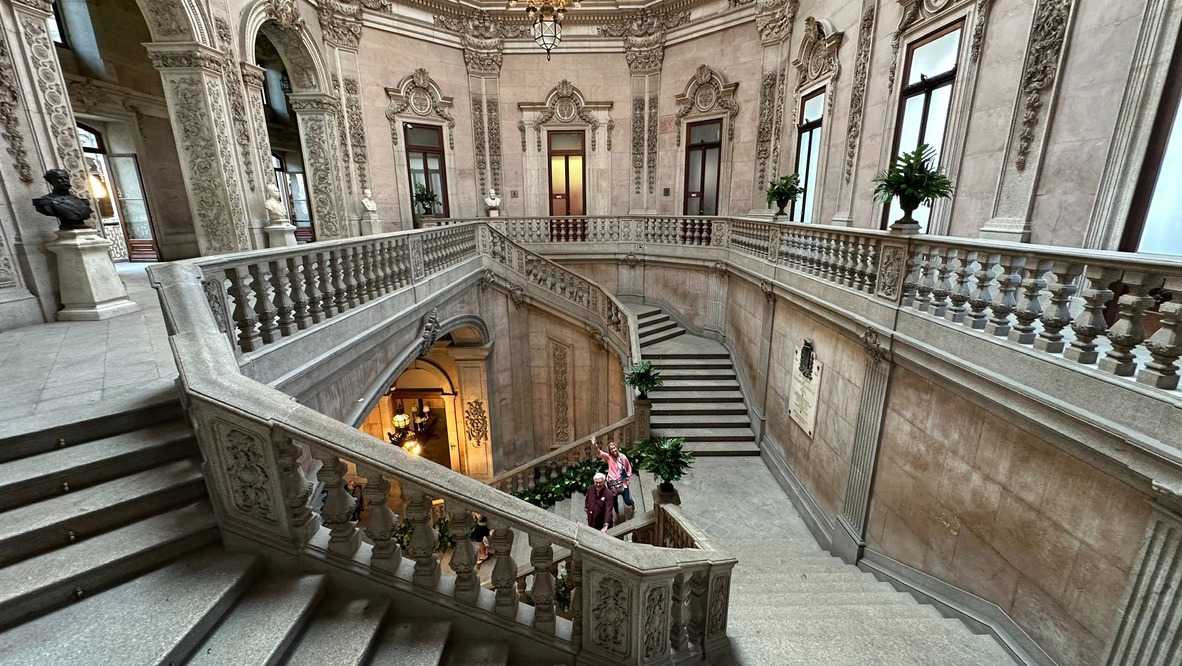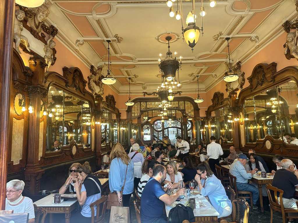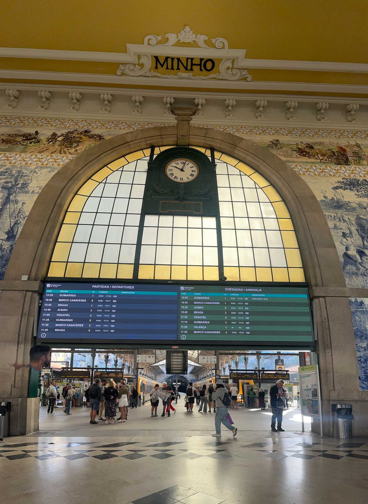 Dans le centre historique qu’on nomme le quartier Ribeira, nous avons fait une agréable balade à pied qui nous a fait le plus grand bien et nous a permis de nous dégourdir; nous avons pu y admirer la tour des Clercs, l'extérieur les églises du Carmo et Carmélites, l'Avenue des Alliés, ainsi que la Station de train São Bento aux magnifiques "azulejos", ces carreaux de faïences bleu et blanc qui ornent tant de façades à Porto. Nous avons même pu faire la visite du Palais de la Bourse, Ce Palais à l’escalier monumental, au cloître transformé en salle des nations donnant sur un dôme vitré est truffé de salles somptueusement décorées, de tapisseries imposantes et fréquenté par la noblesse de Porto. Le clou de la visite est le salon mauresque ou salon arabe dont la décoration laisse pantois. À voir dans les photos ci-dessous, vous comprendrez.