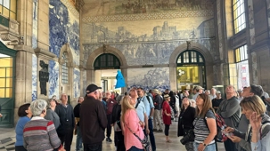 Une bien belle journée attend nos voyageurs. Arrivés à l’aéroport de Porto tôt dans la matinée, tous ont pu sortir rapidement de l’aéroport et nous avons pu rejoindre rapidement notre chauffeur Neilson, qui parle et comprend très bien le français! Que c’est agréable ! On s’installe confortablement dans l’autocar et hop, nous commençons un superbe tour de ville panoramique avec quelques arrêts photos pour prendre connaissance du charme incontesté et incontestable de cette ville. Sur le parcours nous apercevons depuis Foz, un village aux somptueuses résidences en bord de mer, de magnifiques plages longeant une grande partie de la côte, des manoirs, villas et autres édifices éclectiques jusqu'à l'estuaire du fleuve du Douro. Les gens pratiquent le jogging, roulent à bicyclette, se prélassent sur la plage immense longue de plusieurs km de sable doré. D’ailleurs, il est facile de trouver un coin tranquille en bord de mer puisque vous pourriez presque vous rendre par la plage jusqu’à Vigo en Espagne qui est situé à 150 km de Porto! Ça donne déjà des airs de vacances, on s’y sent bien. Vous aimeriez acheter une villa dans Foz ? Sachez que le m2 est celui qui est le plus cher dans tout le Portugal. Parfois même jusqu’à 8000 euros le m2.