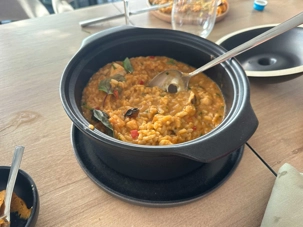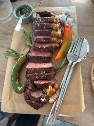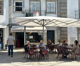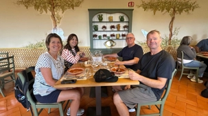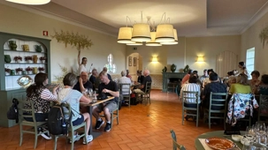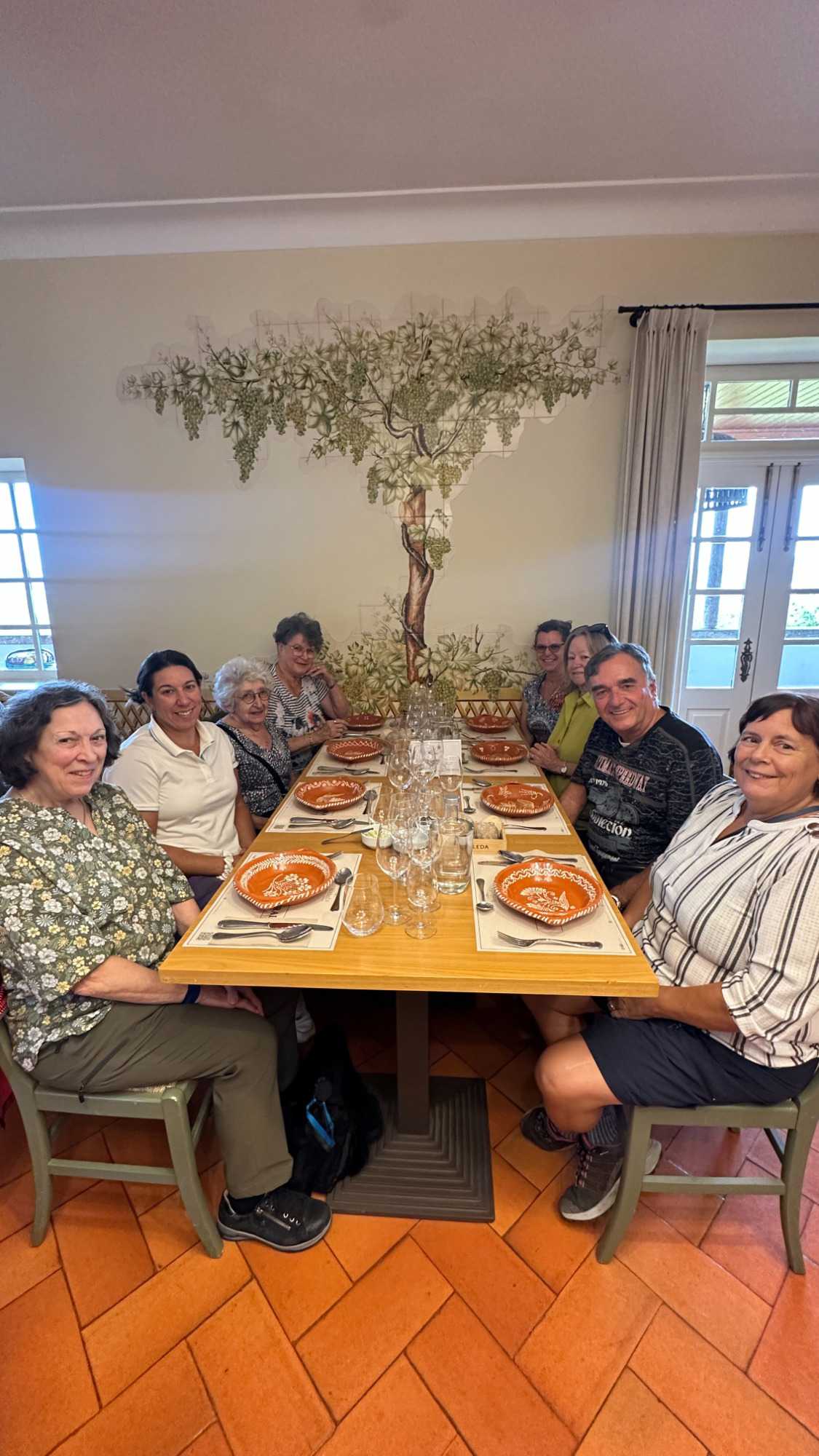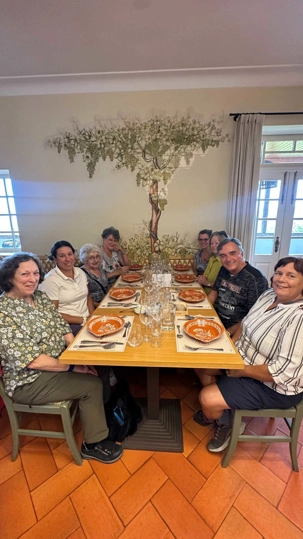 Après toutes ces découvertes, il est temps de reprendre des forces. Un dîner entre "terre et mer" nous attend, dans un restaurant qui met en valeur les produits frais de la région : Oh là là ! Sandra, notre guide, nous explique que les portugais se font un honneur de recevoir “la visite” en sortant tout l’attirail et le savoir-faire dont ils disposent pour impressionner! Voici la liste du menu que nous avons tenté d’honorer: