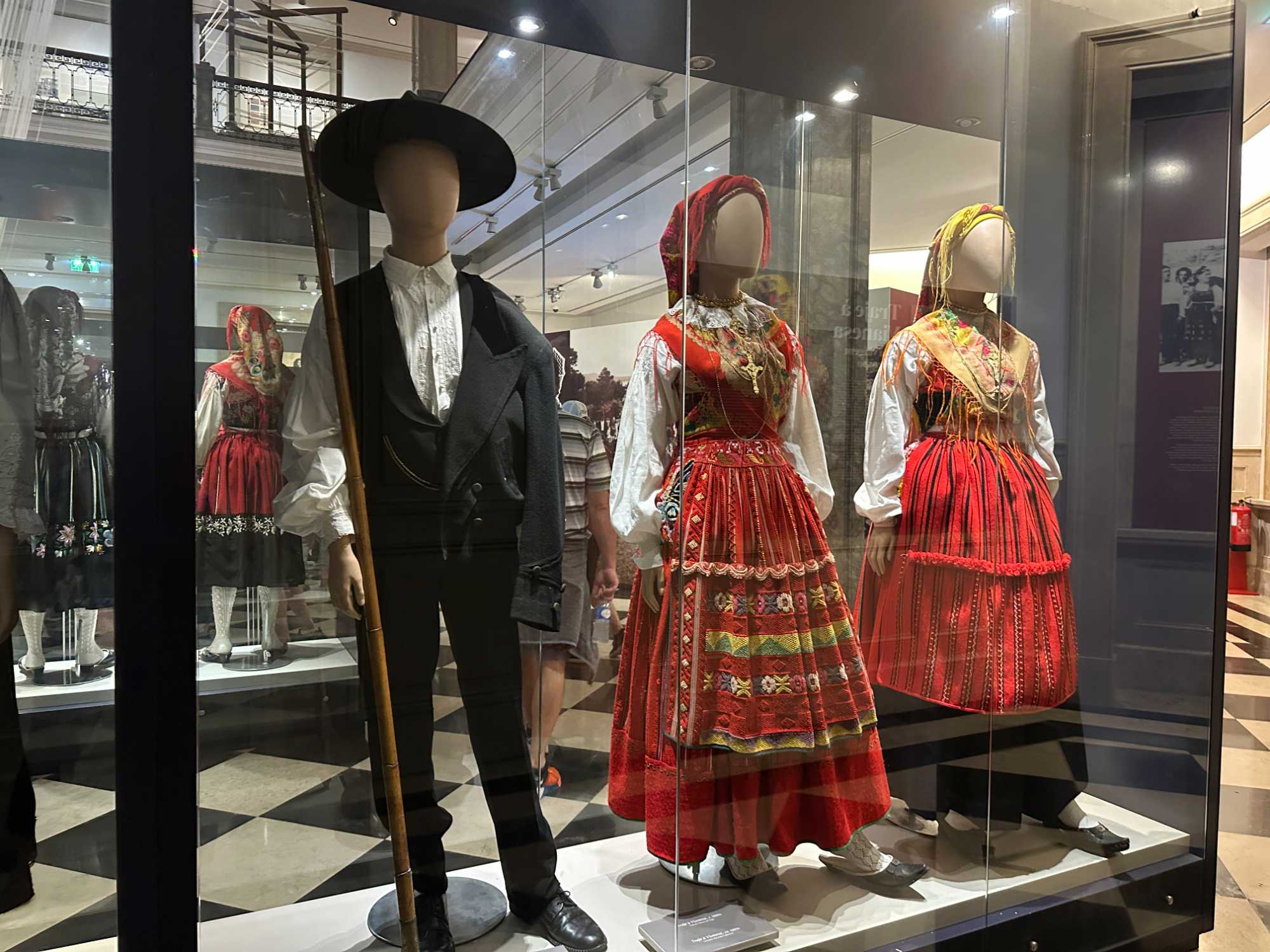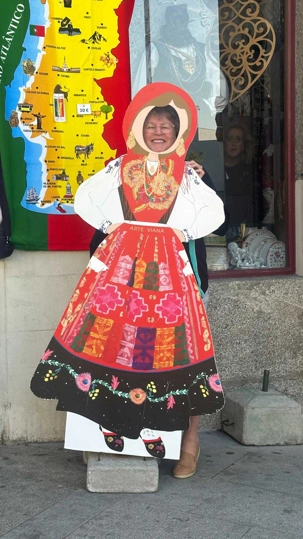 Notre dernière visite de la matinée nous plonge dans une autre facette du patrimoine local : le musée des costumes traditionnels. À travers les différentes salles d’exposition, nous découvrons la richesse et la diversité des habits traditionnels vianais. Qu’ils soient portés pour le travail, les fêtes, les mariages ou les cérémonies religieuses, les couleurs, les broderies et les accessoires de ces costumes témoignent du savoir-faire des artisans et des coutumes profondément enracinées dans la région. Par exemple, on y apprend que les mariés étaient vêtus ……de noir!