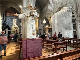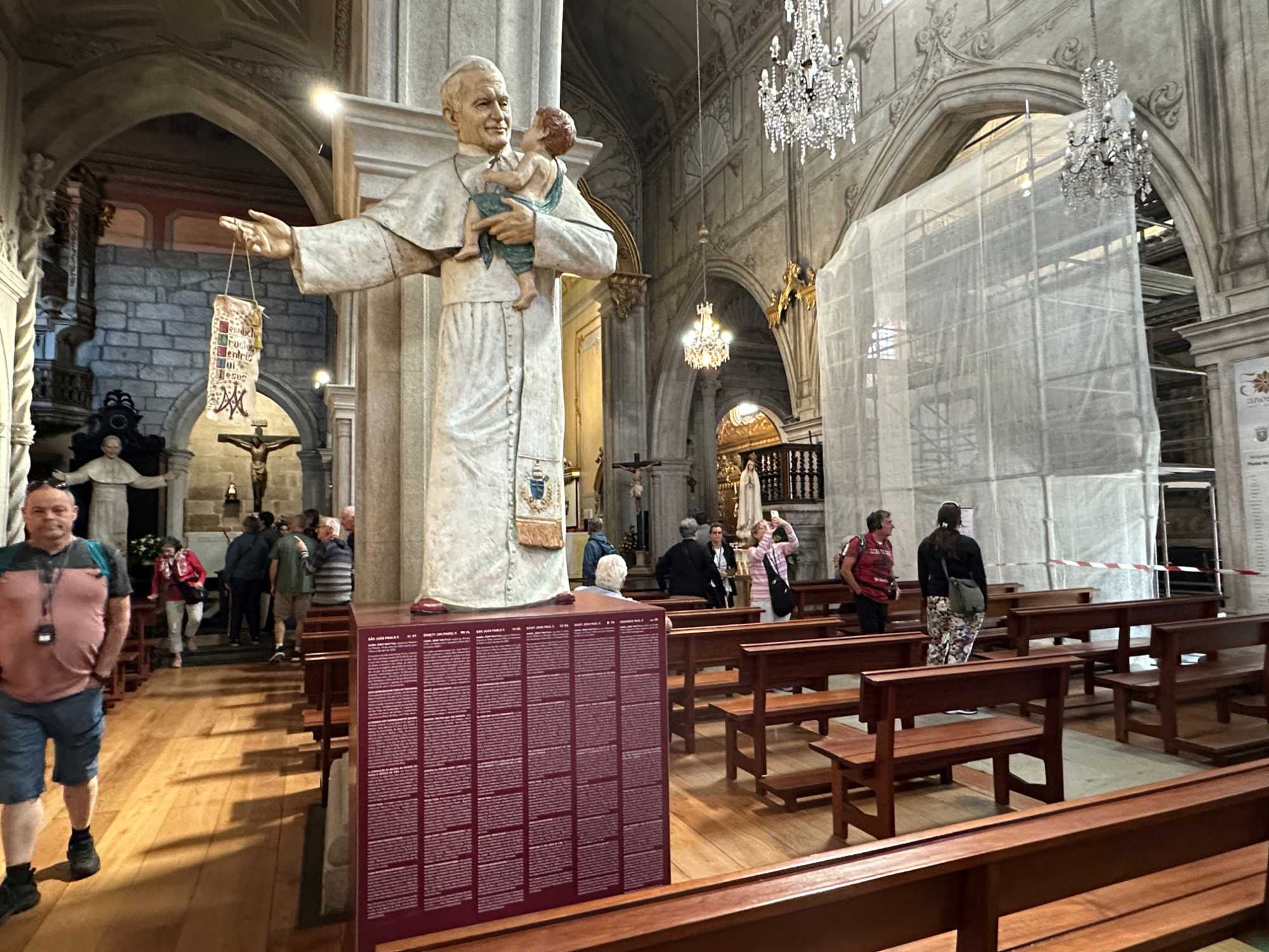 Nous faisons ensuite un arrêt au centre d’interprétation du Chemin de Saint-Jacques de Compostelle de la côte portugaise, un espace bien conçu qui met en lumière l’importance du pèlerinage dans la région. Ça vous dit d’en faire un bout ? Sachez qu’il ne vous faudra parcourir que 100 petits kilomètres pour obtenir votre certificat en prenant soin de faire estampiller votre crédencial. L'âme de ce sentier de pèlerinage est bien présente partout ici. Un passage à la cathédrale Matriz, datant du XVe siècle; bel exemple d’architecture religieuse gothique.