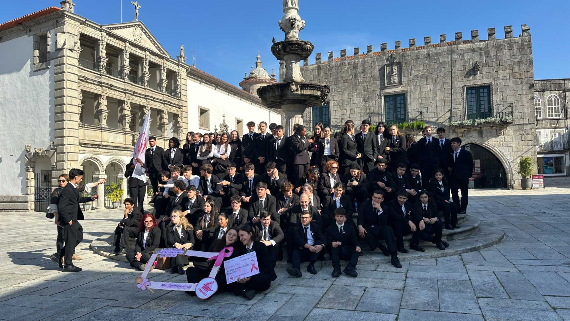 Sur la très belle et grande place de la République, trois édifices du XVIe siècle attirent notre attention : l’ancien hôtel de ville, la fontaine Renaissance et le bâtiment des Miséricordes. Nos dames ont toutes reçues les rubans du cancer du sein qu’une horde d’étudiants du collège nous ont gentiment installés pendant qu’un guitariste et chanteur remplissait l’espace de sa musique. Moment suspendu et douces pensées pour celles qui se sont battues, ont survécu ou ont perdu leur bataille.