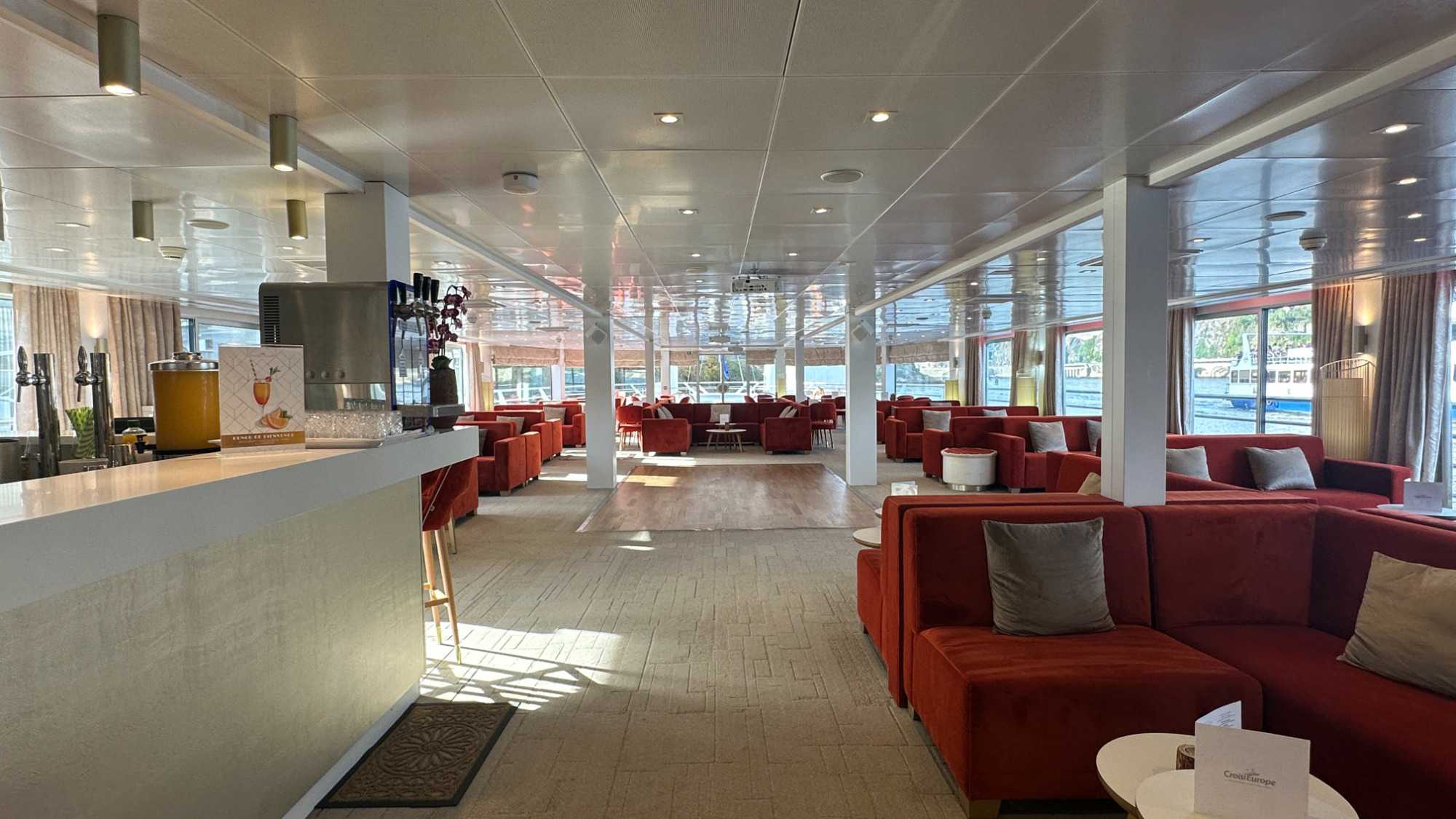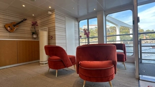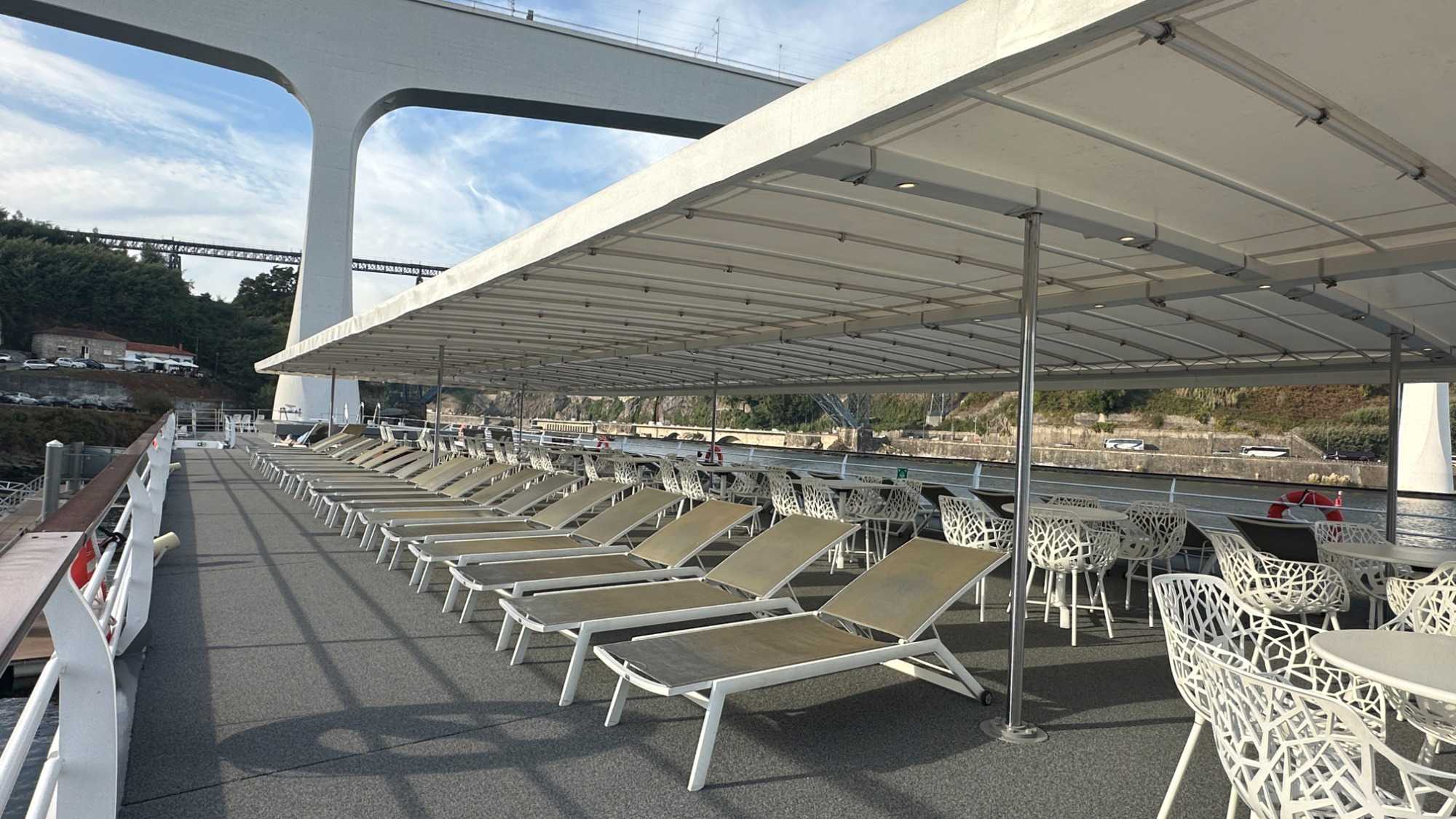 En après-midi, il était temps de passer à la prochaine étape de notre séjour : l’embarquement à bord de l’Amalia Rodrigues, notre navire de croisière fluviale sur le Douro. Ce bateau, mis en service en 2019, rend hommage à la grande chanteuse de fado Amália Rodrigues. Sa décoration intérieure, aux tons terracotta et bois blond, évoque les ambiances chaleureuses du sud portugais. Le navire, classé 5 ancres, offre des cabines où toutes les commodités y sont présentes, des ponts baignés de lumière grâce à de grandes baies vitrées, un restaurant spacieux, un salon-bar convivial, et même une piscine sur le pont soleil. Deux des suites disposent d’une terrasse privée, parfait pour profiter du paysage dès les premières lueurs du jour.
