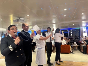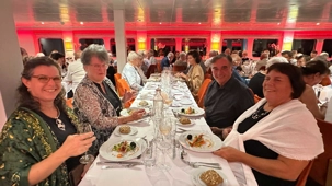 Le chef se surpasse ce soir! Une entrée de crevettes finement arrangées, de la caille et un assortiment de légumes judicieusement sélectionnés, sans oublier la “bombe Alaska” flambée au grand marnier. Un accord met et vin local met le tout en valeur. Décadent !!! Le chef a même eu droit au cadeau d’une bouteille de sirop d’érable de notre part, rituel réservé à nos hôtes coup de coeur. Après cette belle journée de découvertes, une autre soirée animée nous attendait!