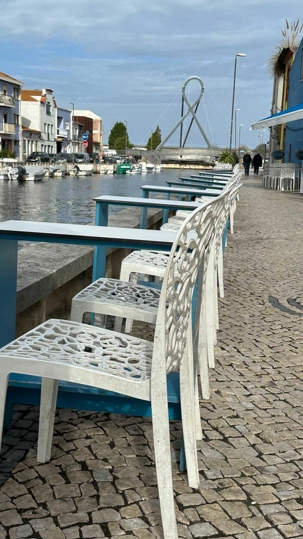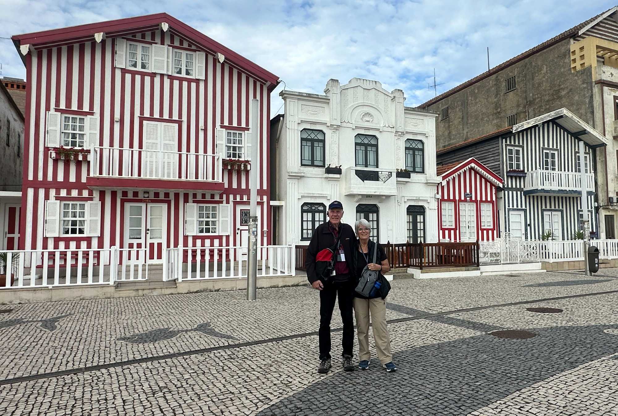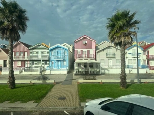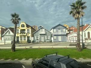 Mais Neilson soucieux de nous faire découvrir son beau pays, propose à la guide de nous emmener à Costa Nova. Wow! Vous connaissez peut-être ce village pour en avoir vu les maisons colorées aux rayures vives, le long de la rivière Aveiro située à son embouchure de l’Atlantique. Ses maisons inspirées des cabines de plage et des maillots rétro des années 1940 ; ses canaux bordés de bâtiments Art nouveau, aux balcons en fer forgé où le coût d’une de ses maisonnettes est exhorbitant, voire “pas achetable”! barques traditionnelles appelées moliceiros, autrefois utilisées pour transporter les herbes marines (moliço) servant d’engrais naturel. La ville est aussi connue pour ses salines, toujours en activité, avec leurs petites maisons aux teintes orangées où l’on stocke le sel. Une immense promenade en bord de mer bordée de palmiers où il fait bon marcher en fait un endroit de villégiature très prisé.