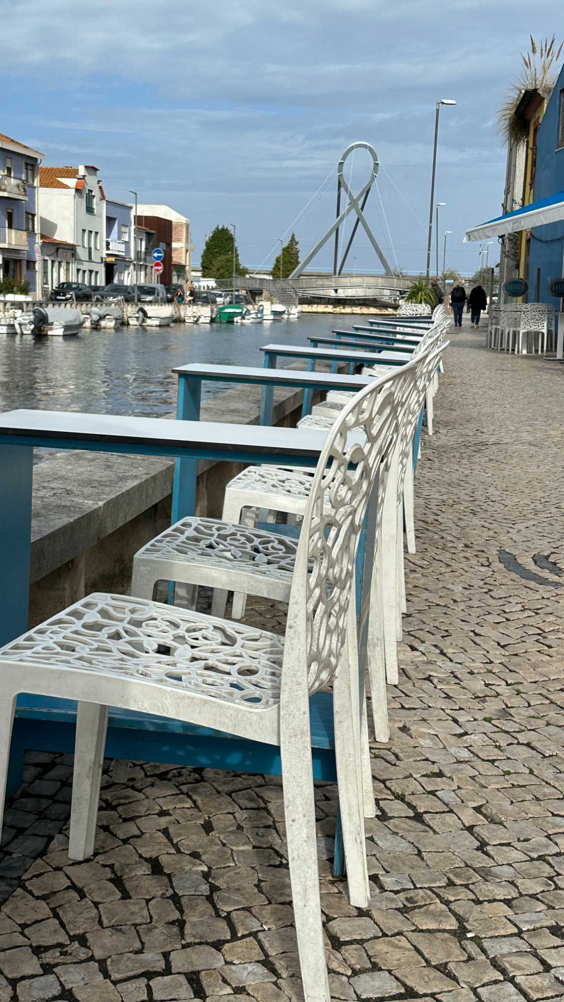 Les maisons qui bordent le canal datent majoritairement du tournant du XXᵉ siècle et reflètent l’influence de l’Art nouveau et de l’Art déco, styles introduits à Aveiro par la bourgeoisie commerçante de l’époque. On y observe des façades couvertes d’azulejos colorés, des ferronneries ouvragées aux motifs floraux, ainsi que des vitraux aux teintes douces. Certaines bâtisses, comme la Casa Major Pessoa, illustrent parfaitement cette esthétique : lignes courbes, symétries décoratives et références naturalistes.