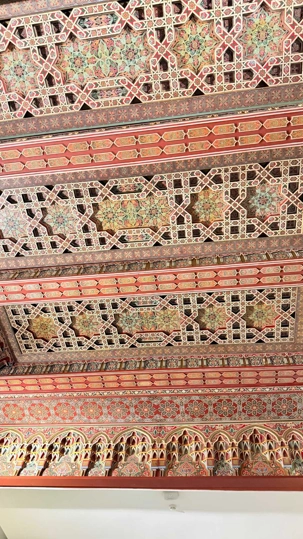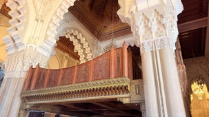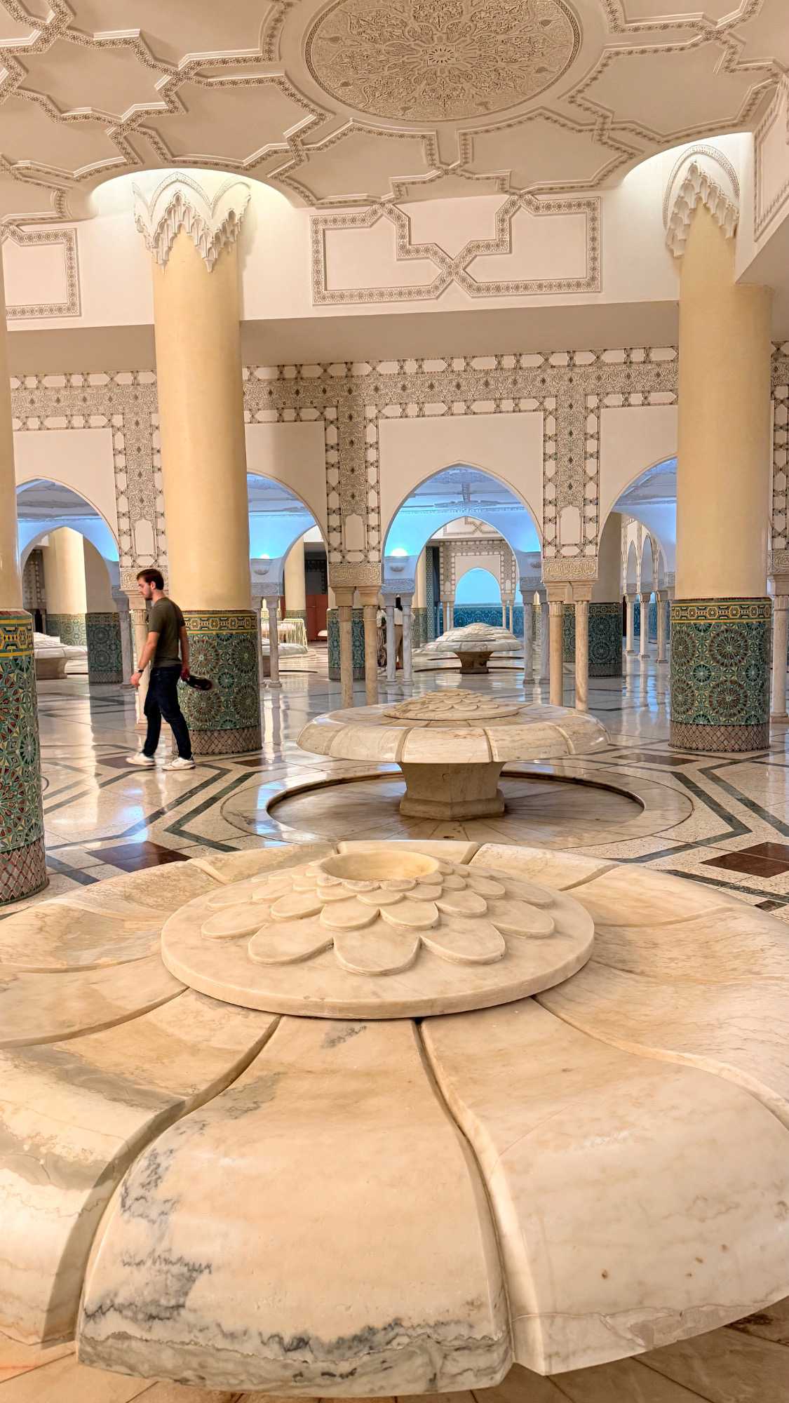 À l’intérieur, marbre, bois de cèdre et mosaïques se marient dans une harmonie divine.