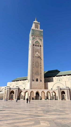 Construite sur une plate-forme partiellement posée sur la mer, elle symbolise le lien entre la foi et l’infini. Son minaret, haut de 210 mètres, est le plus élevé du monde.