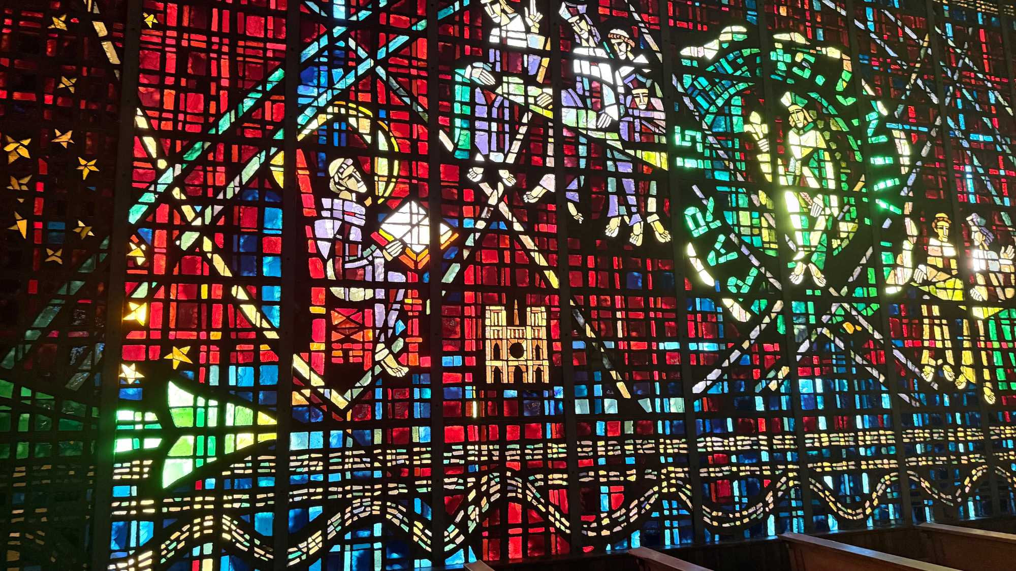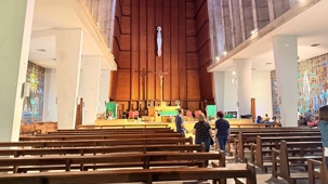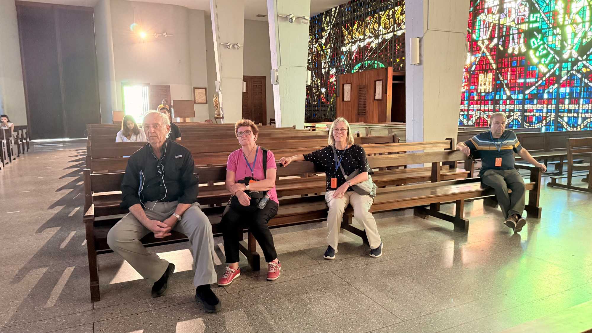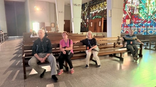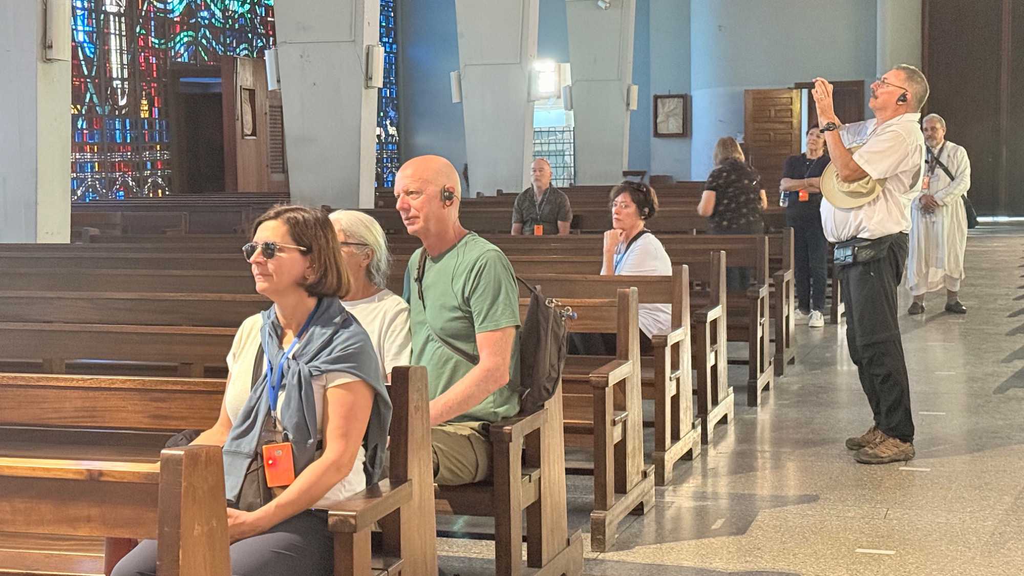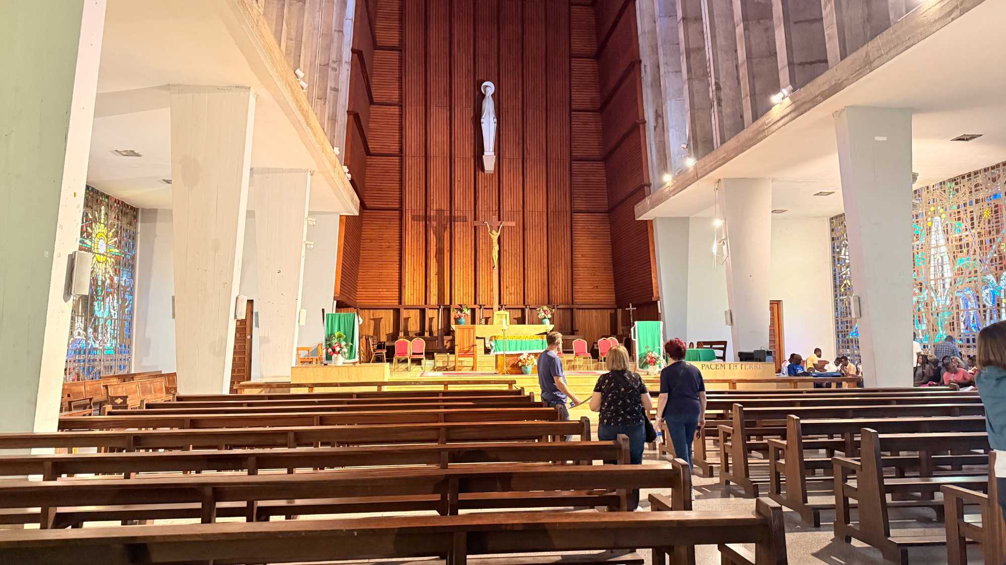 Nous faisons un arrêt à la cathédrale Notre-Dame-de-Lourdes, un édifice impressionnant d’architecture moderne, célèbre pour ses vitraux multicolores qui transforment la lumière du soleil en une symphonie de couleurs.