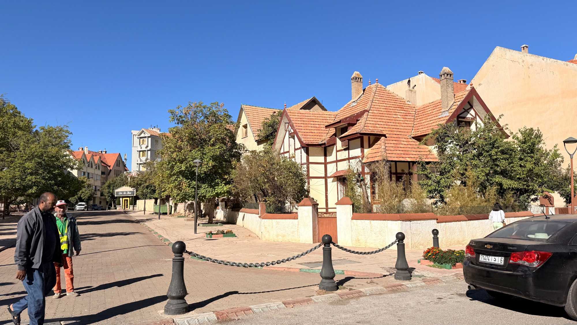 Ifrane, surnommée avec justesse la "Suisse du Maroc". Cette appellation n’est pas usurpée : à notre arrivée, nous sommes tous frappés par le contraste saisissant avec les villes impériales. Toits pentus couverts de tuiles rouges, jardins fleuris impeccablement entretenus, rues propres et calmes : on se croirait transportés au cœur d’une station alpine européenne.
