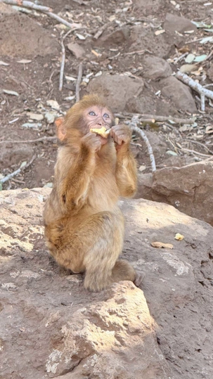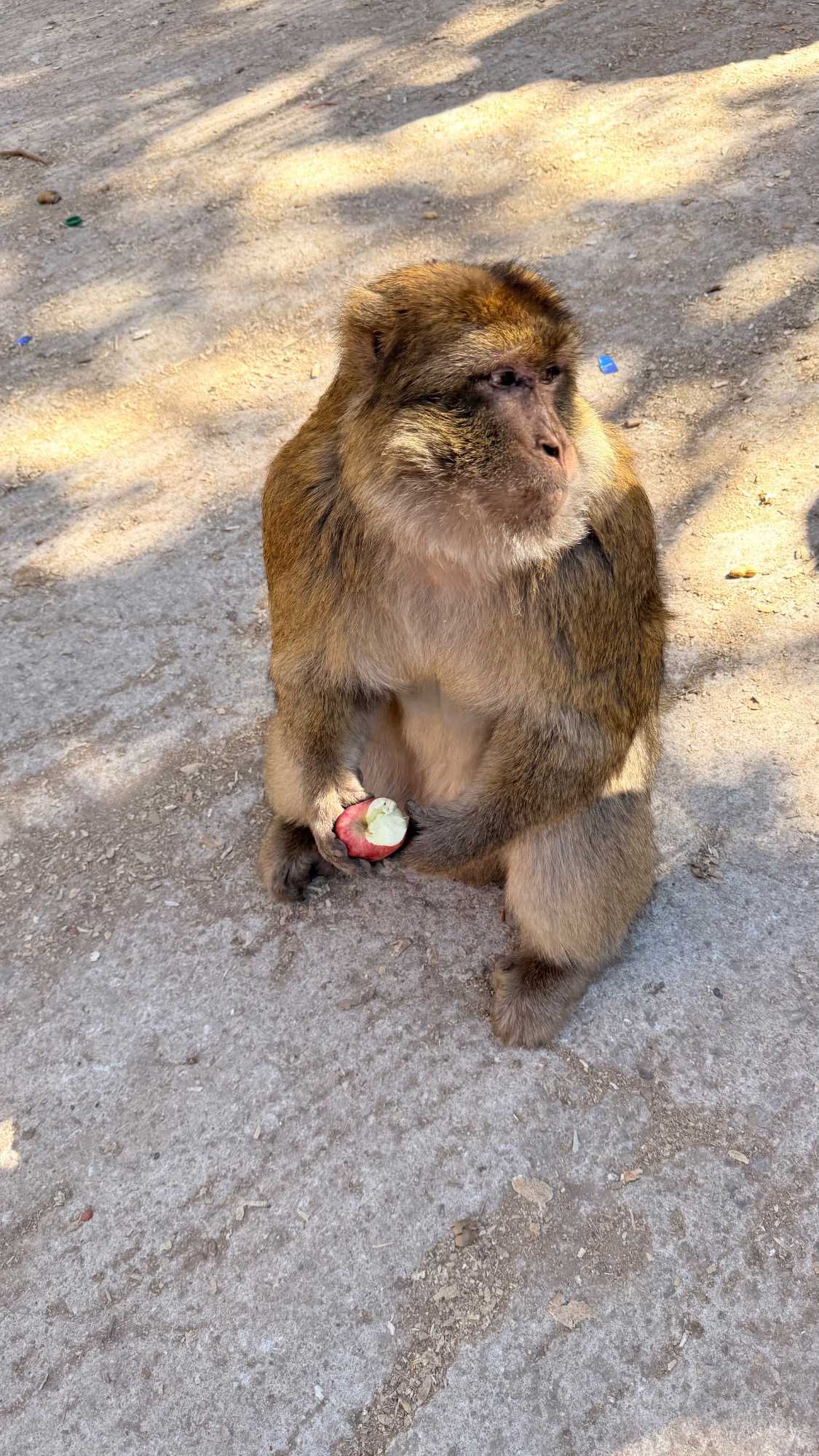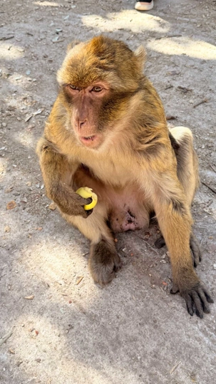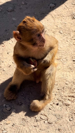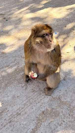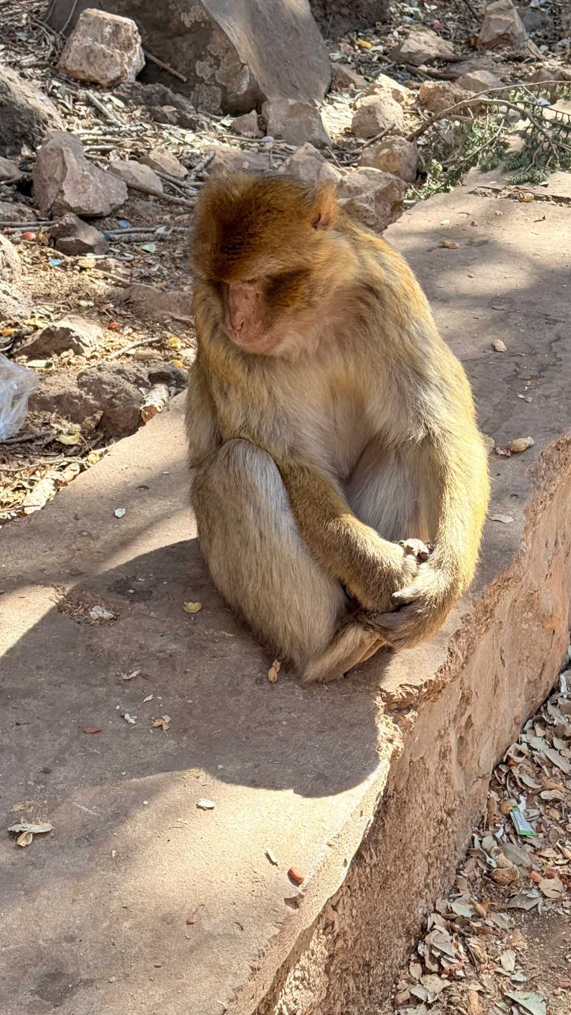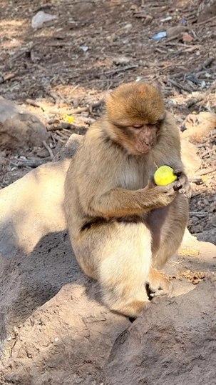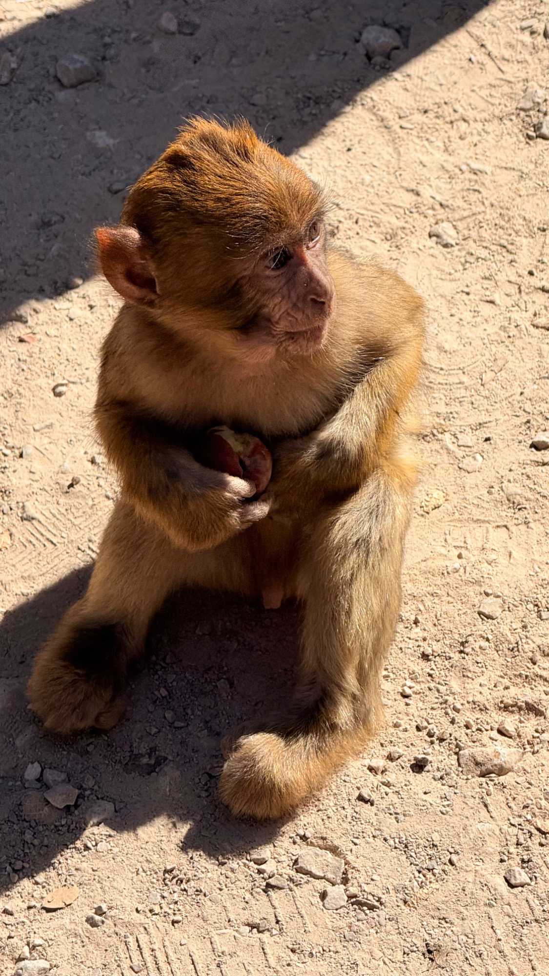 Nous faisons halte près du Cèdre Gouraud, l’un des arbres les plus célèbres du Maroc. Nommé en l’honneur du général français Henri Gouraud, gouverneur militaire du Maroc dans les années 1920, ce cèdre géant aujourd’hui mort mais toujours debout, veille comme un monument naturel sur la forêt qui l’entoure. Autour de lui, les singes se déplacent en liberté, s’approchent parfois avec curiosité, pour le plus grand plaisir des voyageurs.J’achete des pommes et de peanut et nous avons un plaisir fou a les nourrirent et a les photographier