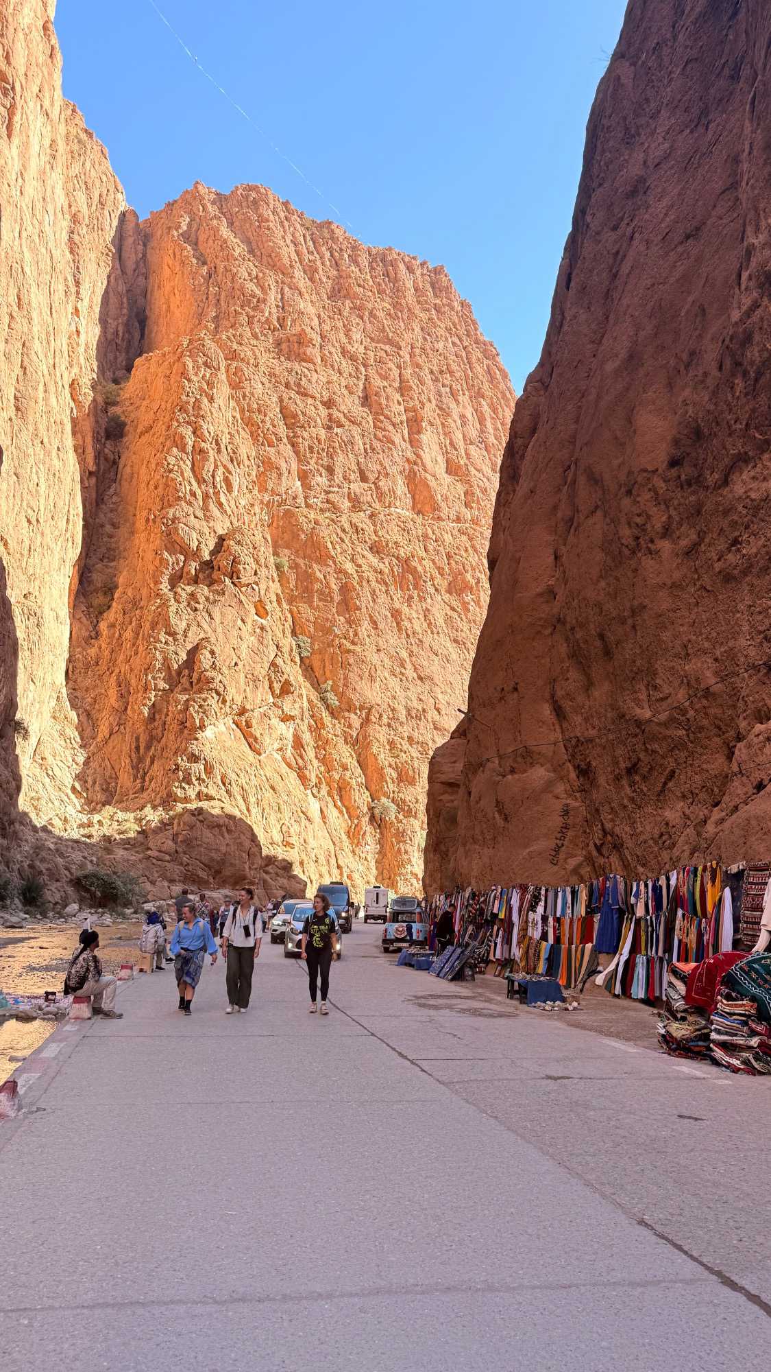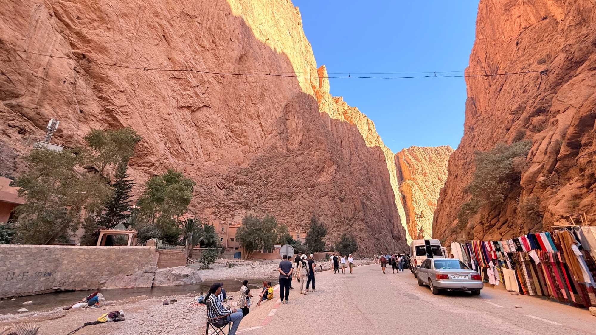 Après un bon dîner dans un restaurant local, nous poursuivons notre route vers l’un des joyaux naturels du Maroc : les gorges du Todra.