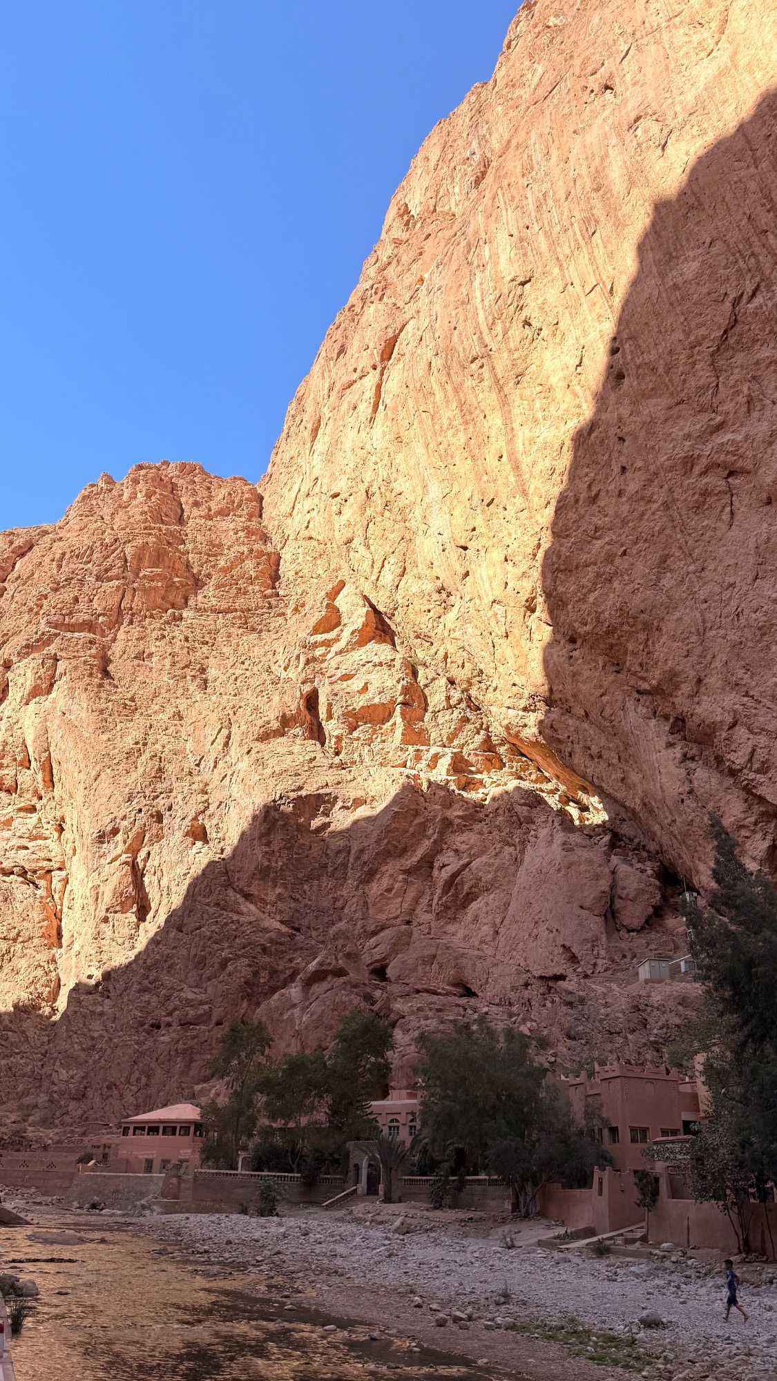 Mais au-delà de sa beauté naturelle, le Todra est aussi un lieu de vie, utilisé depuis des siècles par les tribus nomades comme lieu de pâturage, de culture et de passage. Les palmiers, les petits jardins en terrasse, les sentiers en terre témoignent de cette harmonie ancestrale entre l’homme et la nature.
