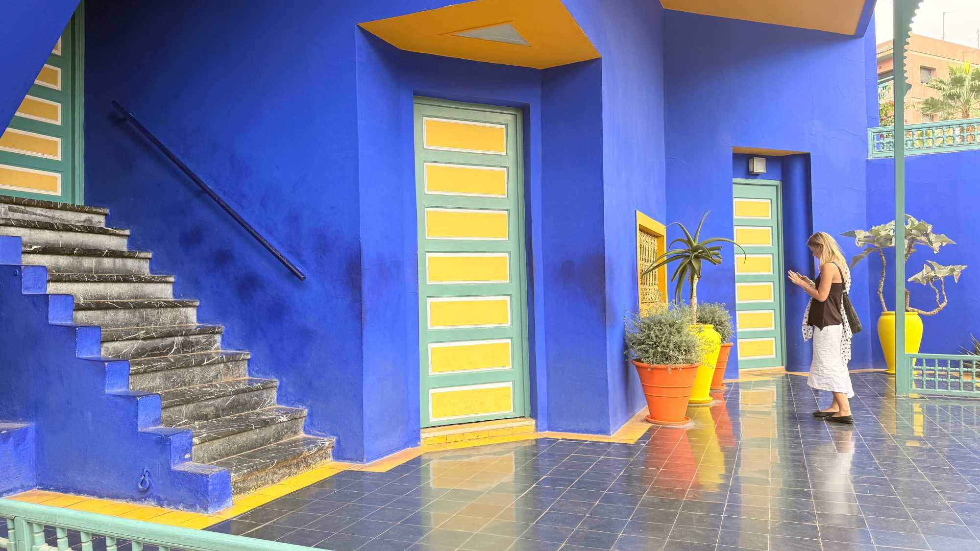 Pendant plus de quarante ans, il façonne ce havre végétal avec une rare sensibilité : plantes exotiques, cactus aux formes insolites, fontaines carrelées, et surtout cette couleur bleu cobalt intense, devenue mythique, qu’il déposera lui-même sous le nom de bleu Majorelle.