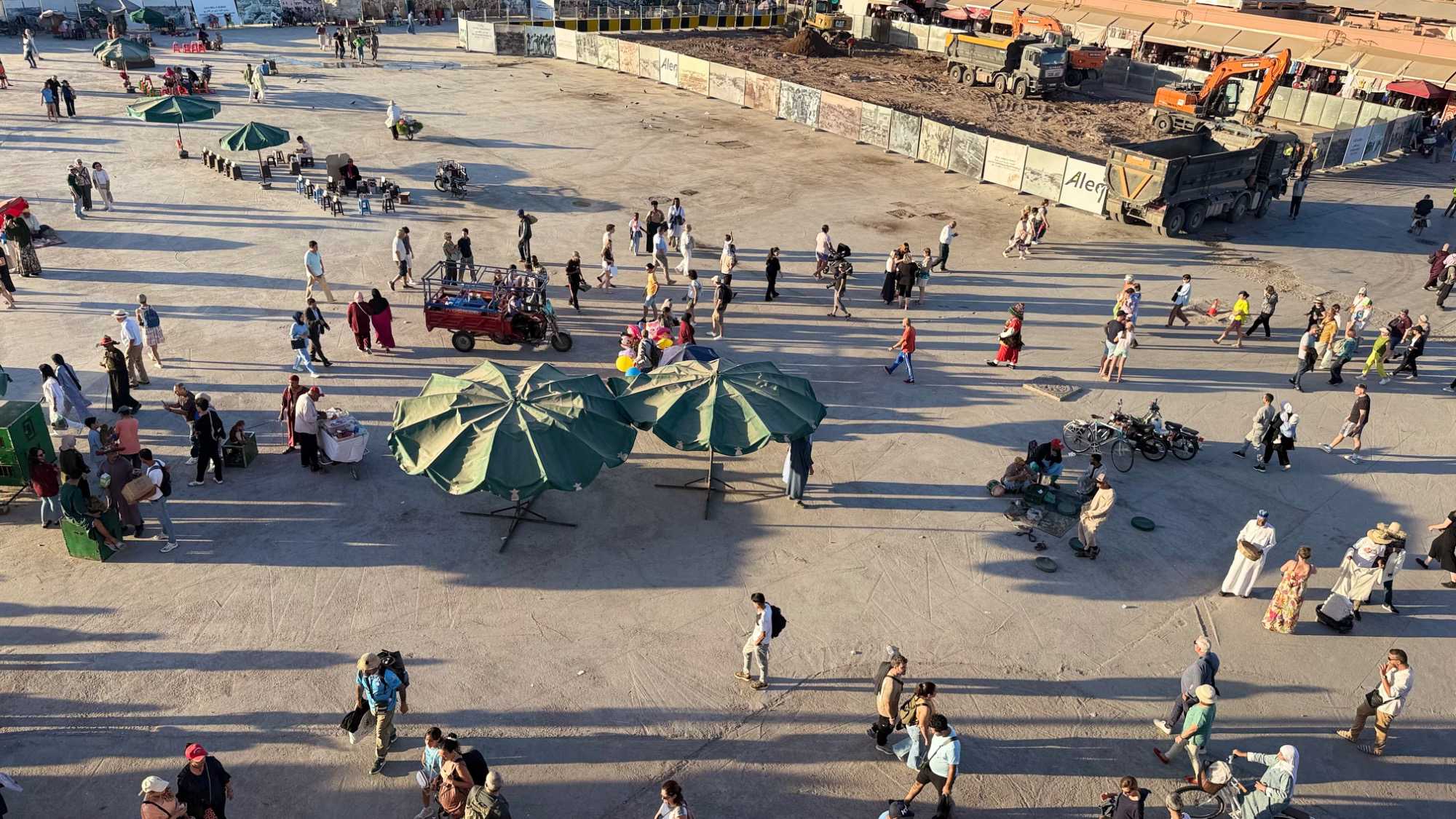 Cette fois, l’effervescence est moindre, car la place est en rénovation ; nous n’avons pas la même magie que d’habitude, mais nous en percevons tout de même l’essence.