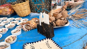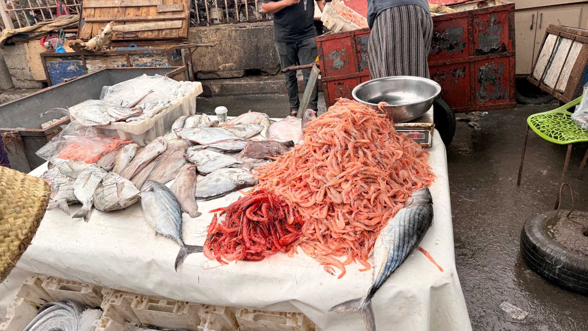 À l’aube, les pêcheurs rentrent chargés de leur précieuse cargaison : sardines, dorades, maquereaux, poulpes, calamars, crevettes royales…