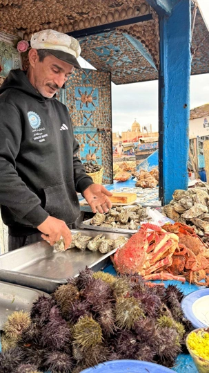 Nous commençons par le port, où nous achetons les fruits de mer pour notre repas, puis nous poursuivons dans la médina pour trouver les épices.