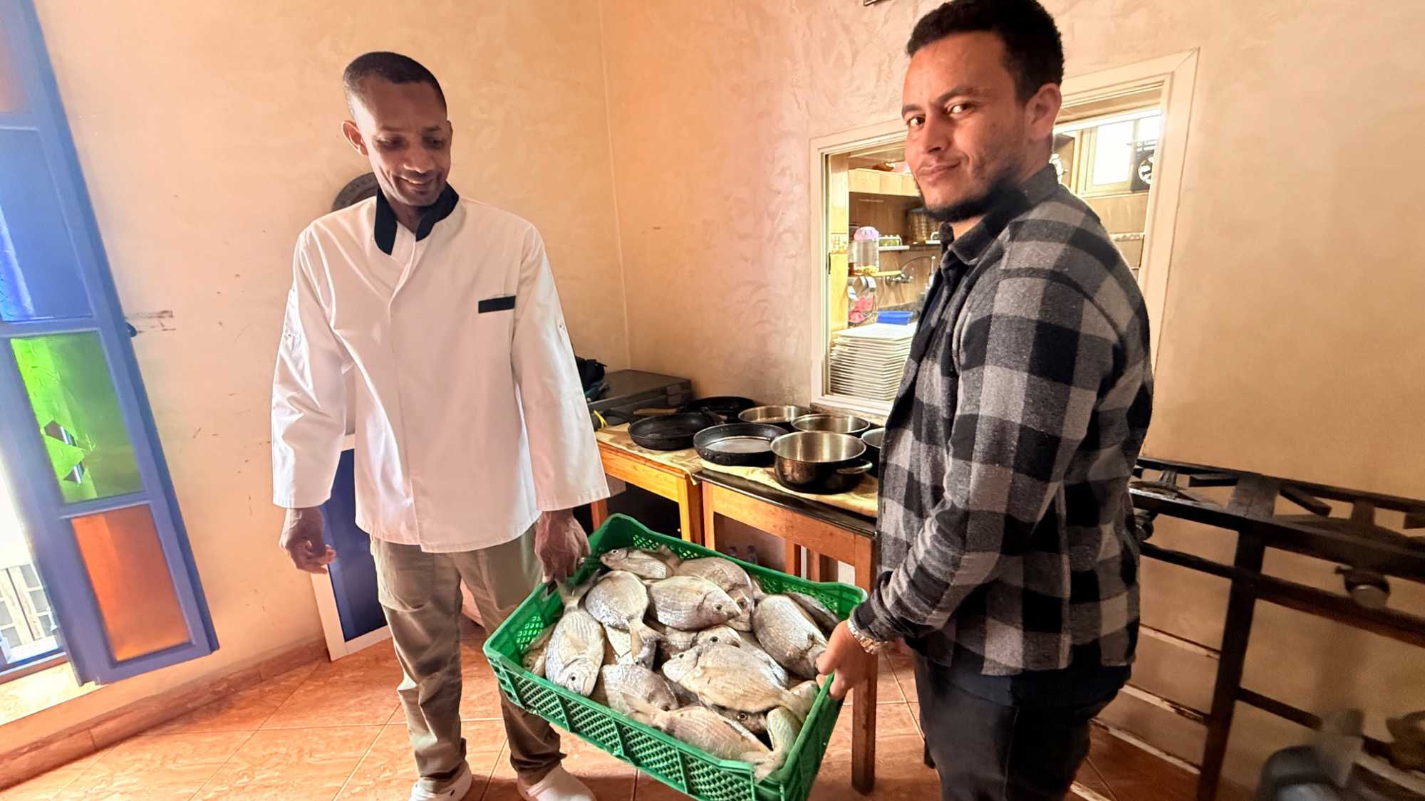 Nous découvrons les secrets du marché local : les épices savamment dosées, les herbes fraîches — coriandre, menthe, persil plat — les légumes colorés, le poisson tout juste débarqué…