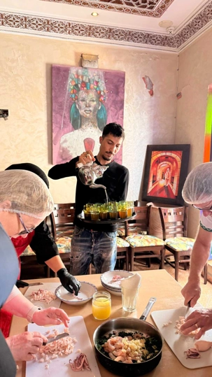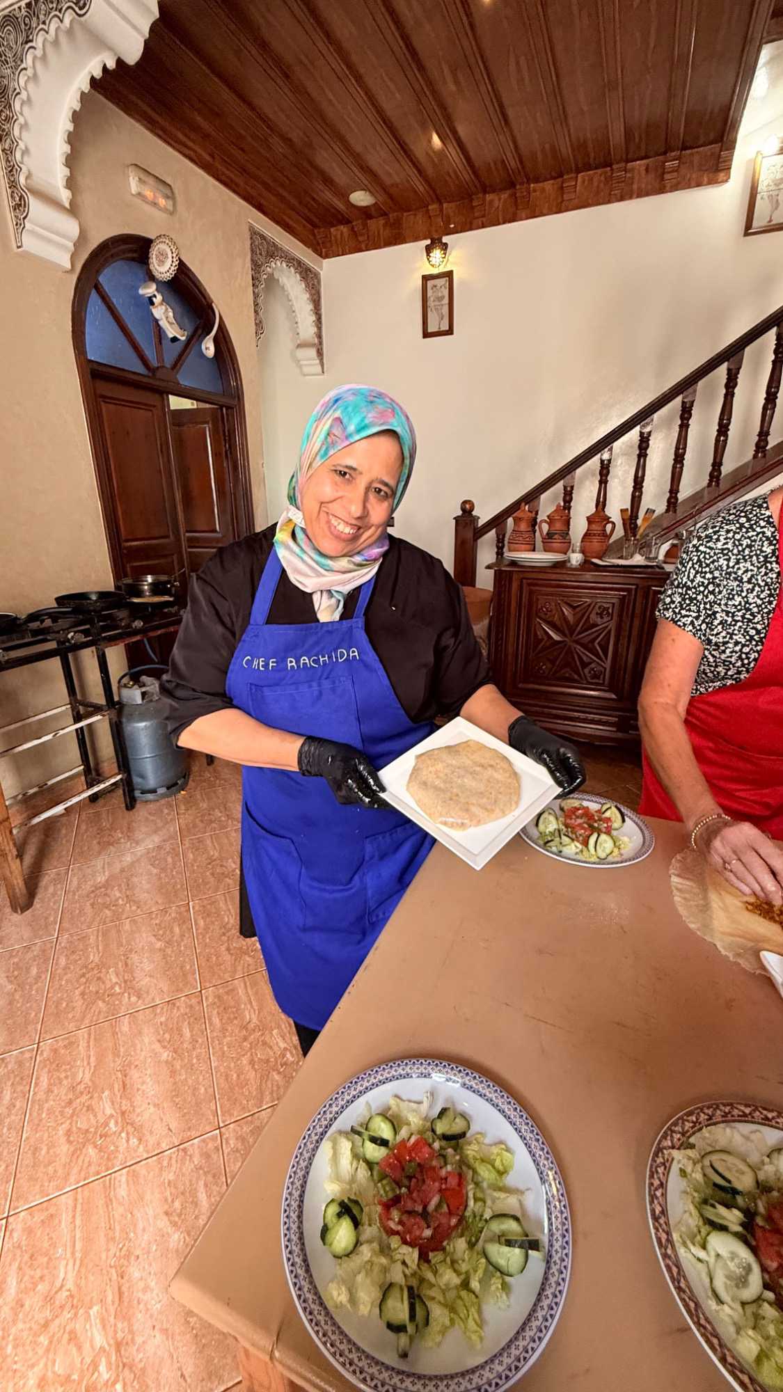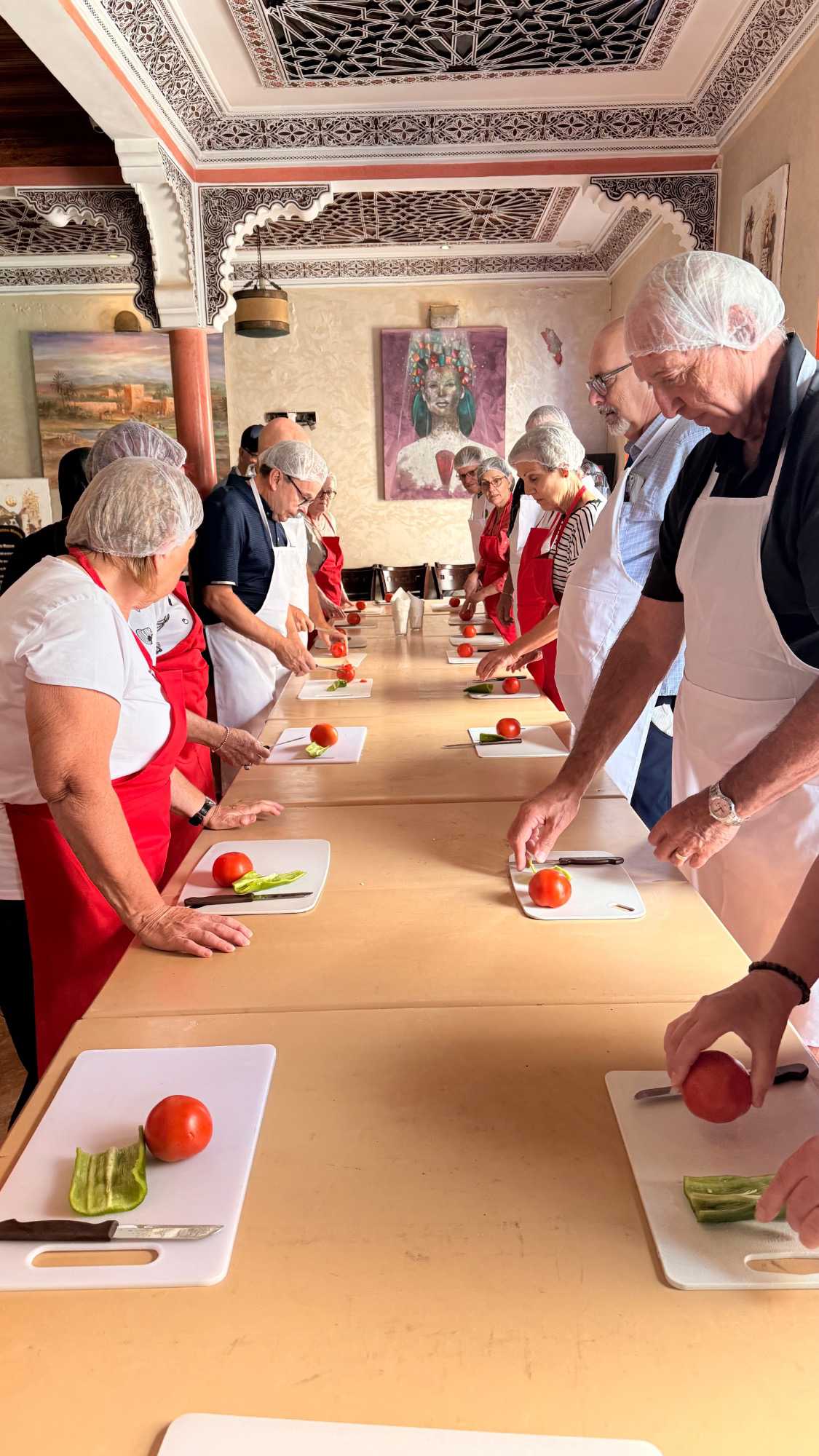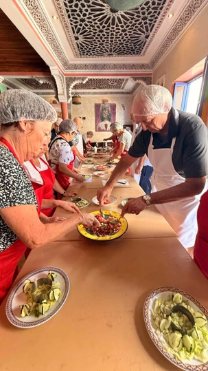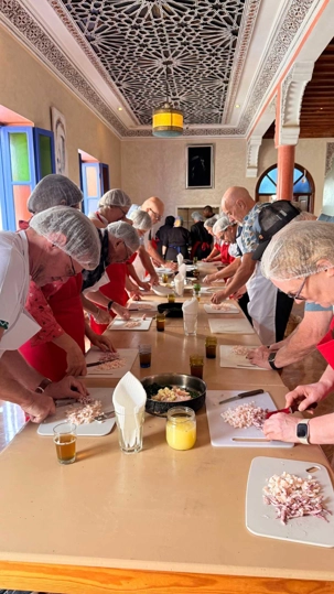Dans une ambiance conviviale et joyeuse, et surtout beaucoup de fou rires ,nous cuisinons un repas typique marocain, en respectant les gestes traditionnels.
