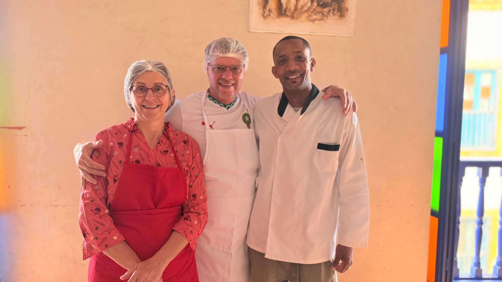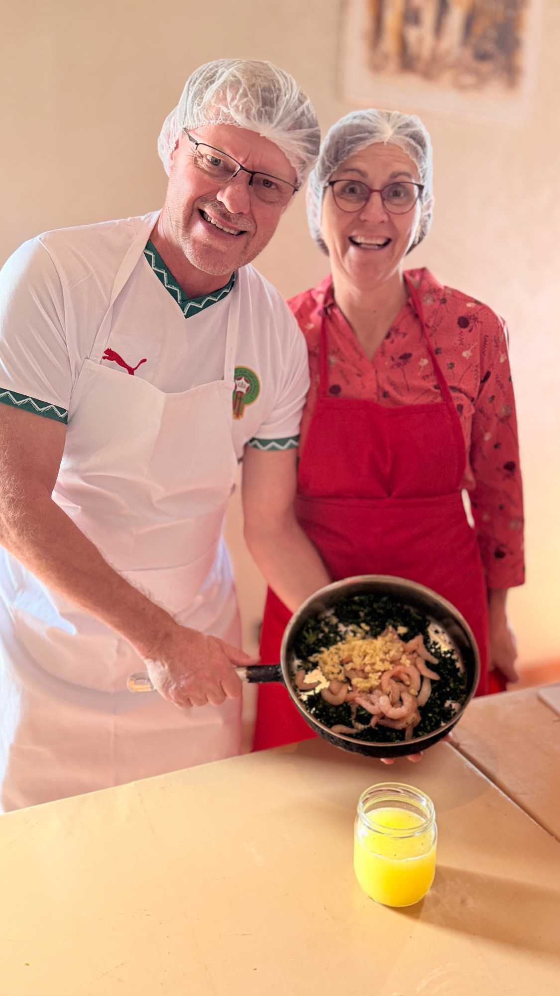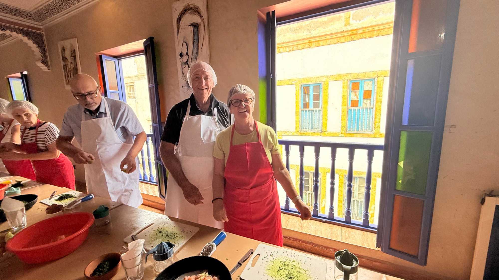 Dans une ambiance conviviale et joyeuse, et surtout beaucoup de fou rires ,nous cuisinons un repas typique marocain, en respectant les gestes traditionnels.