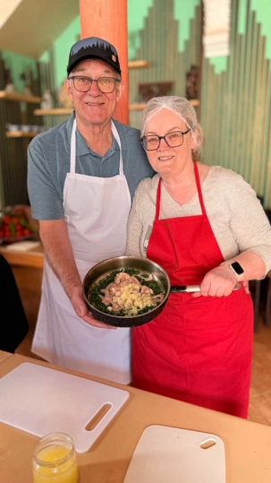 Et bien sûr, vient le moment tant attendu : déguster le fruit de notre travail, sur une terrasse baignée par la lumière océanique.WoW tout est parfait nous avons cuisiné avec amour je devrais dire qu’ils ont cuisiné avec amour car je ne cuisine pas je prends des photos hihi!