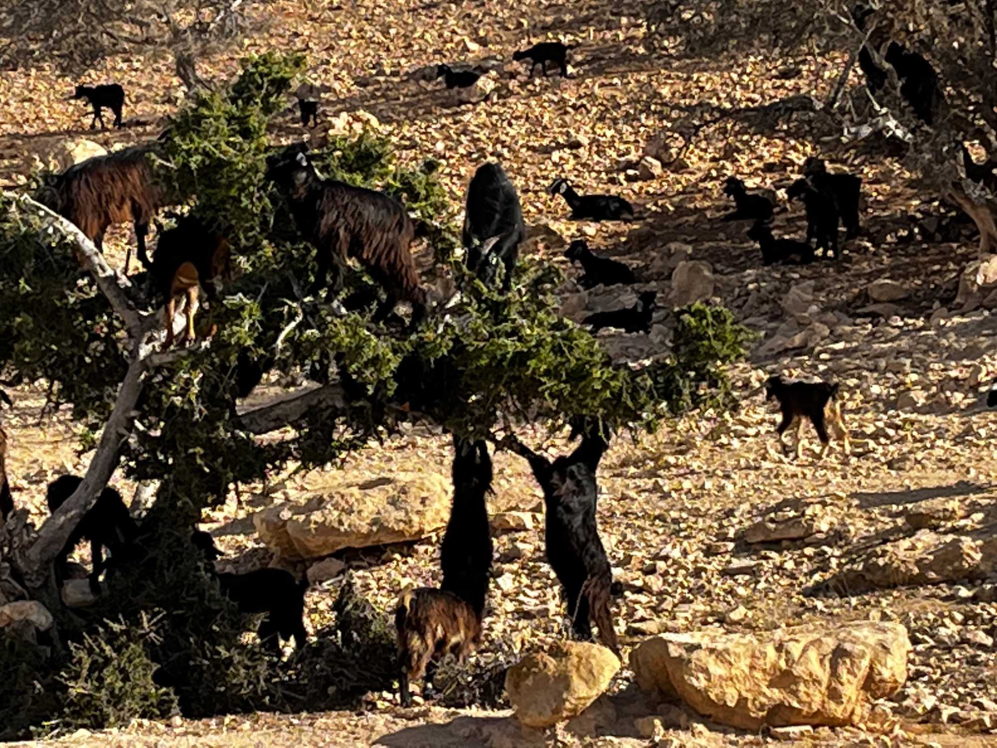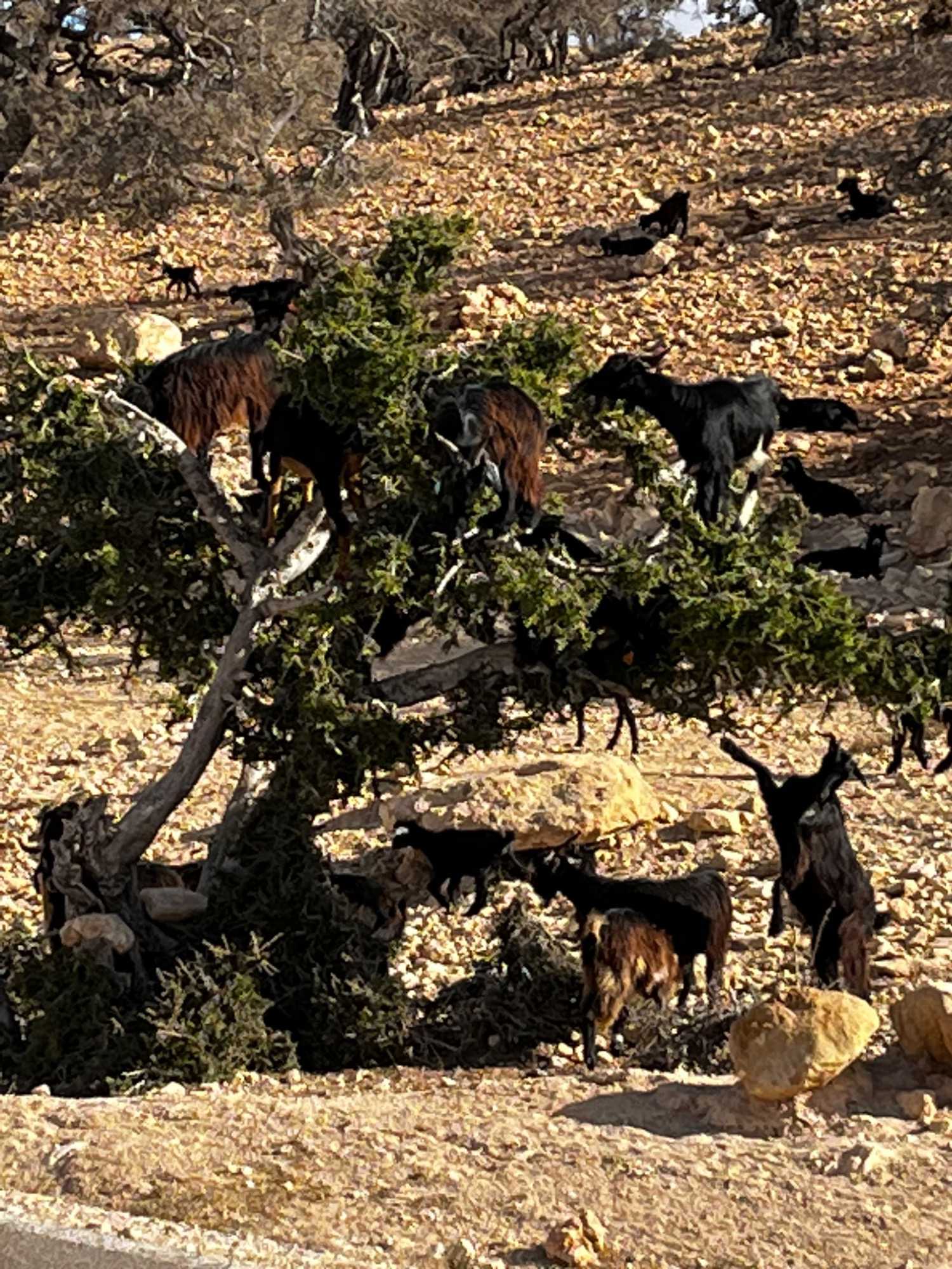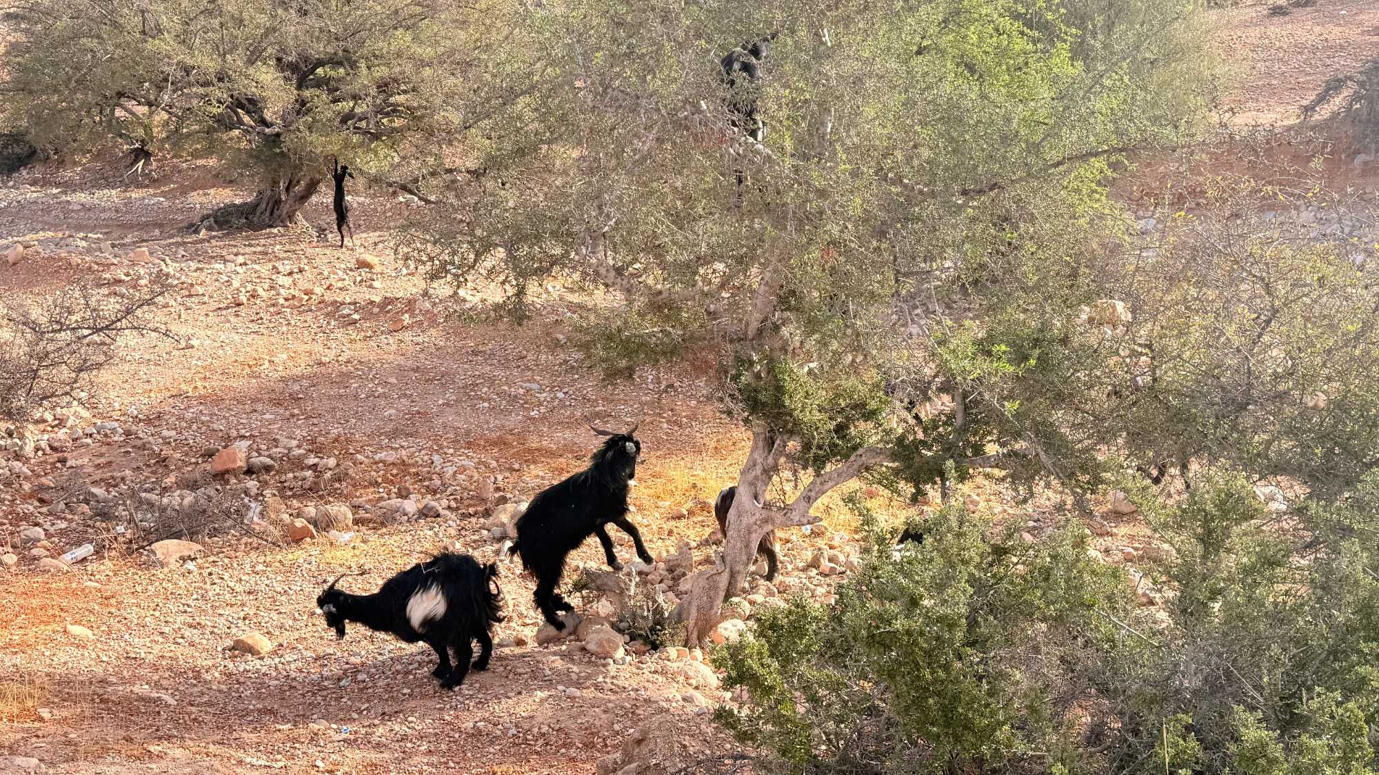 Nous sommes ravis — ce n’est pas tous les jours qu’on voit des chèvres grimper aux arganiers.