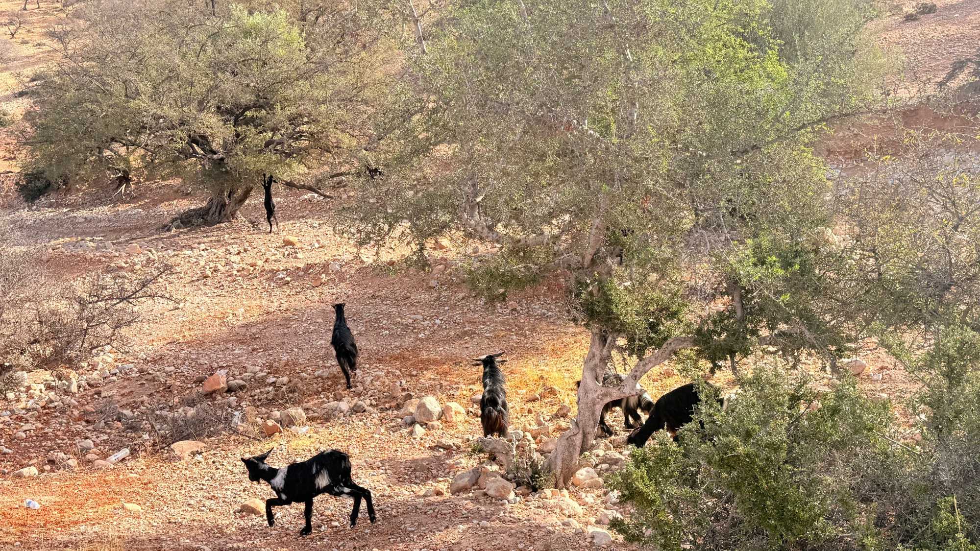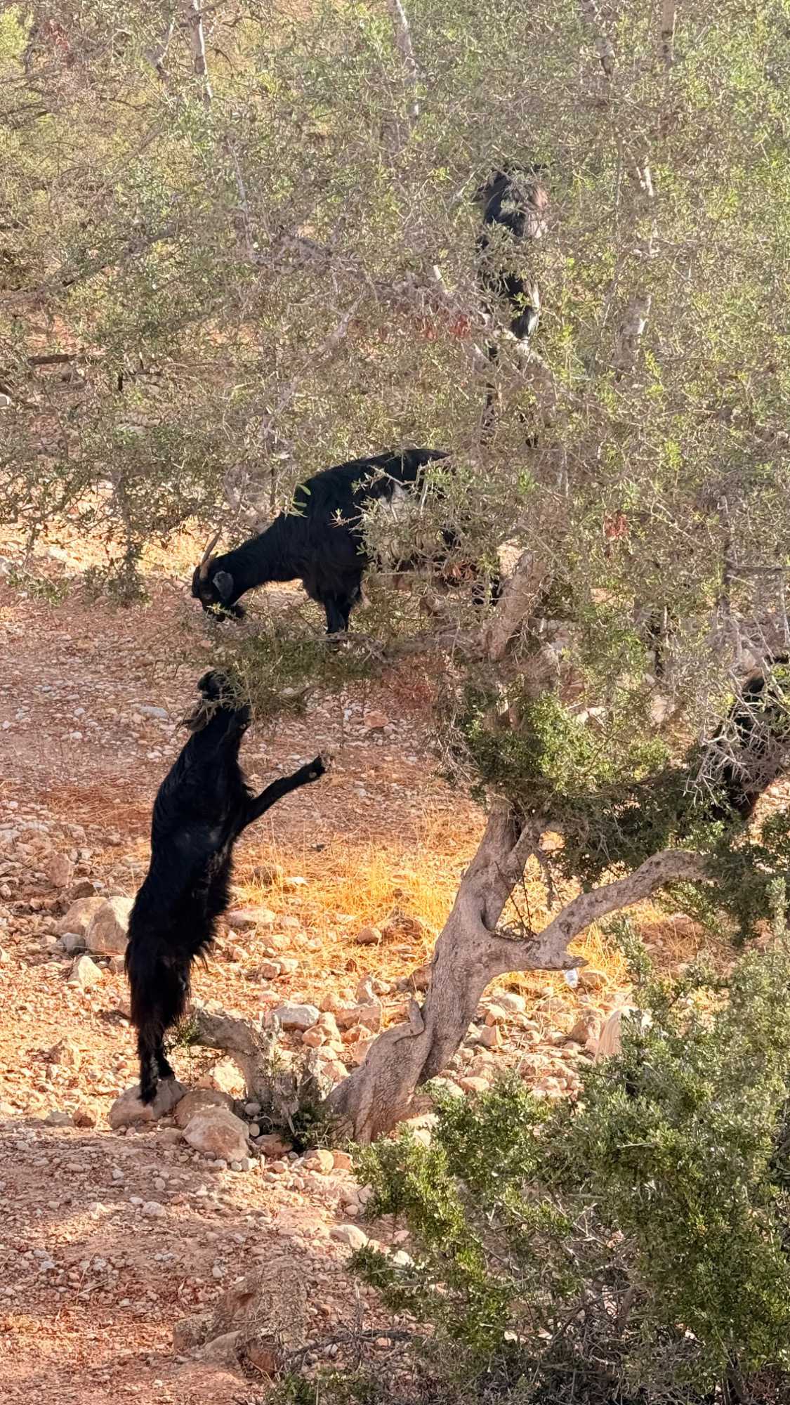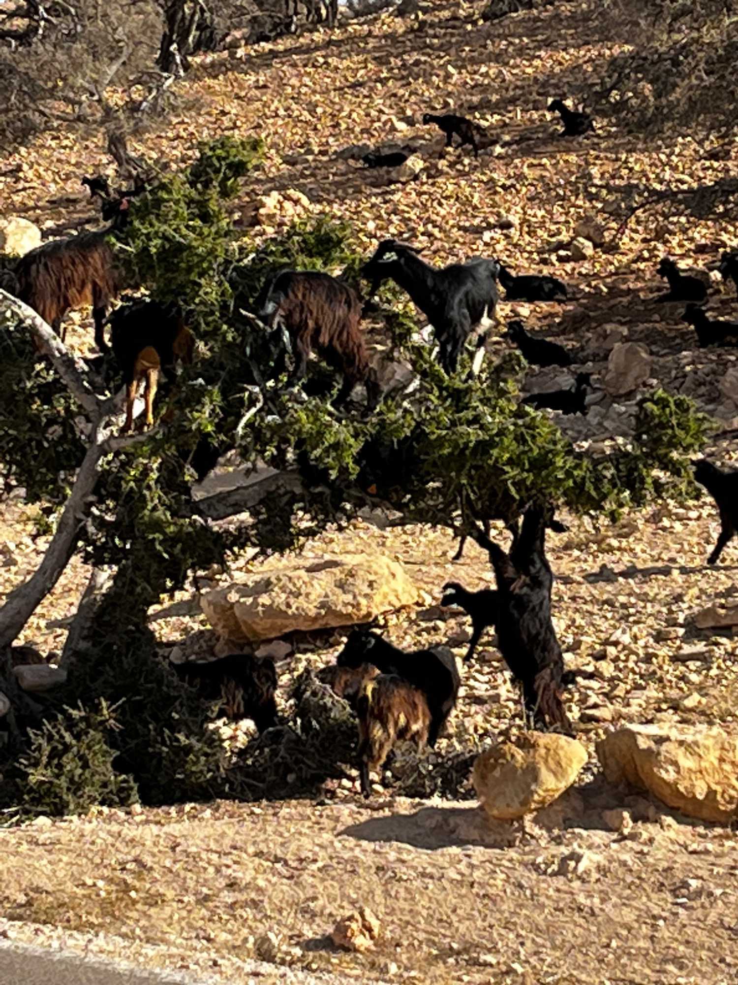 Nous sommes ravis — ce n’est pas tous les jours qu’on voit des chèvres grimper aux arganiers.