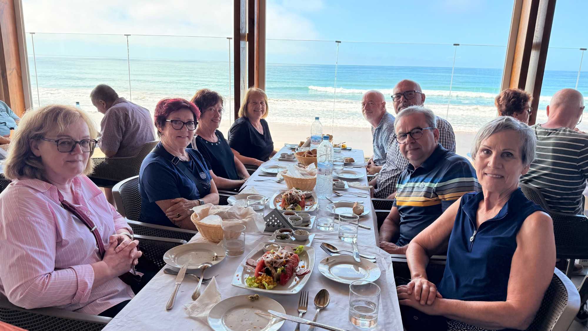 L’odeur des poissons grillés nous accueille, les nappes flottent au vent — nous sommes en bord de mer, prêts à savourer l’instant.